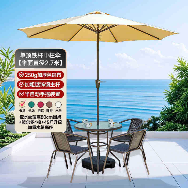 • [1세트] 물무늬유리 80cm 원형테이블 5종세트 + 철제 중기둥우산 2.7m (물탱크받침) 테이블 상판 구멍 있음