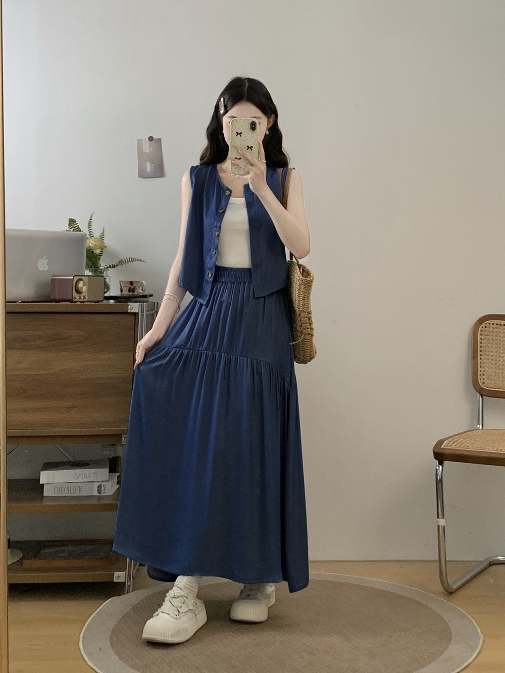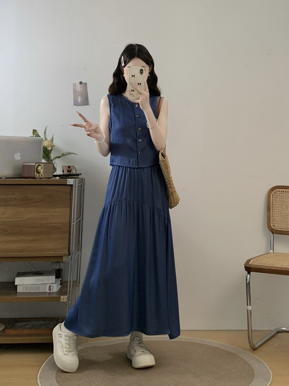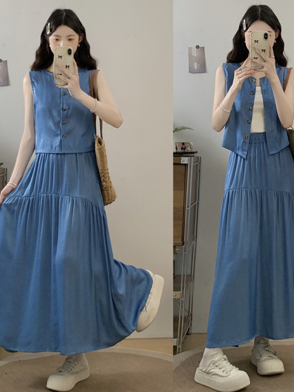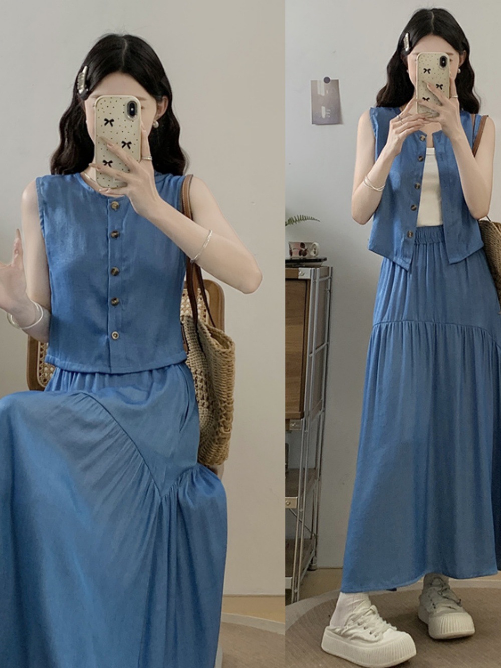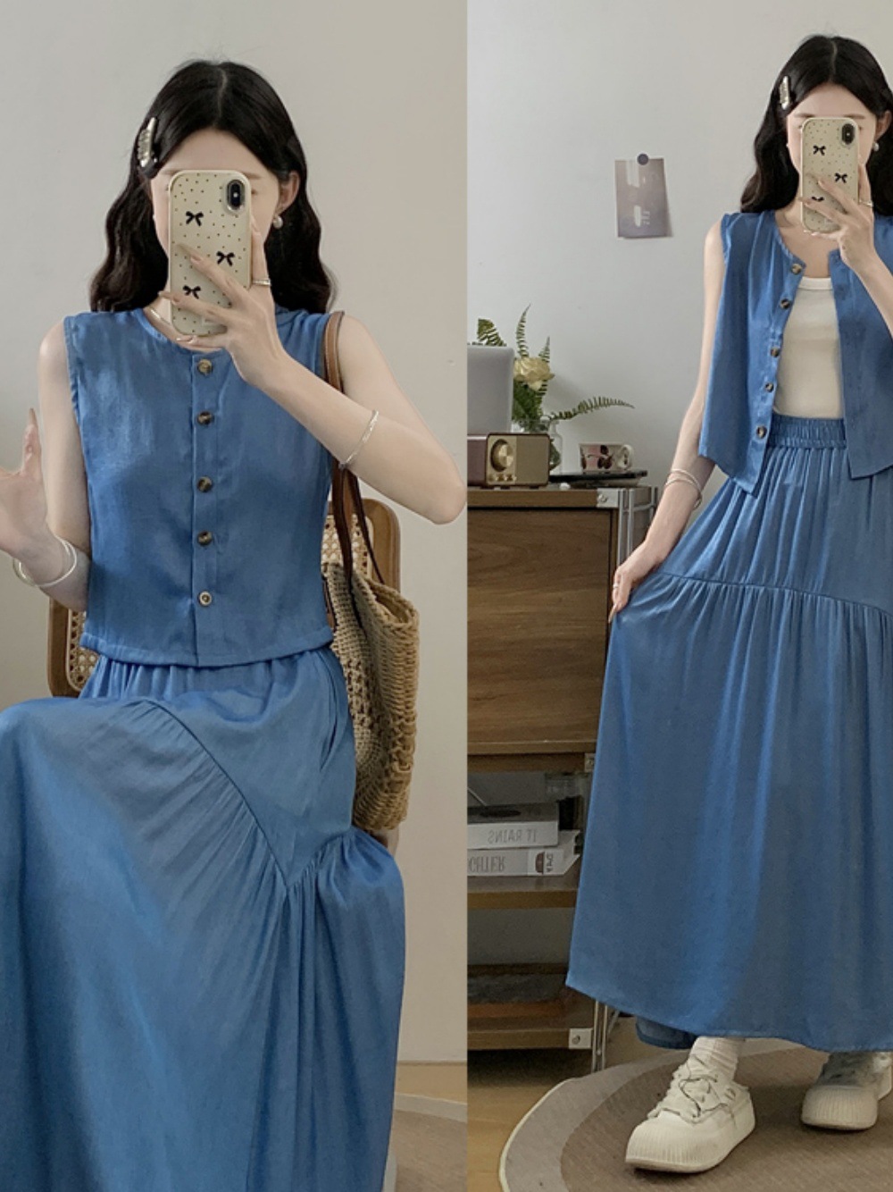 프렌치 햅번 스타일 민소매 조끼탑 여성용 2026 여름 신상 니치 스타일 빅 스커트 패션 세트