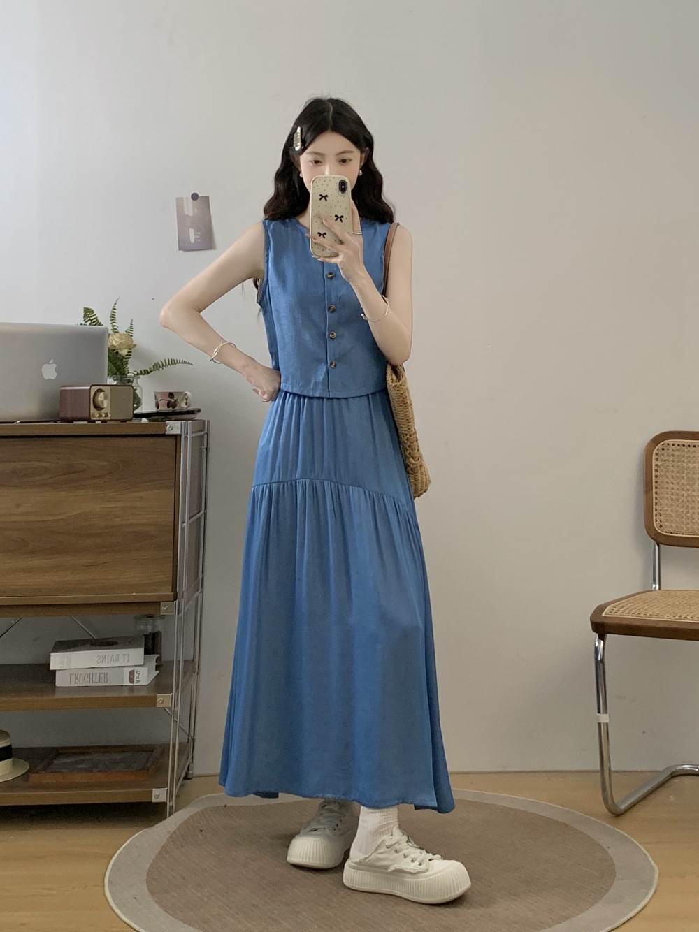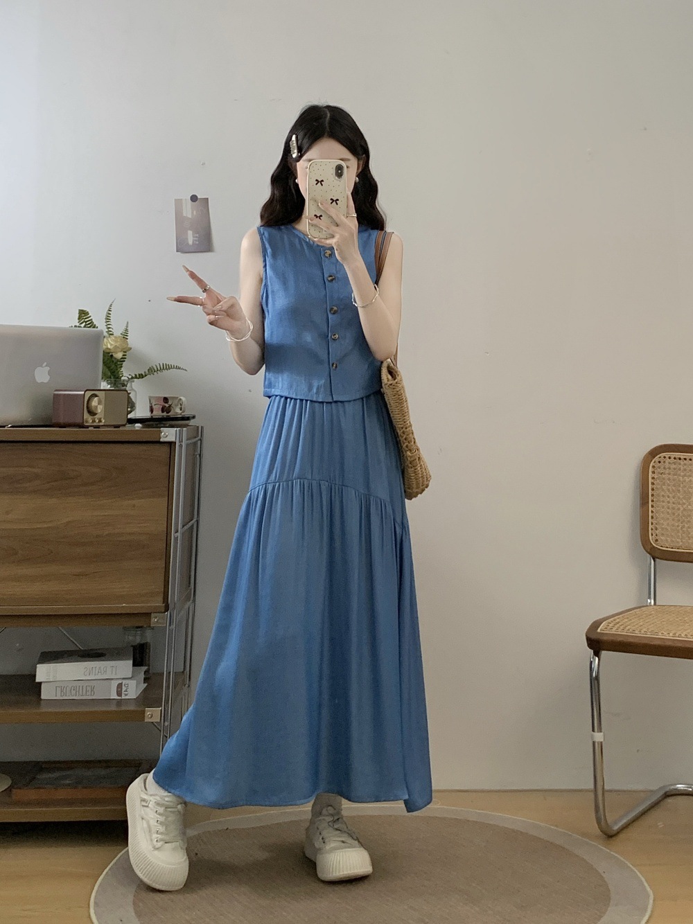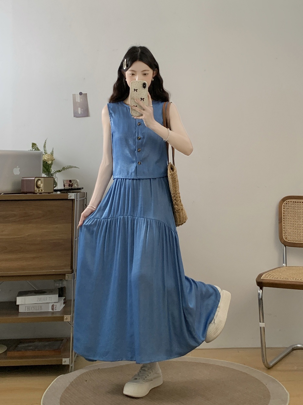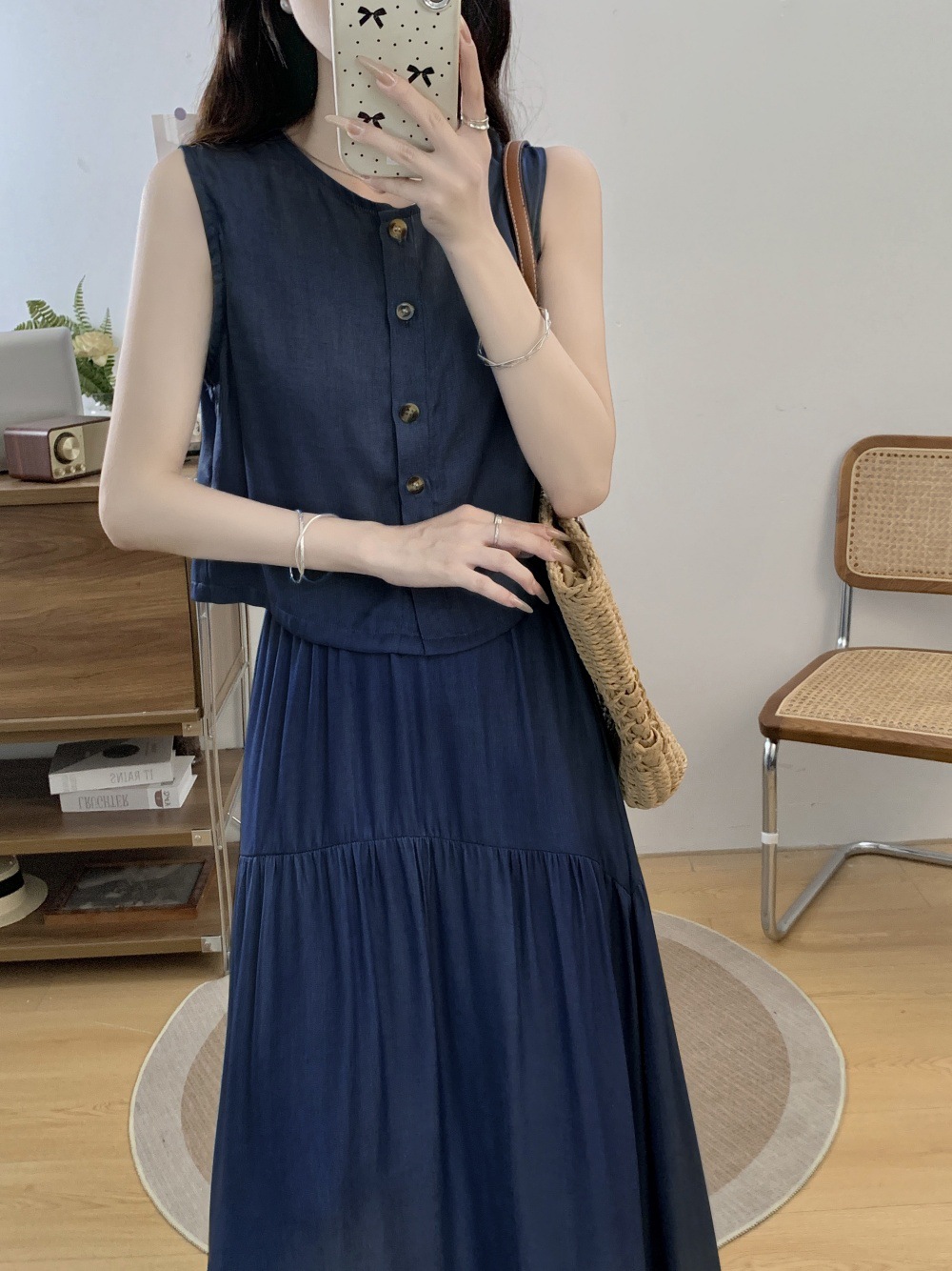 프렌치 햅번 스타일 민소매 조끼탑 여성용 2026 여름 신상 니치 스타일 빅 스커트 패션 세트
