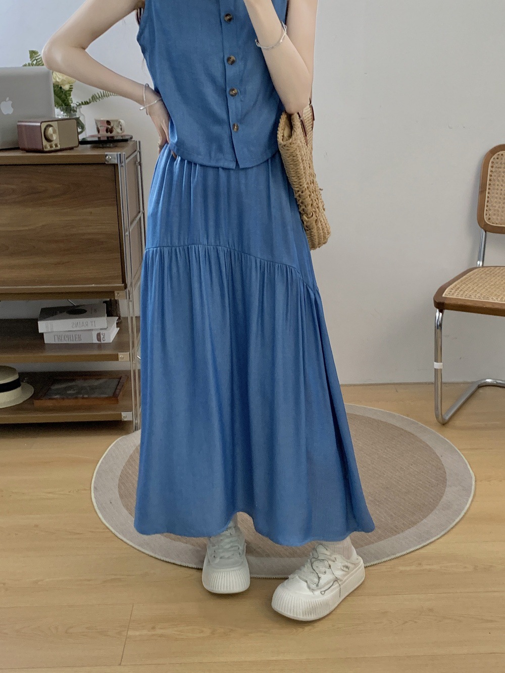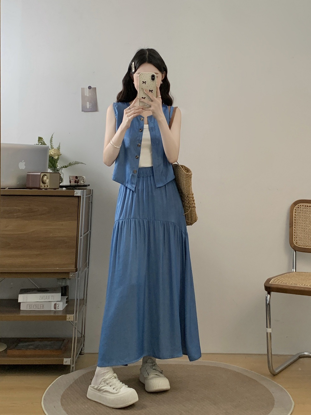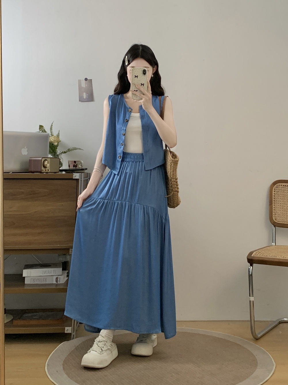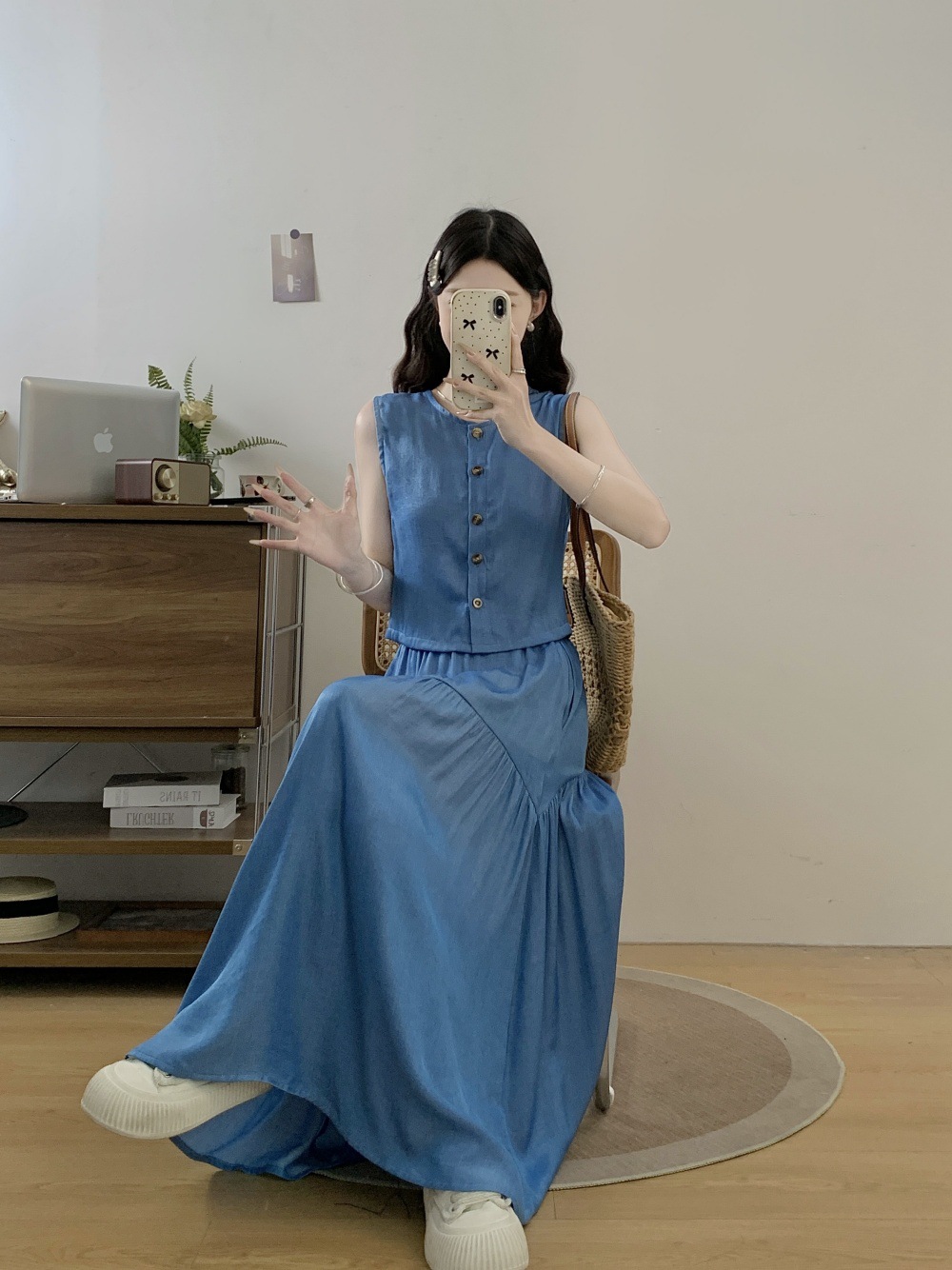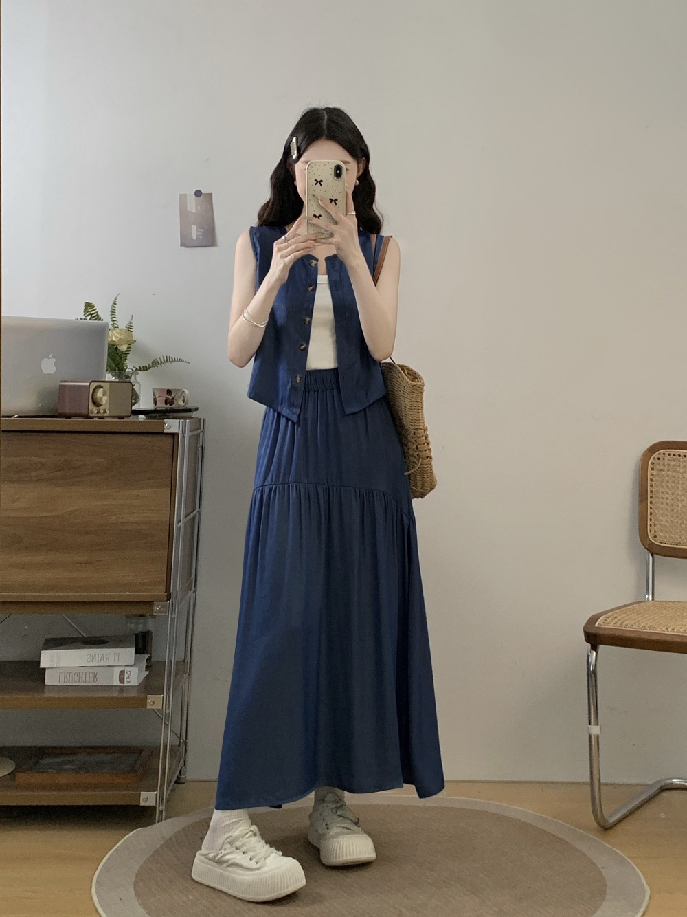 프렌치 햅번 스타일 민소매 조끼탑 여성용 2026 여름 신상 니치 스타일 빅 스커트 패션 세트