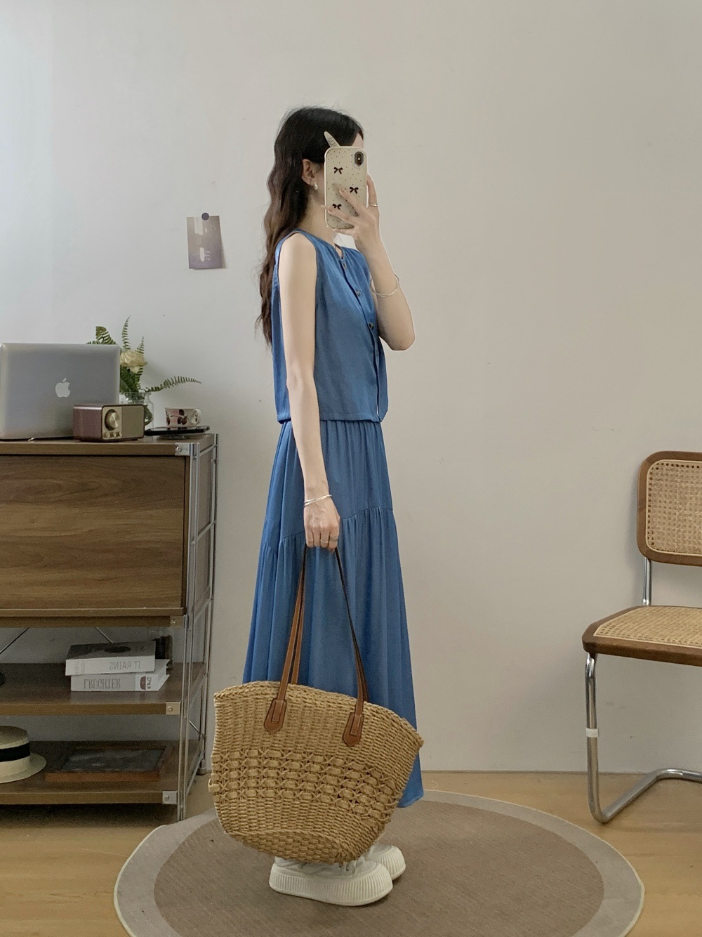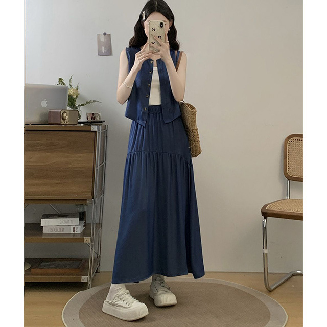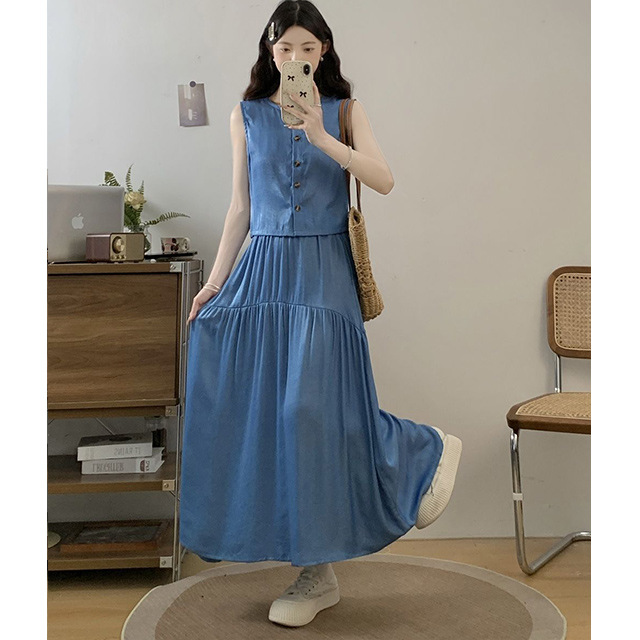 프렌치 햅번 스타일 민소매 조끼탑 여성용 2026 여름 신상 니치 스타일 빅 스커트 패션 세트스토어 가기