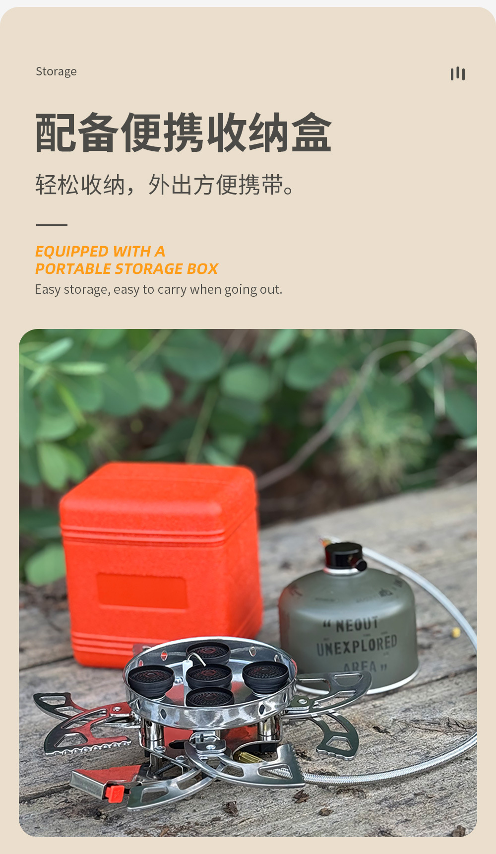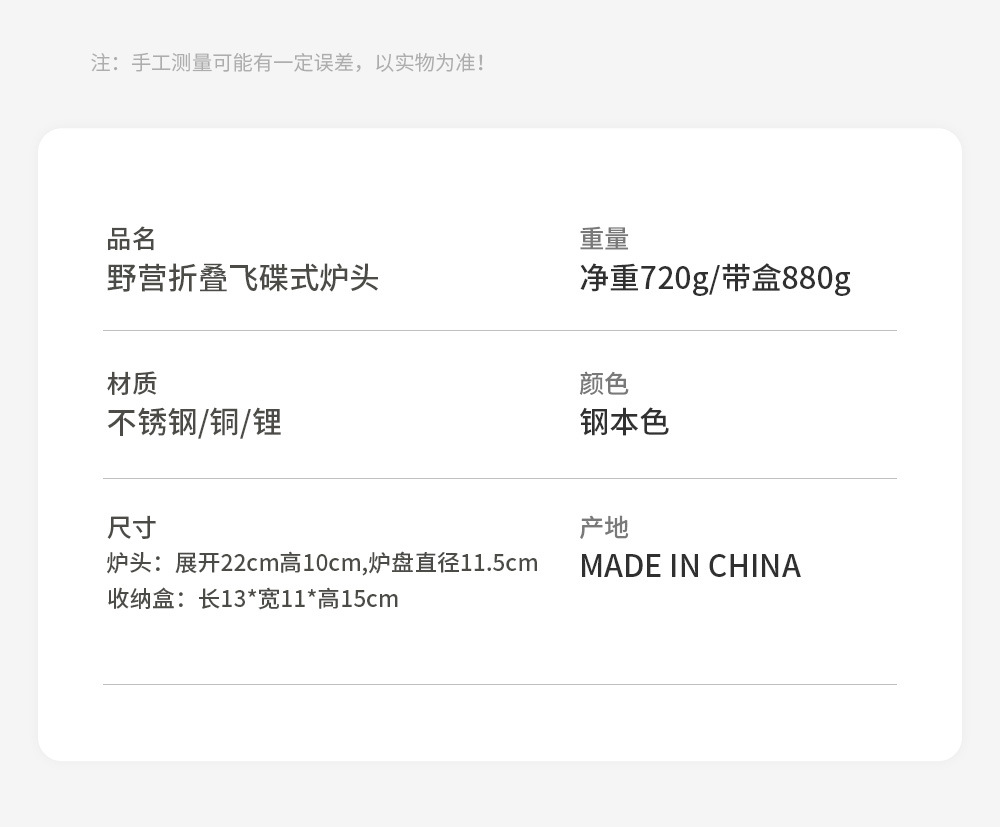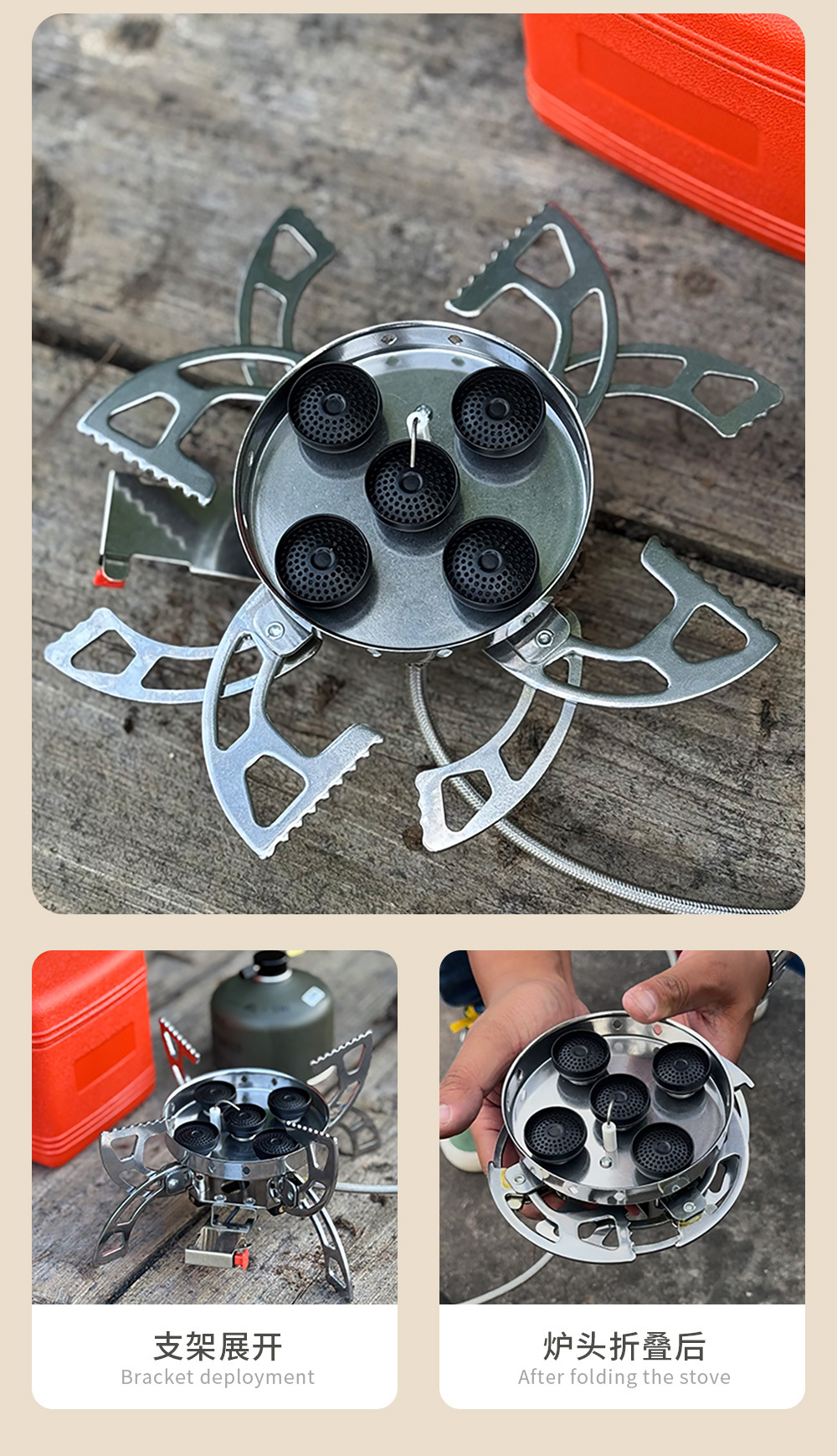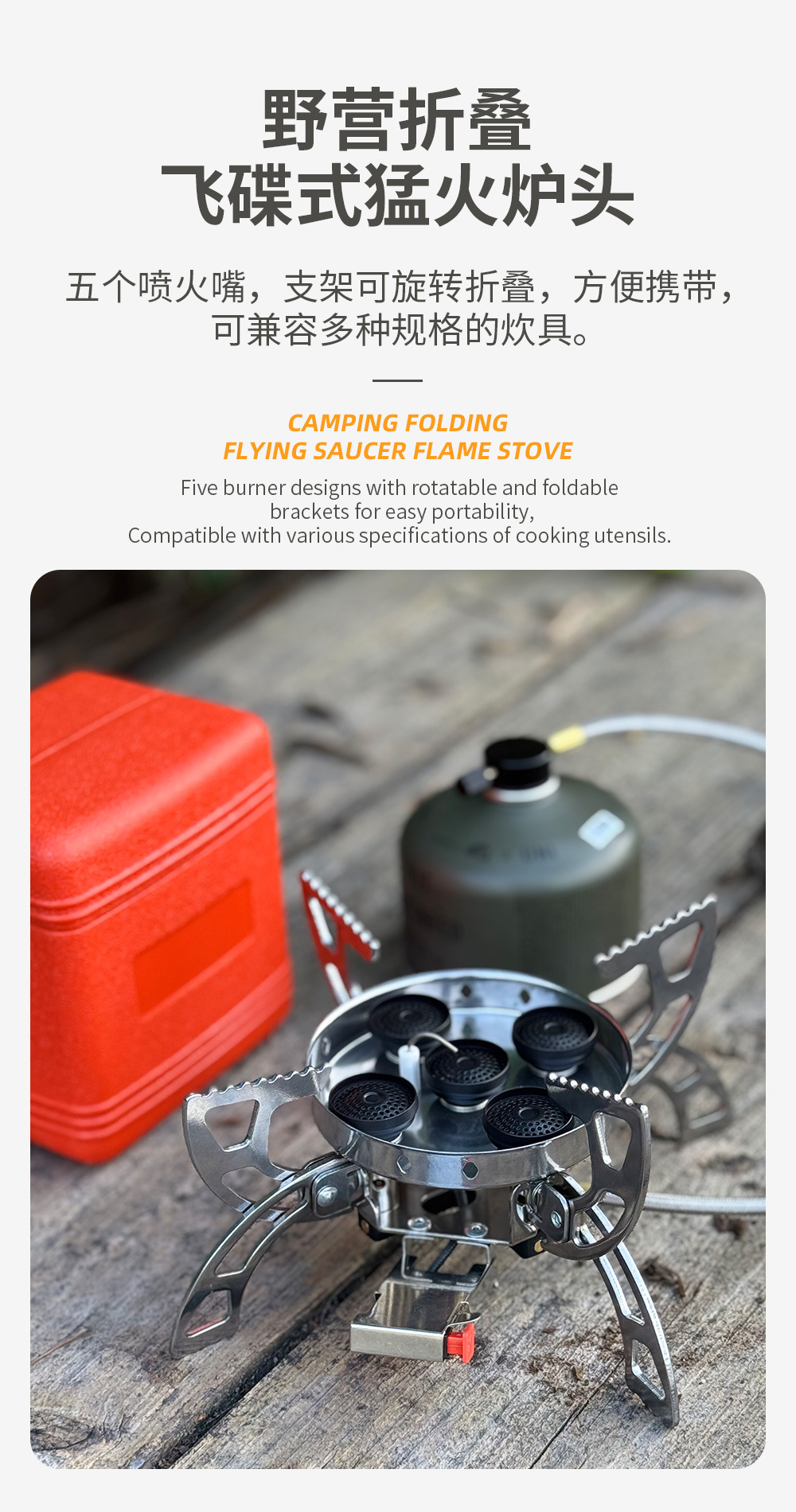 • 비행 접시형 5코어 스토브(보관 상자 포함, 가스 탱크 제외)