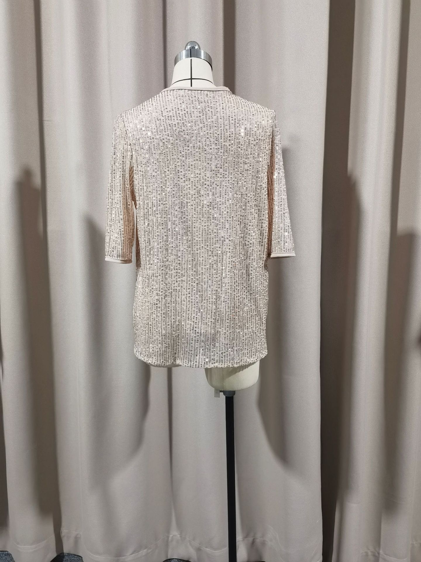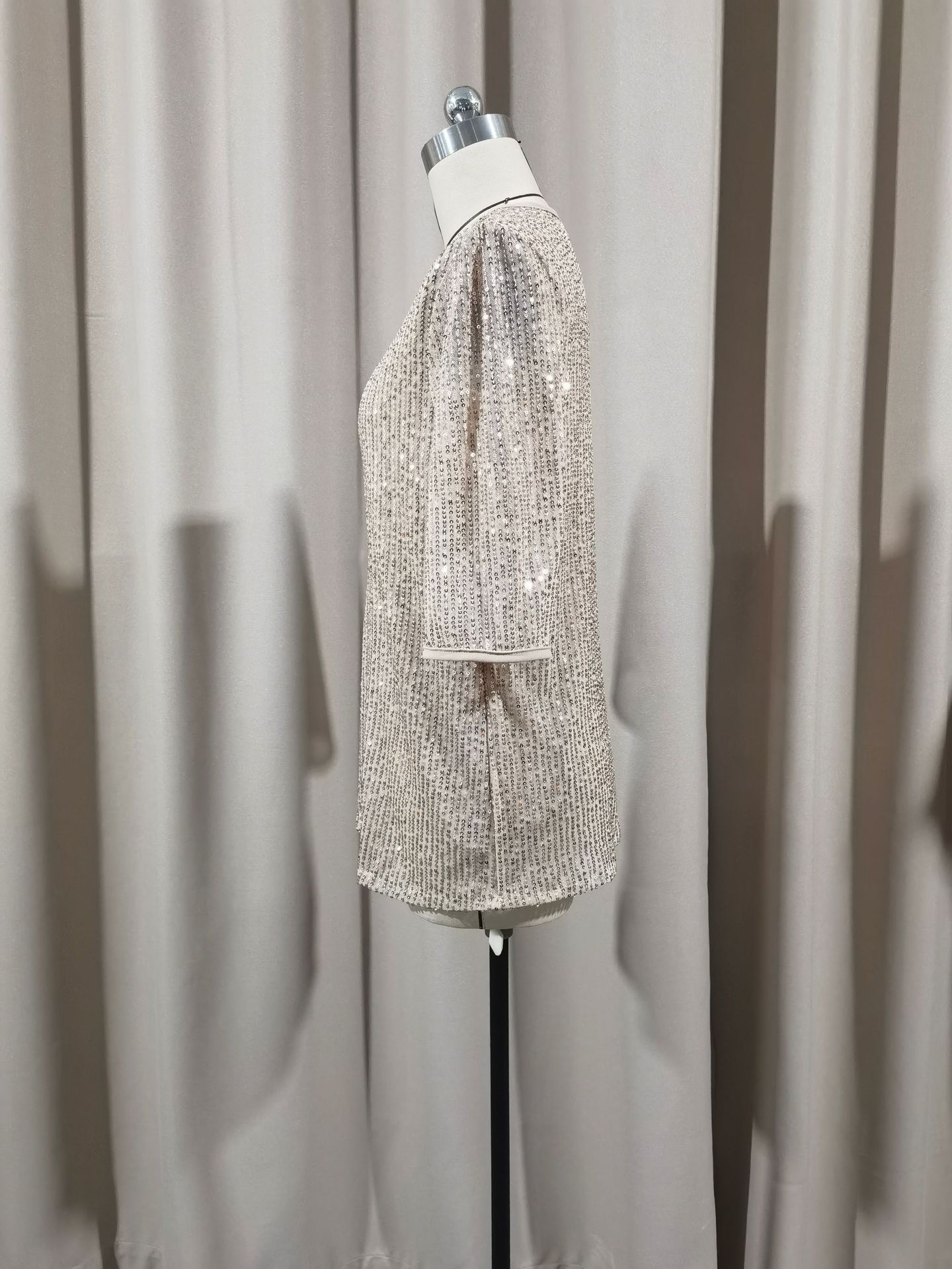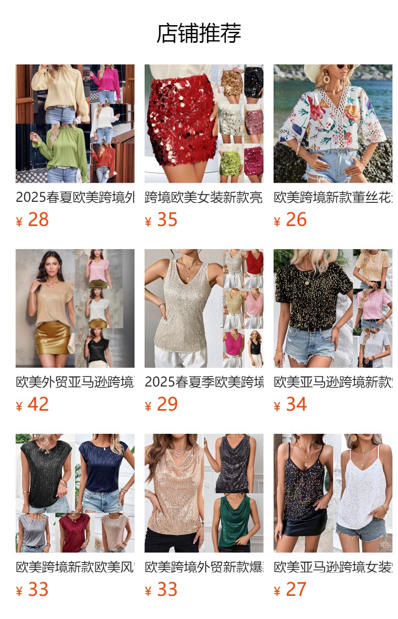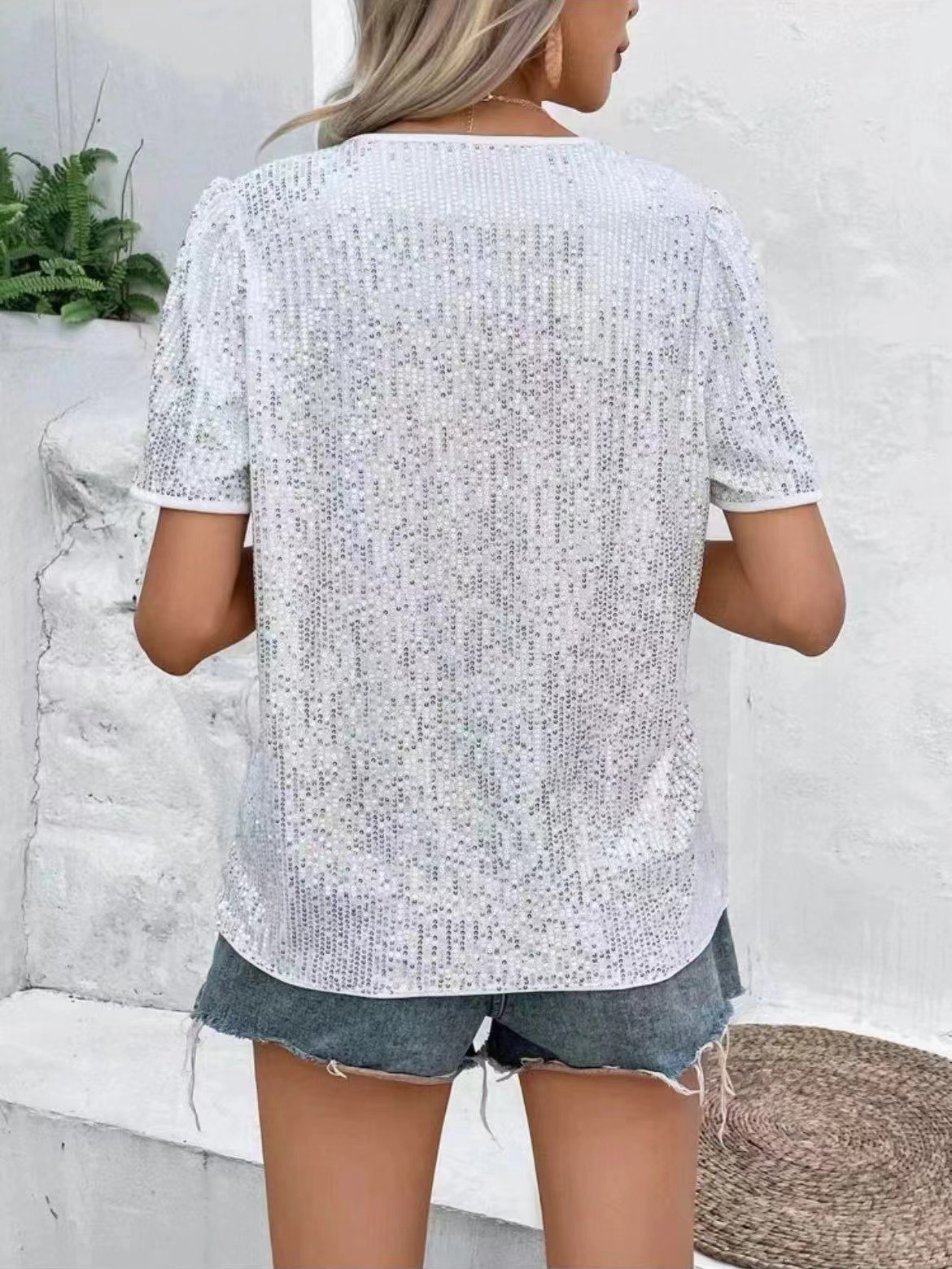 유럽과 미국의 아마존 크로스 여성 의류 크로스보더 새로운 핫 스타일 섹시한 솔리드 컬러 스팽글 v 넥 느슨한 반팔 여성 티셔츠스토어 가기