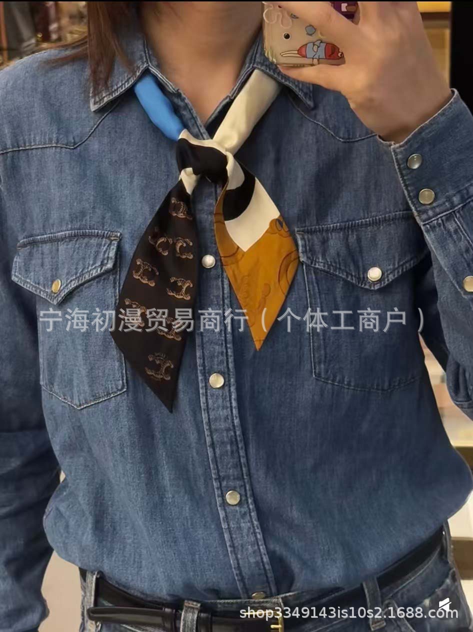 Xiaoxiang 실크 스카프 넥타이 팩 핸들 리본 편지 발렌타인 데이 헤어 밴드 활 헤어 루프 뽕나무 실크 스카프스토어 가기