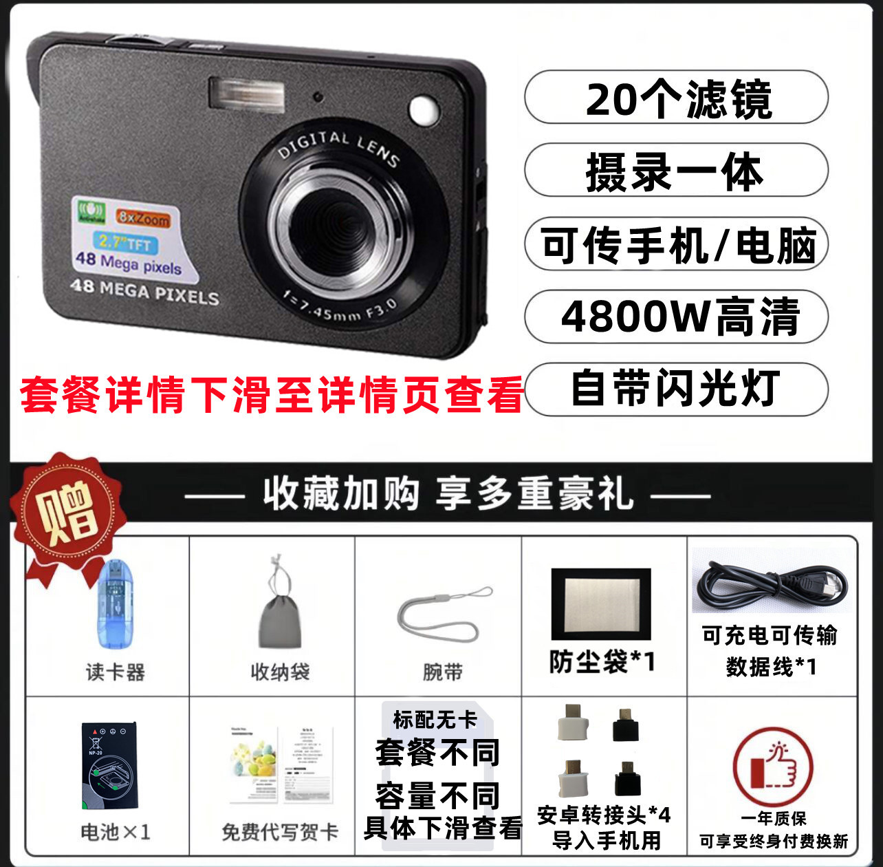 • 4800W 검정색(비디오 녹화 및 휴대폰 전송용 필터 포함) - 패키지 1