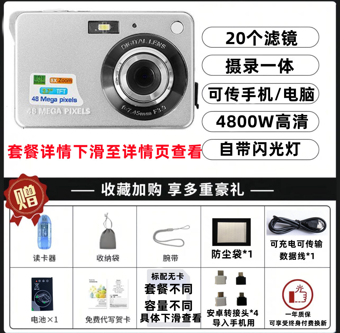 • 4800W 실버(비디오 녹화 및 휴대폰 전송용 필터 포함) - 패키지 1