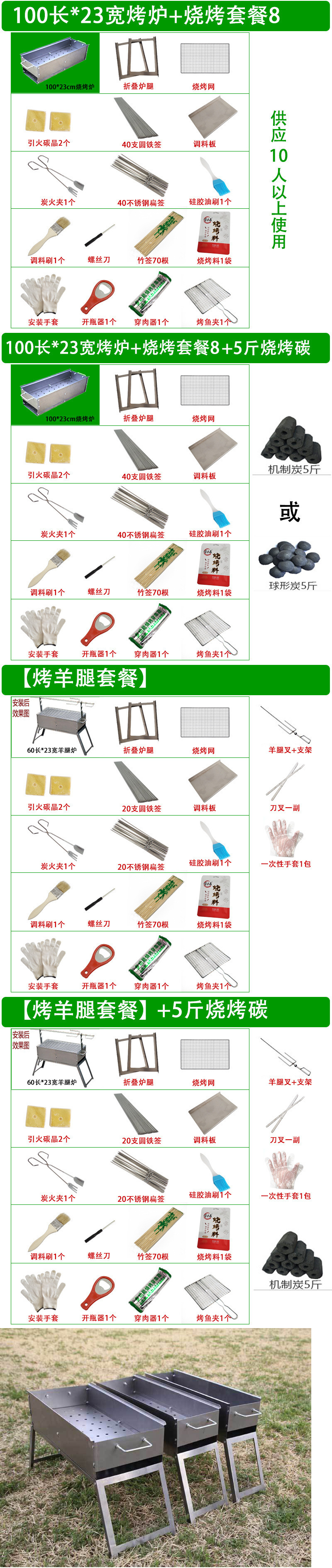 새로운 바베큐 그릴, 가정용 야외 숯불 바베큐 접이식 숯불 대형 및 소형 야외 도구 세트