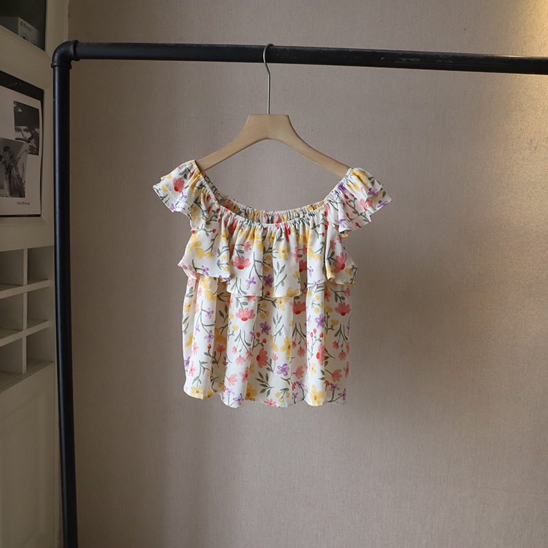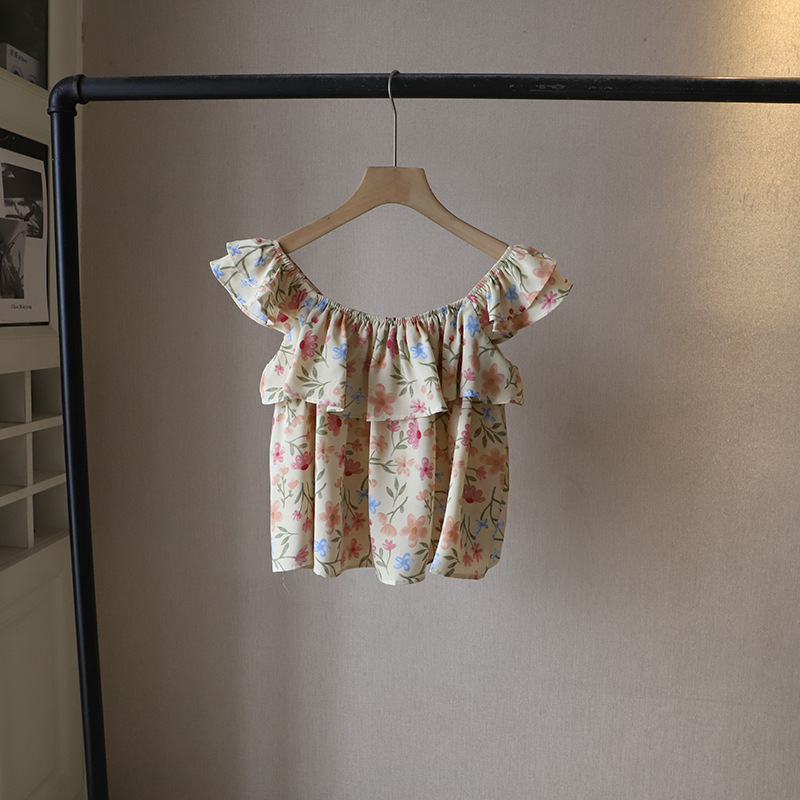 [비즈] 2025 년 여름 새 한국 달콤한 러플 꽃 시대 감소 루즈 조커 아름다운 셔츠 여성 4062스토어 가기