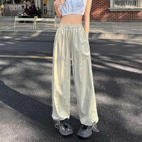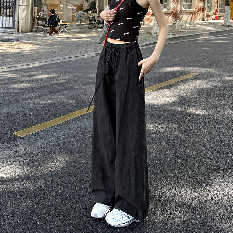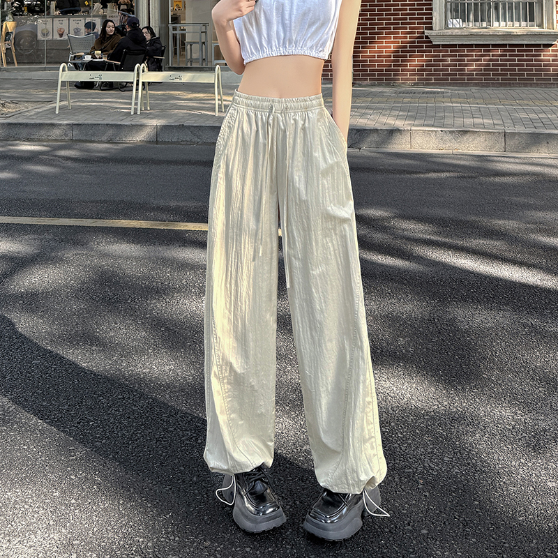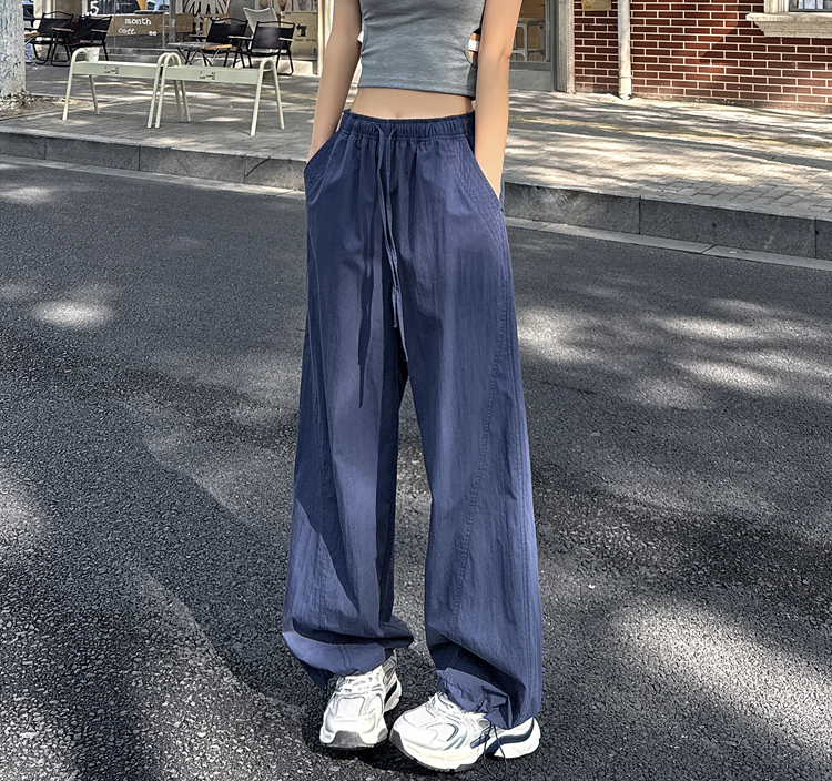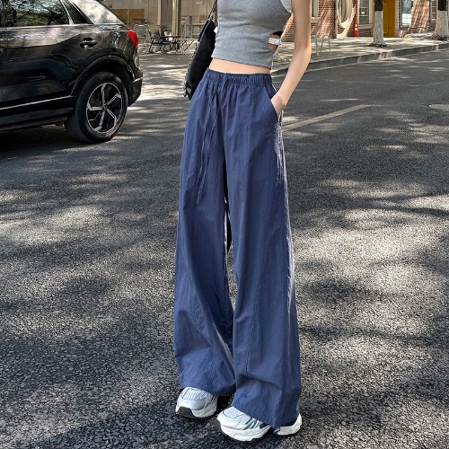 여성용 네이비 블루 속건성 작업복 봄 여름 하이 웨이스트 드레이프 루즈 캐주얼 와이드 레그 팬츠 드로스트링 레깅스 스웨트 팬츠스토어 가기