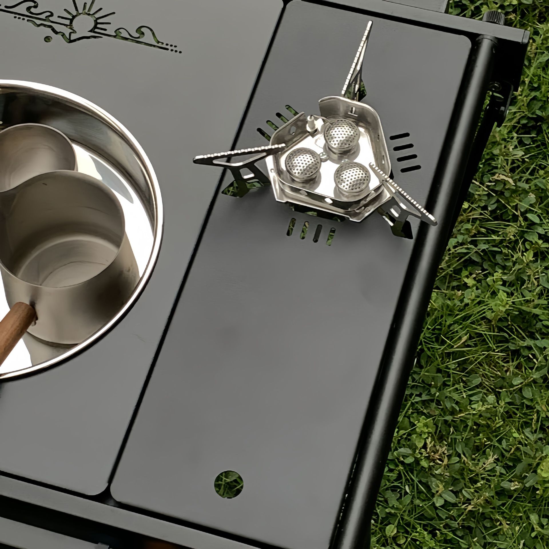 • 방풍 커버가 있는 삼각형 스토브 플레이트 물 공급 장치 [스토브는 포함되지 않음]