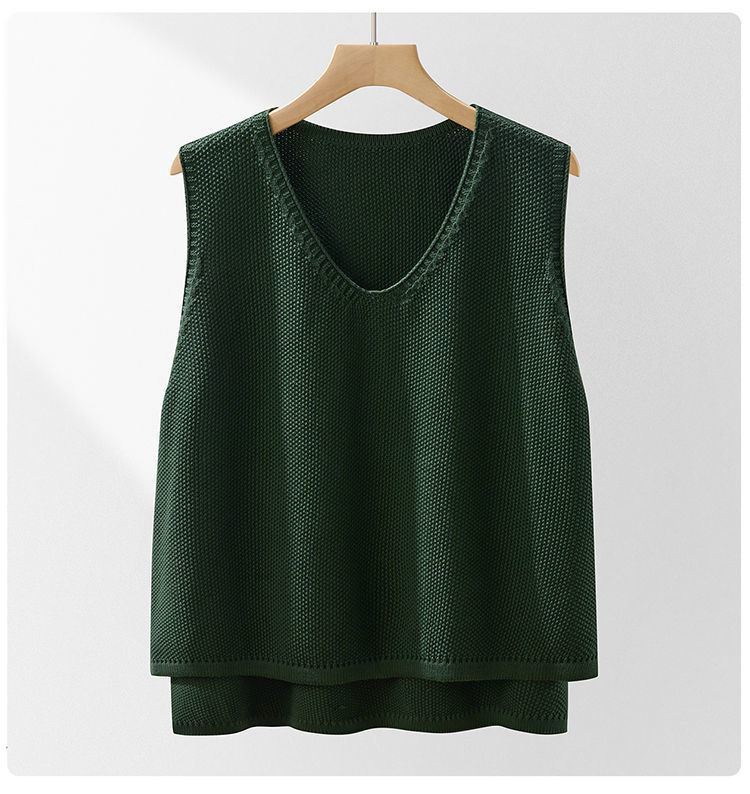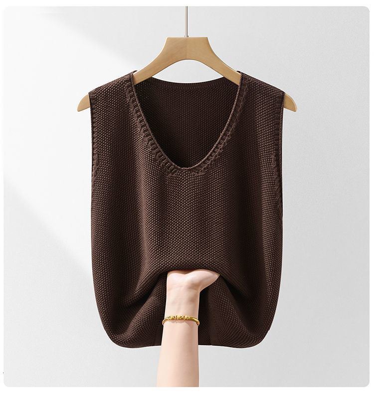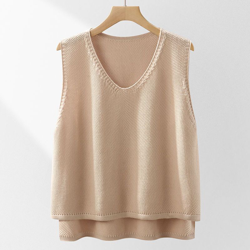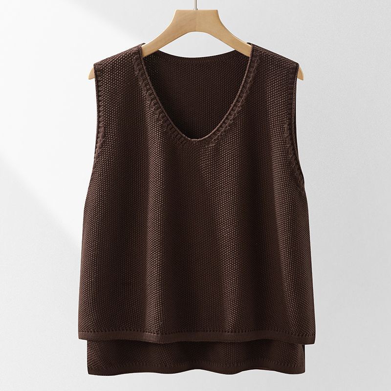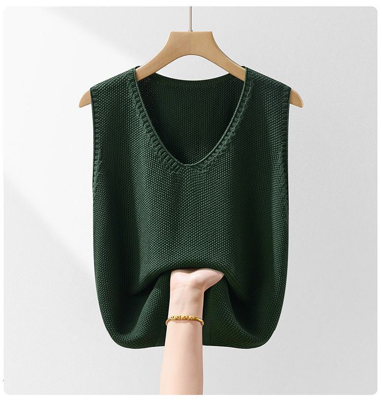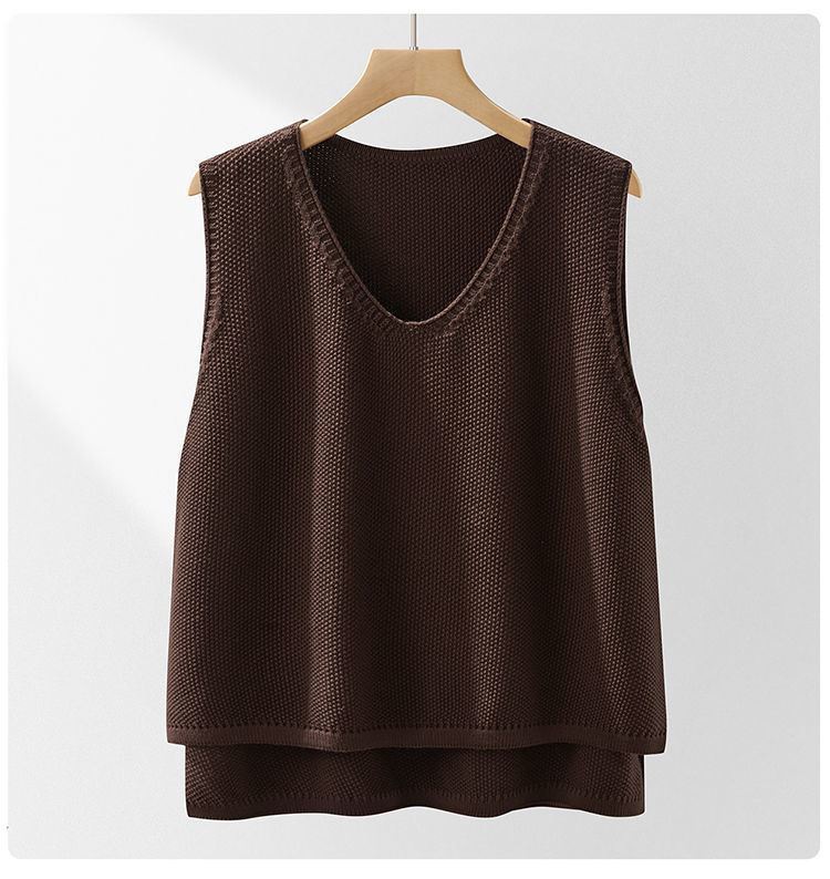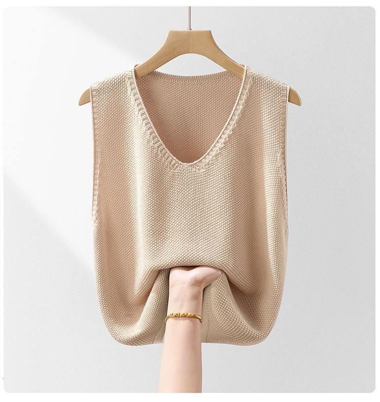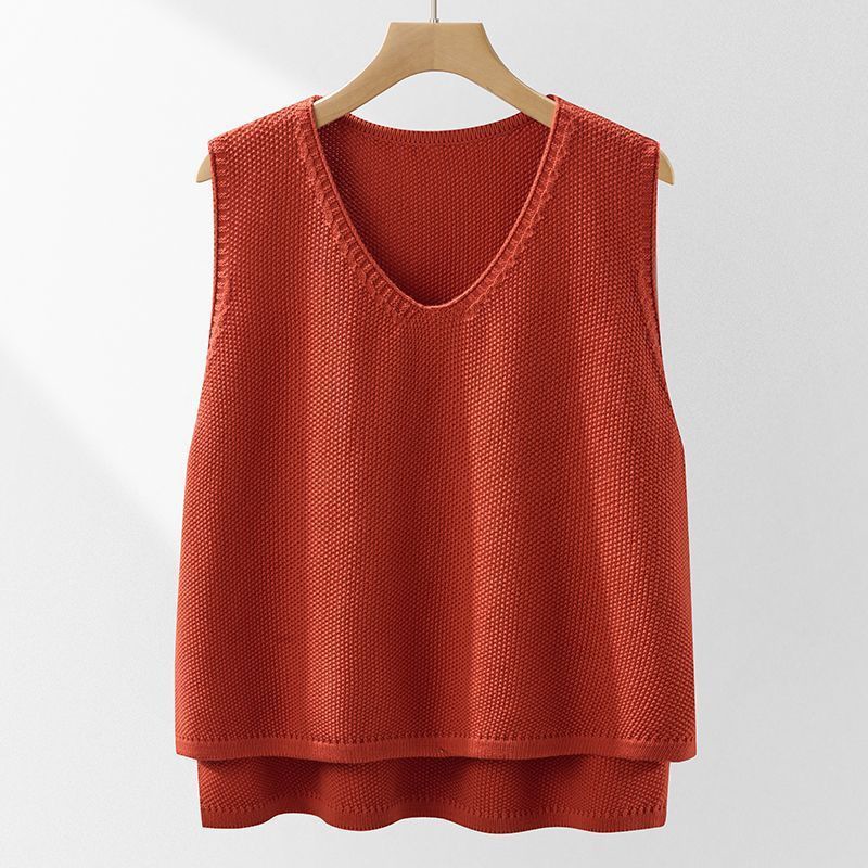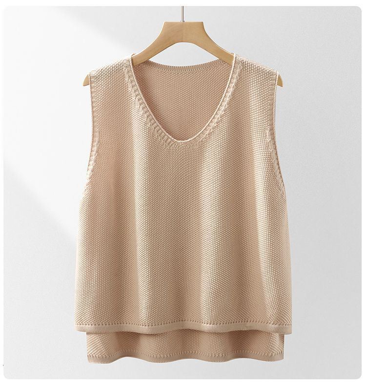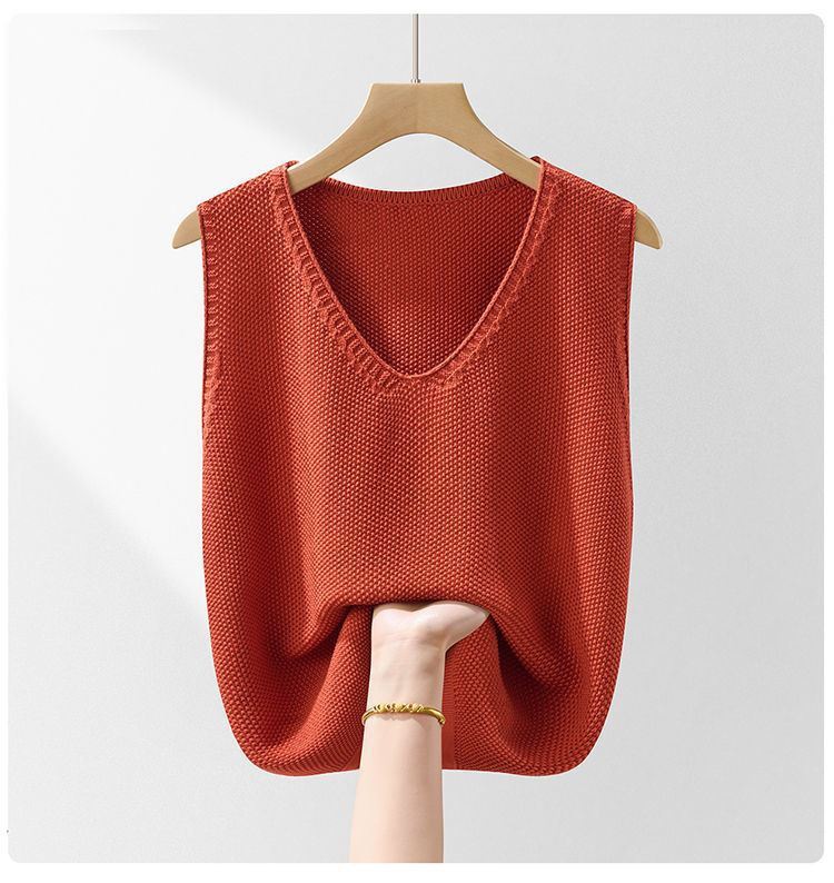 봄과 가을 단색 면 조끼 여성용 V 넥 니트 민소매 스웨터, 짧고 느슨한 바닥과 다용도