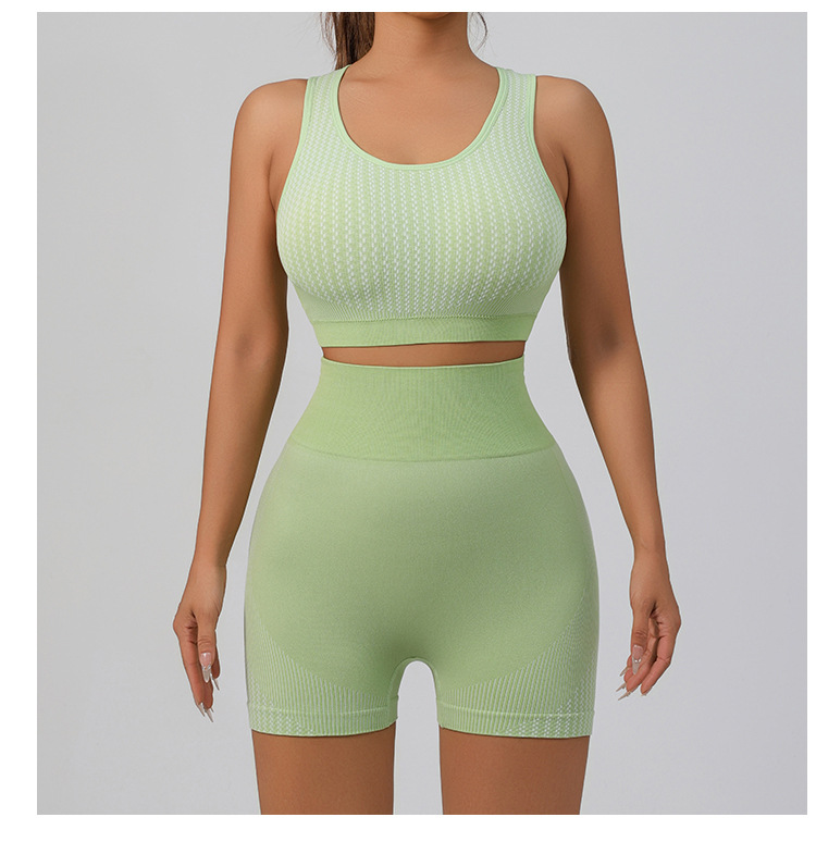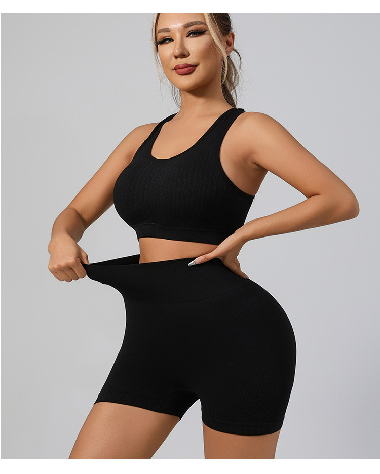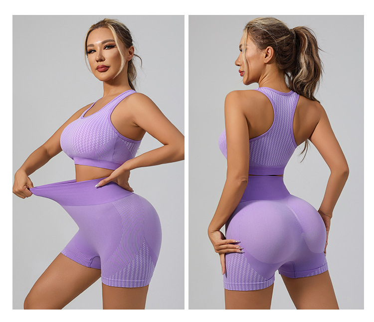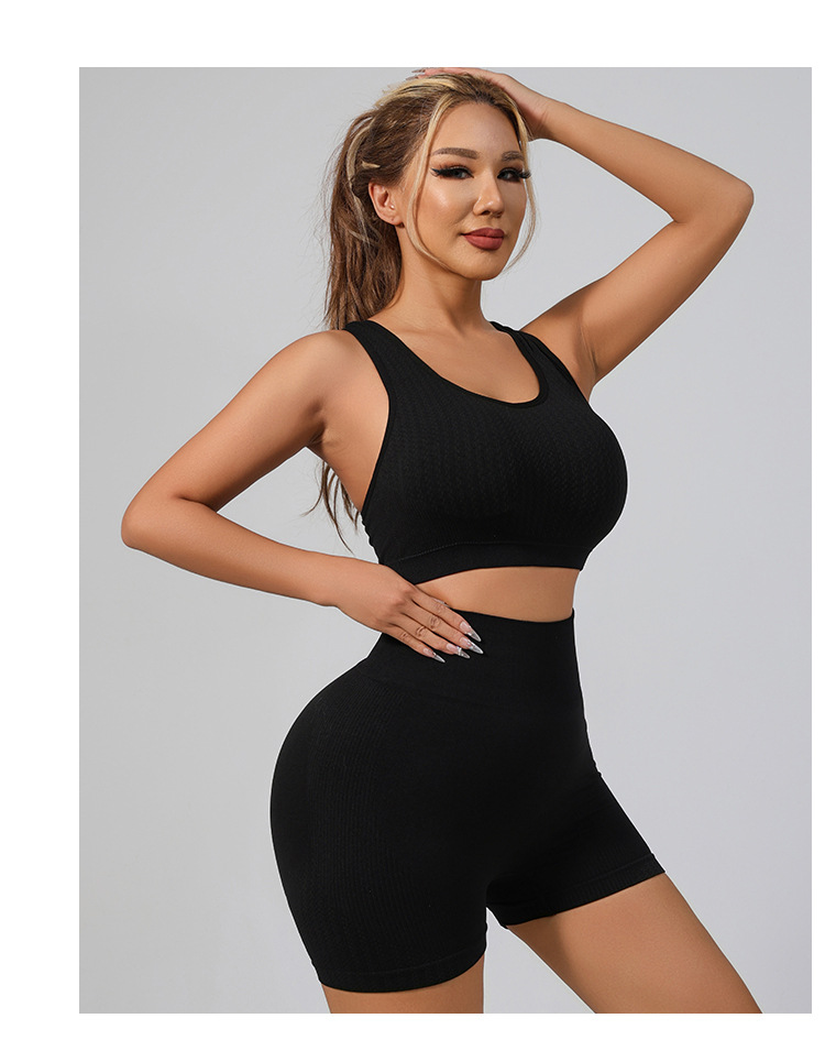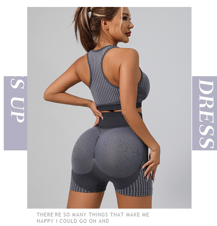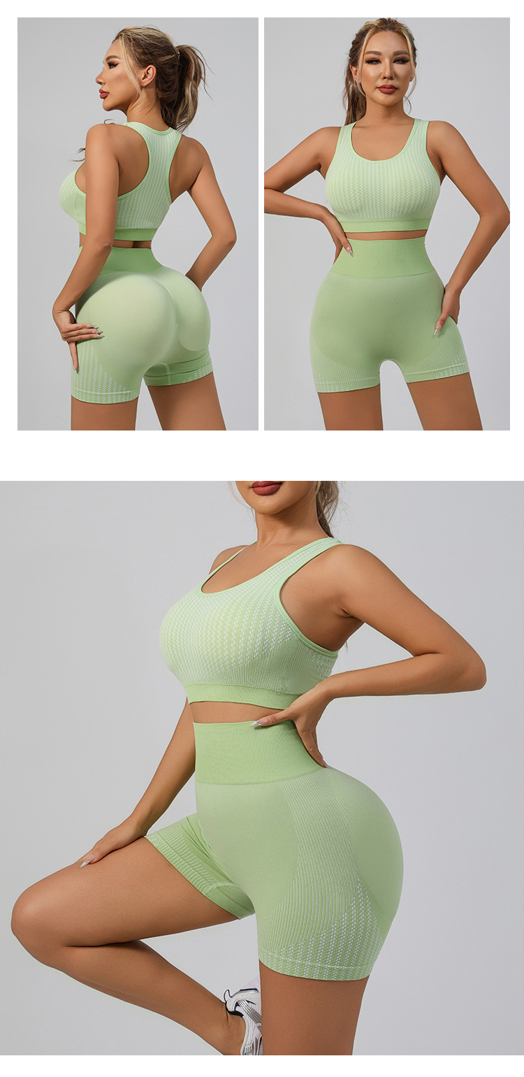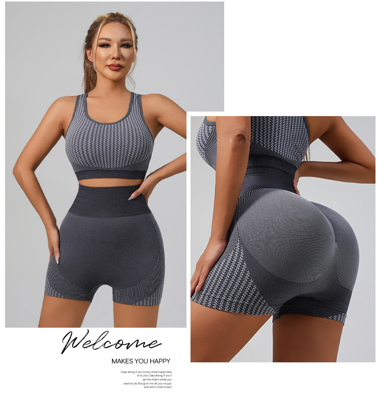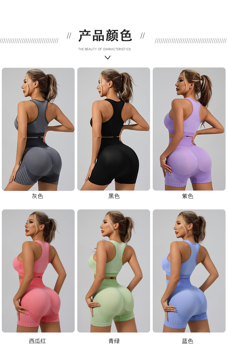 국경 간 유럽과 미국의 원활한 요가 슈트 브래지어 복숭아 엉덩이 리프팅 속건성 피트니스웨어 스포츠 조끼 반바지 슈트