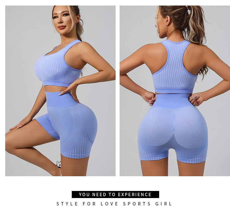국경 간 유럽과 미국의 원활한 요가 슈트 브래지어 복숭아 엉덩이 리프팅 속건성 피트니스웨어 스포츠 조끼 반바지 슈트스토어 가기