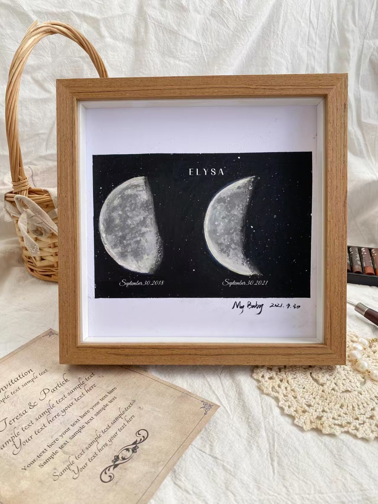 나무 중공 입체 2cm 디지털 유화 사진 프레임 손으로 그린 오일 파스텔 장착 표본 벽걸이 테이블