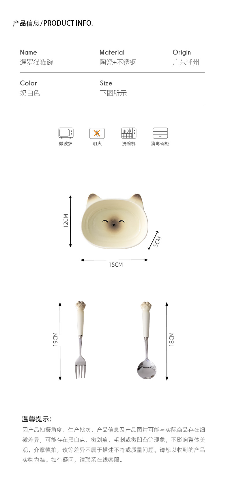 • 6inch 고양이 그릇 + 포크와 스푼 컬러 박스