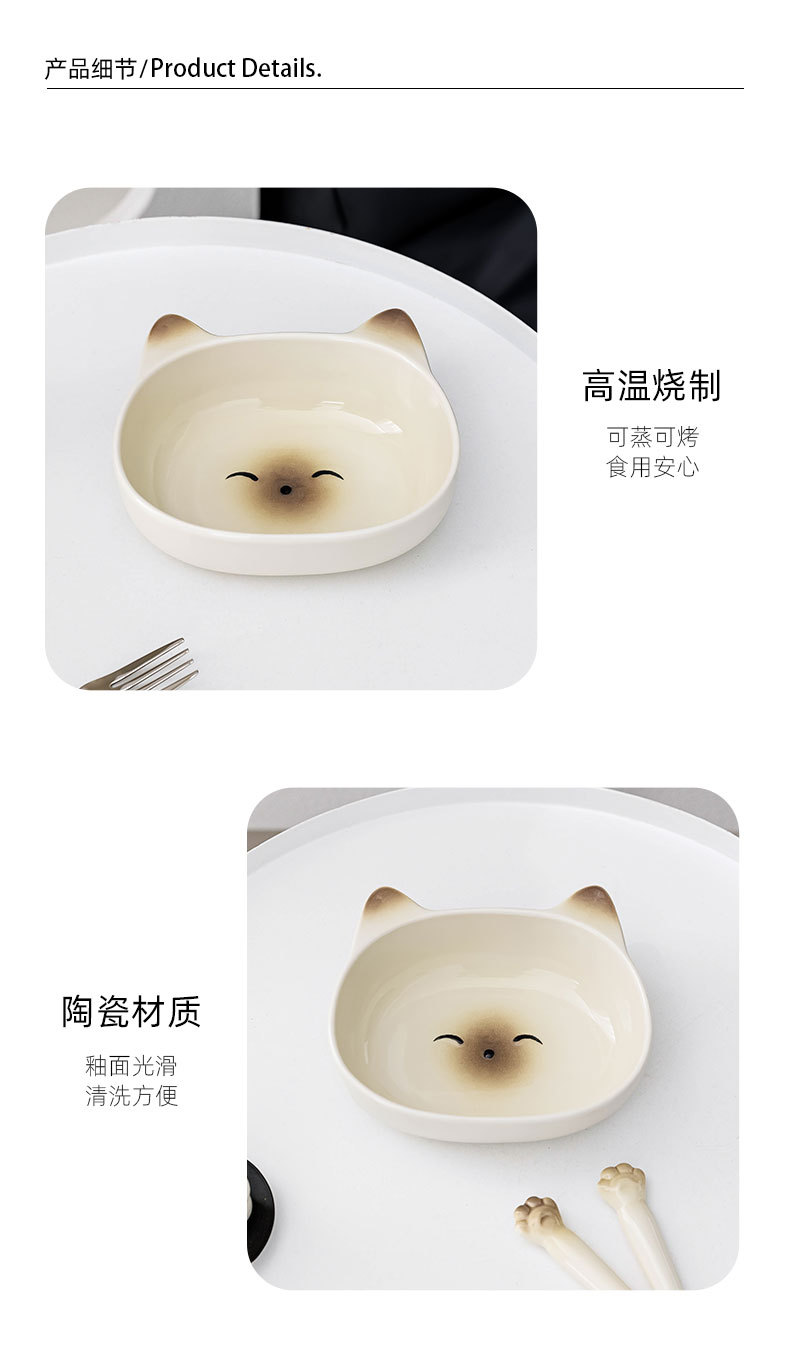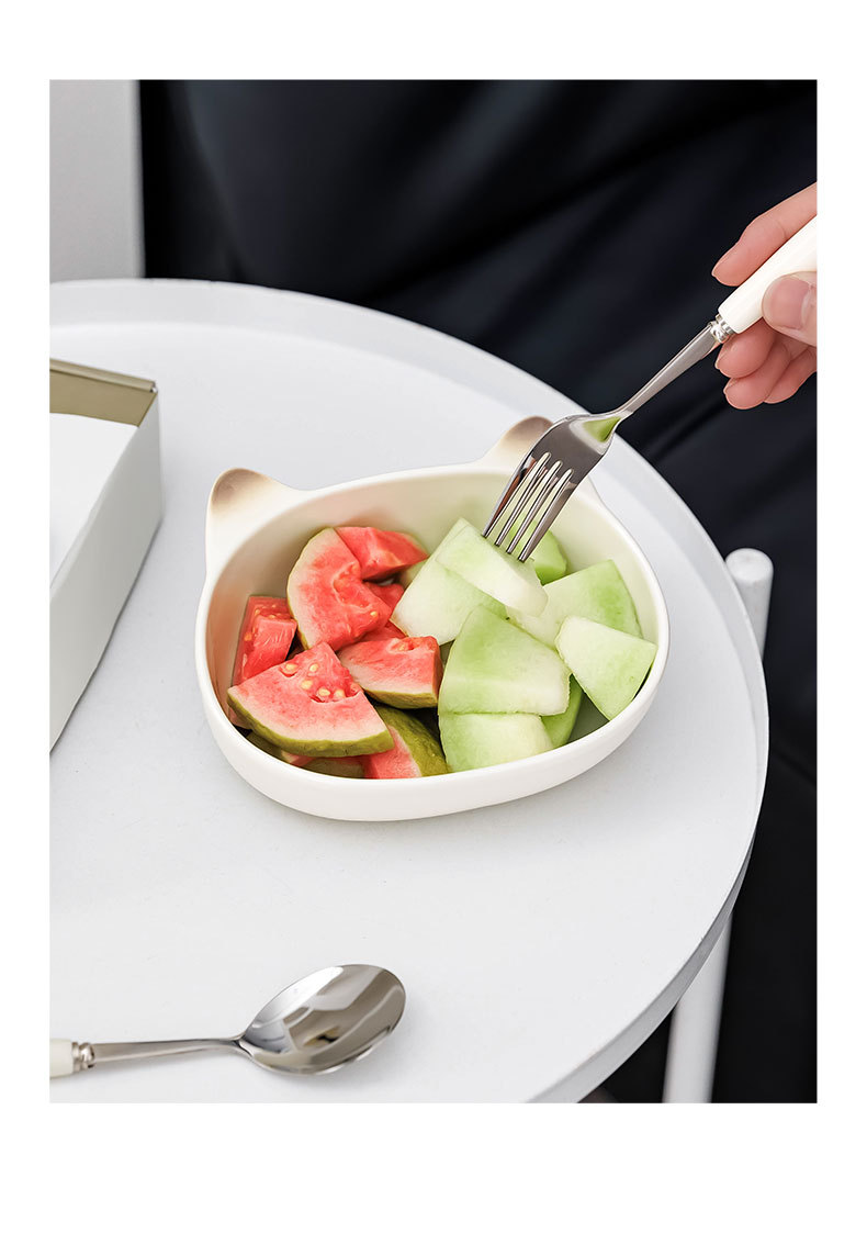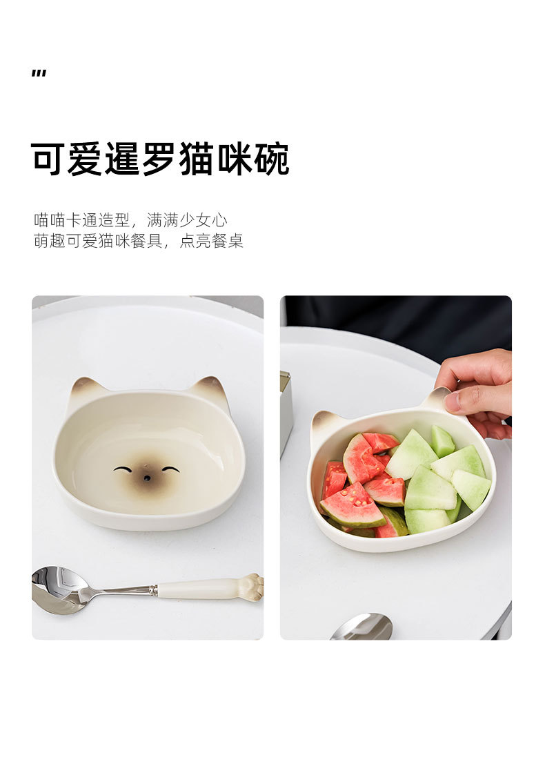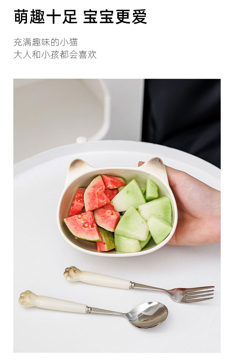 귀여운 고양이 세라믹 그릇 스테인레스 스틸 스푼 먹는 스푼 학생 어린이 홈 휴대용 세트 그릇 선물 상자
