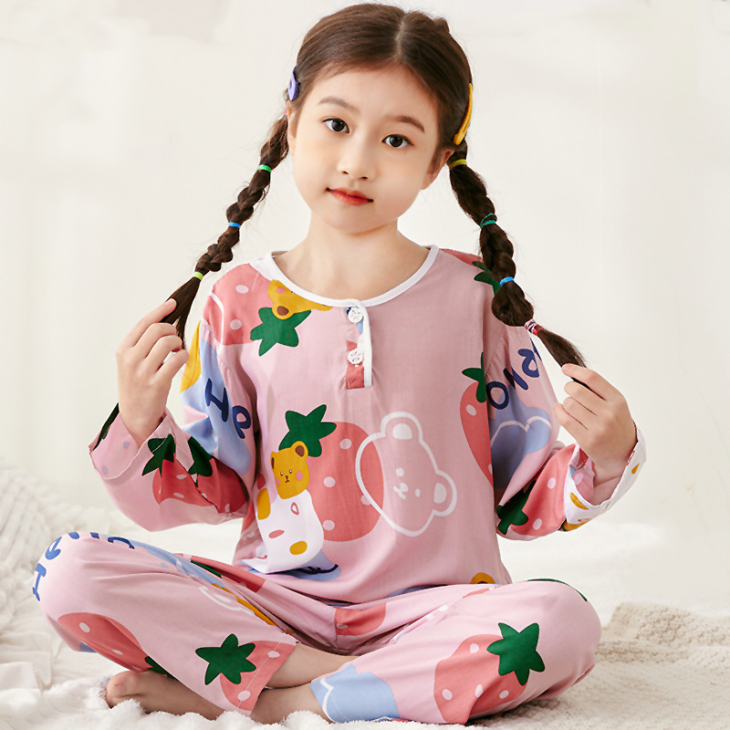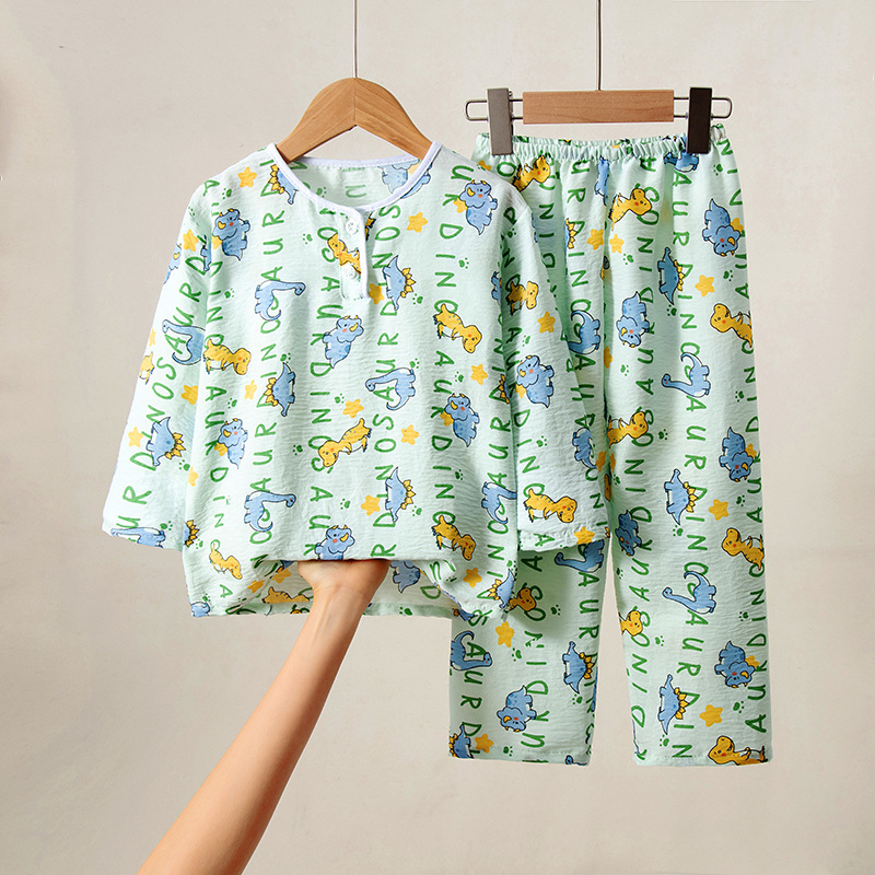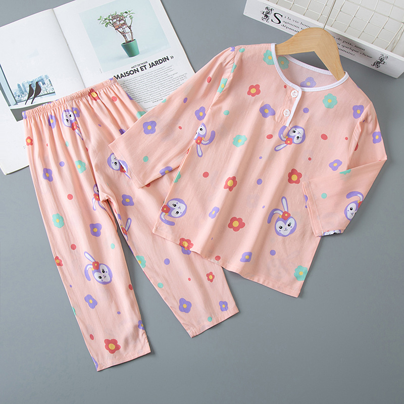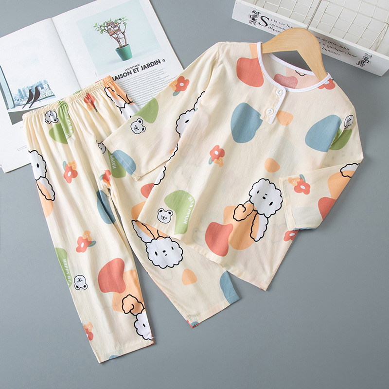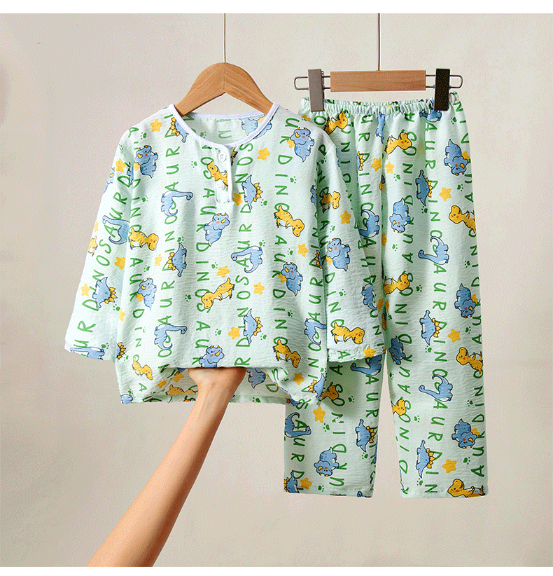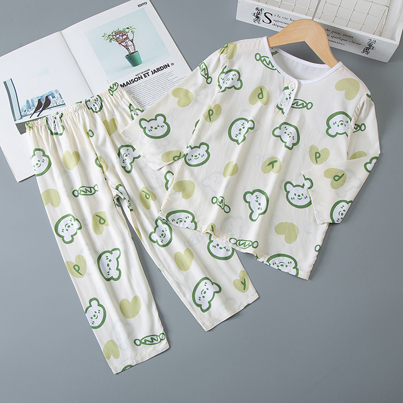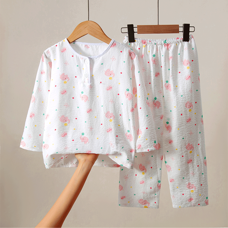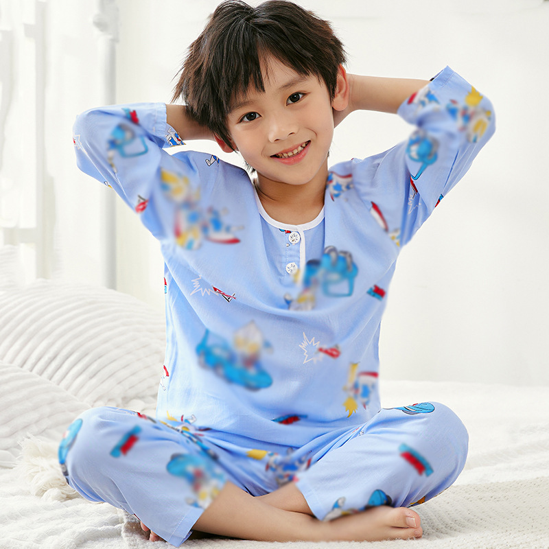 봄 어린이 잠옷, 면 실크 클라우드 면 실크 에어컨 의류, 여름 얇은 긴팔 양복, 소년 소녀 가정복