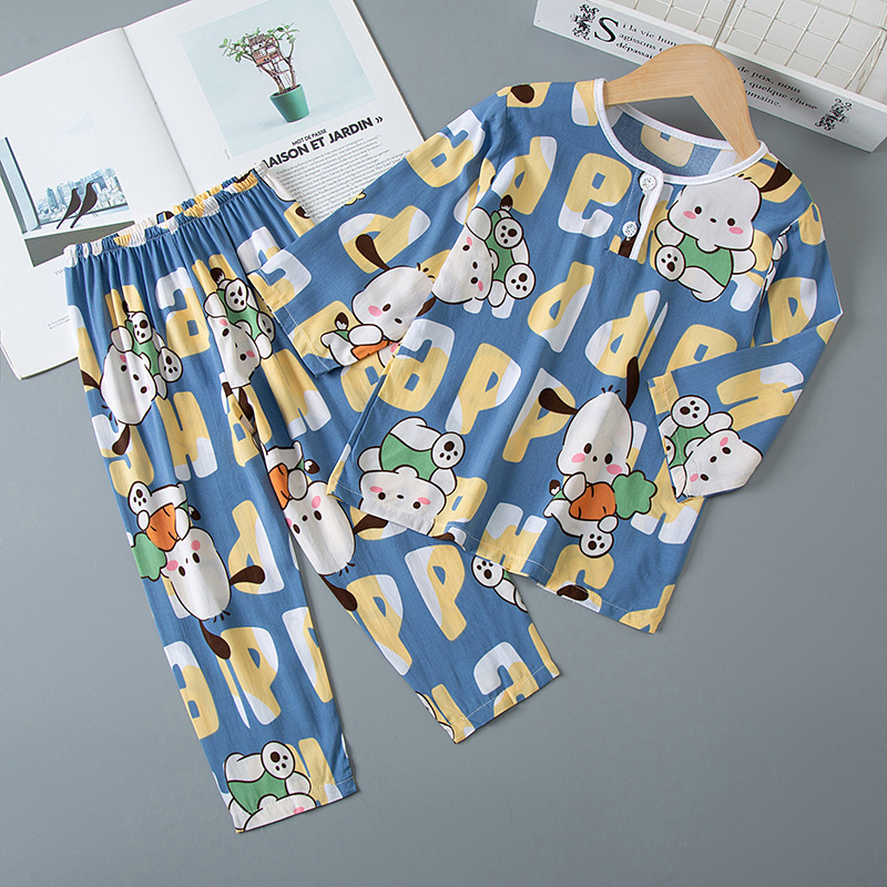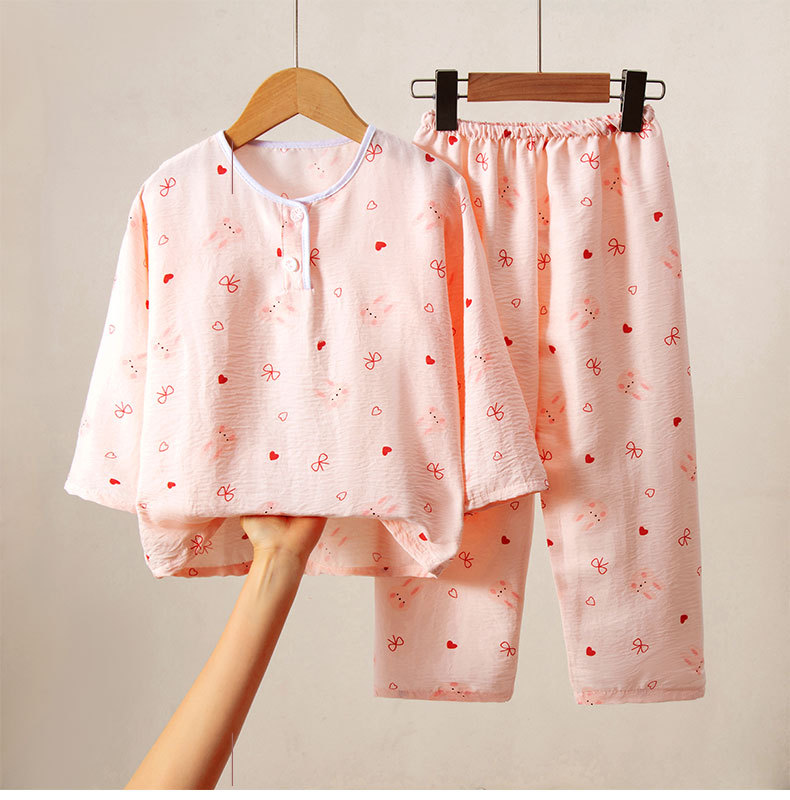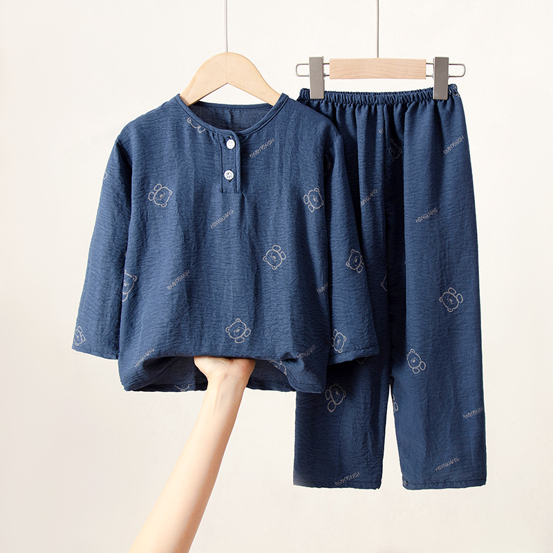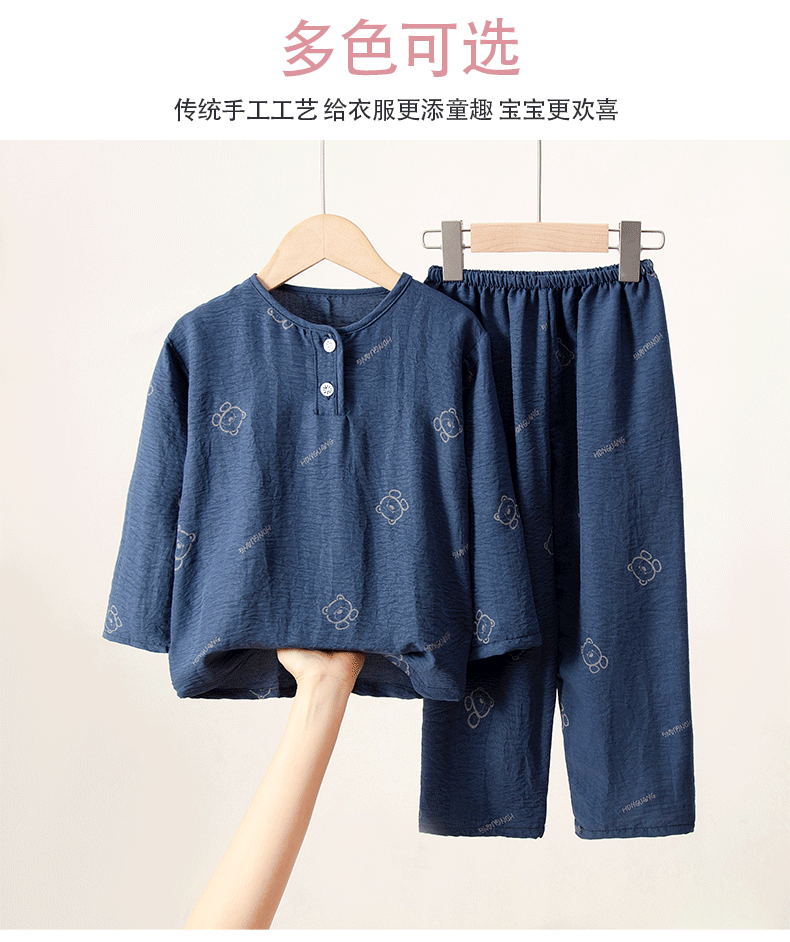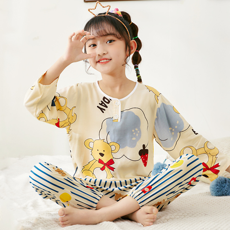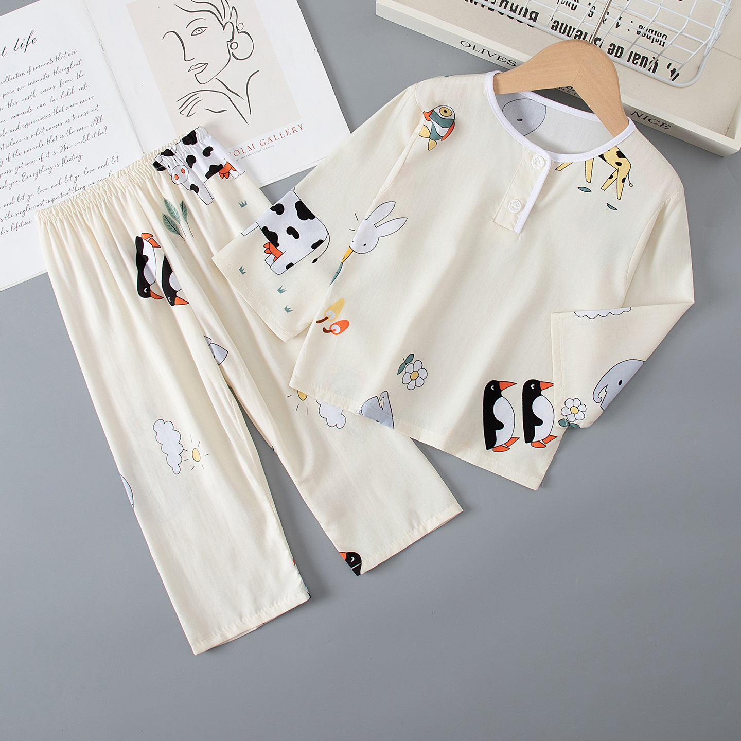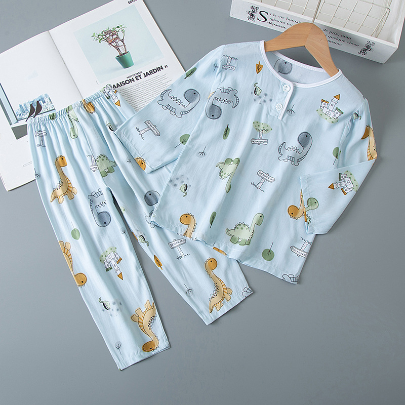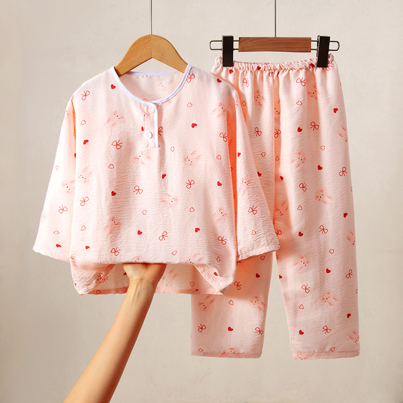 봄 어린이 잠옷, 면 실크 클라우드 면 실크 에어컨 의류, 여름 얇은 긴팔 양복, 소년 소녀 가정복