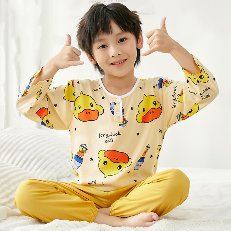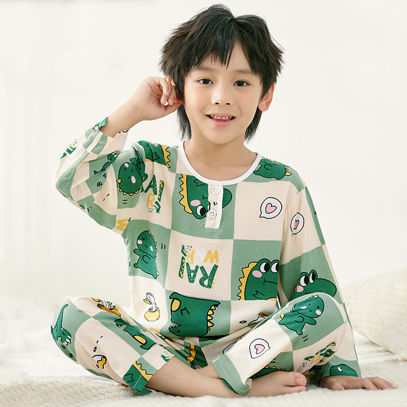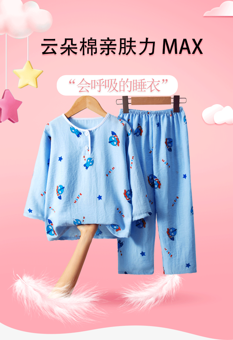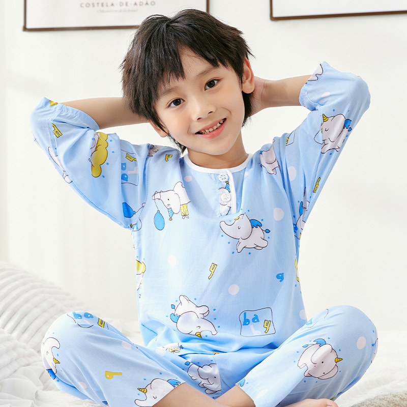 봄 어린이 잠옷, 면 실크 클라우드 면 실크 에어컨 의류, 여름 얇은 긴팔 양복, 소년 소녀 가정복스토어 가기