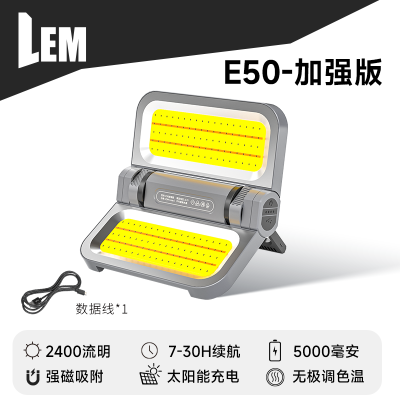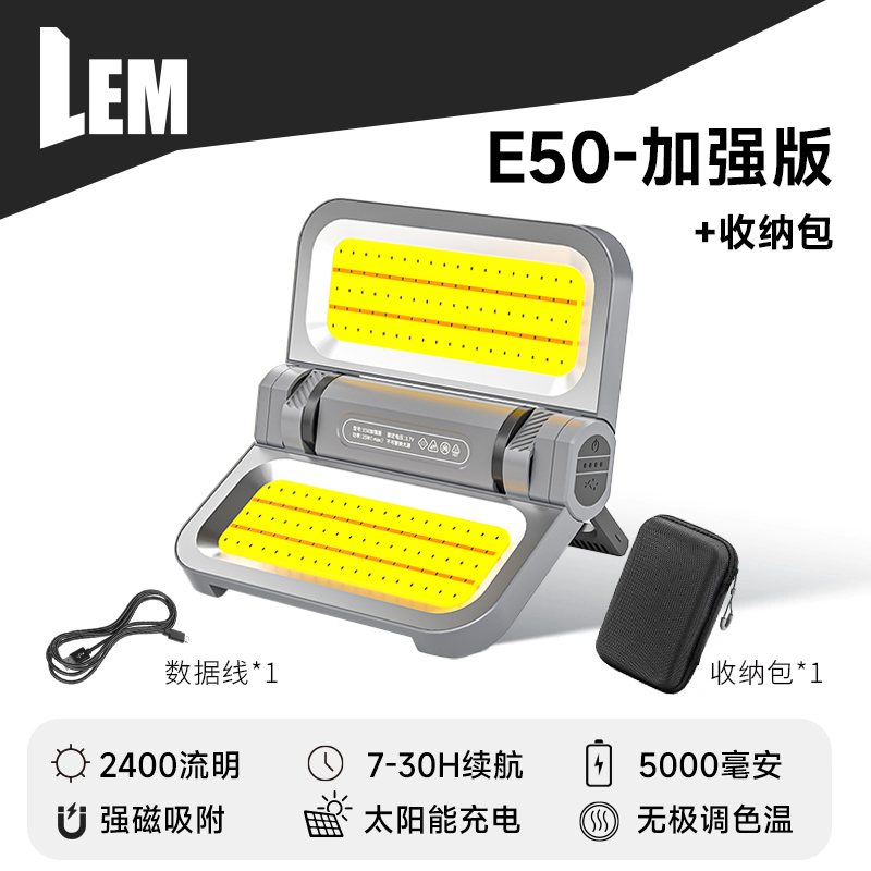 • [E50-다크 그레이 강화 버전] 5000MAH/7-30H 배터리 수명/2400LM/TYPE-C 고속 충전