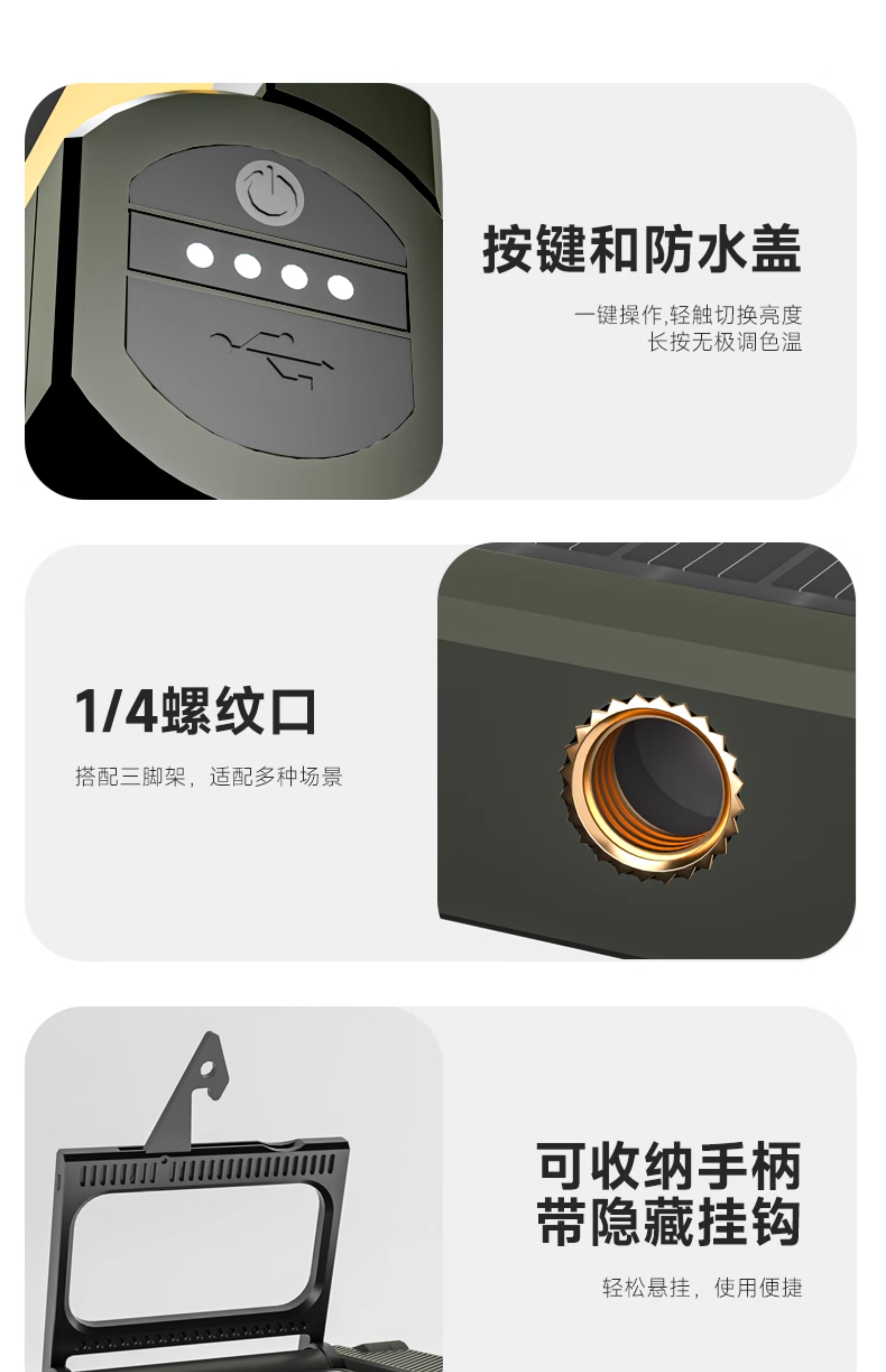 • [E50-군용 녹색 표준 버전] 3000MAH/5-24H 배터리 수명/1800LM/TYPE-C 고속 충전