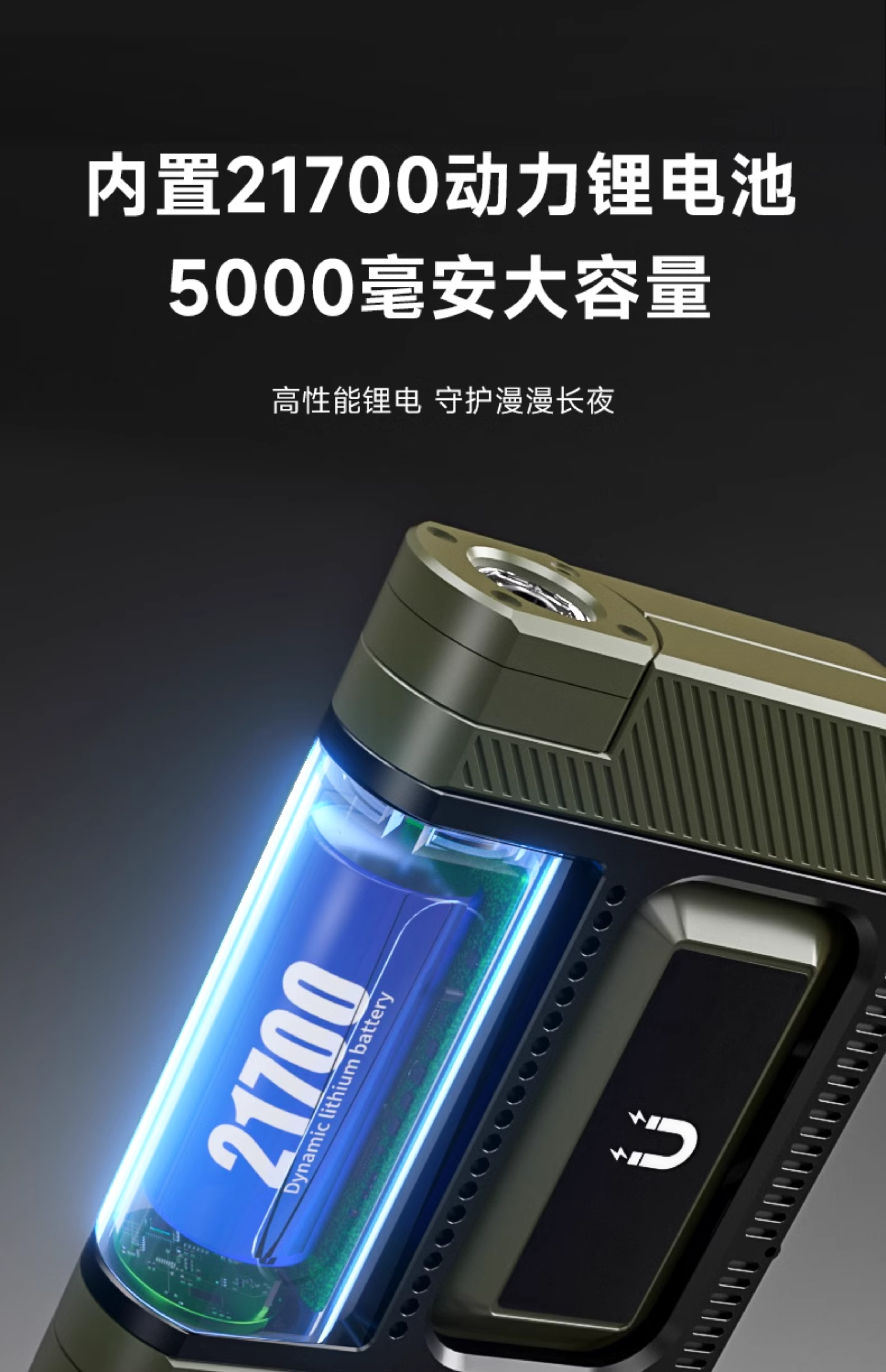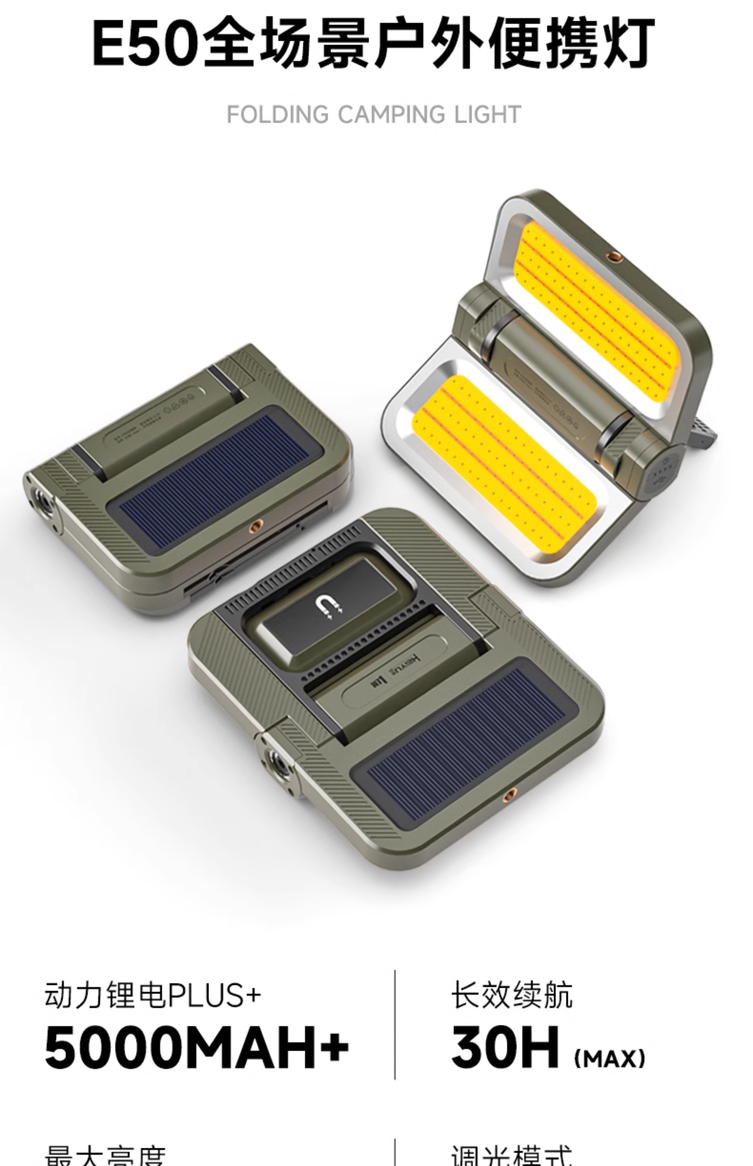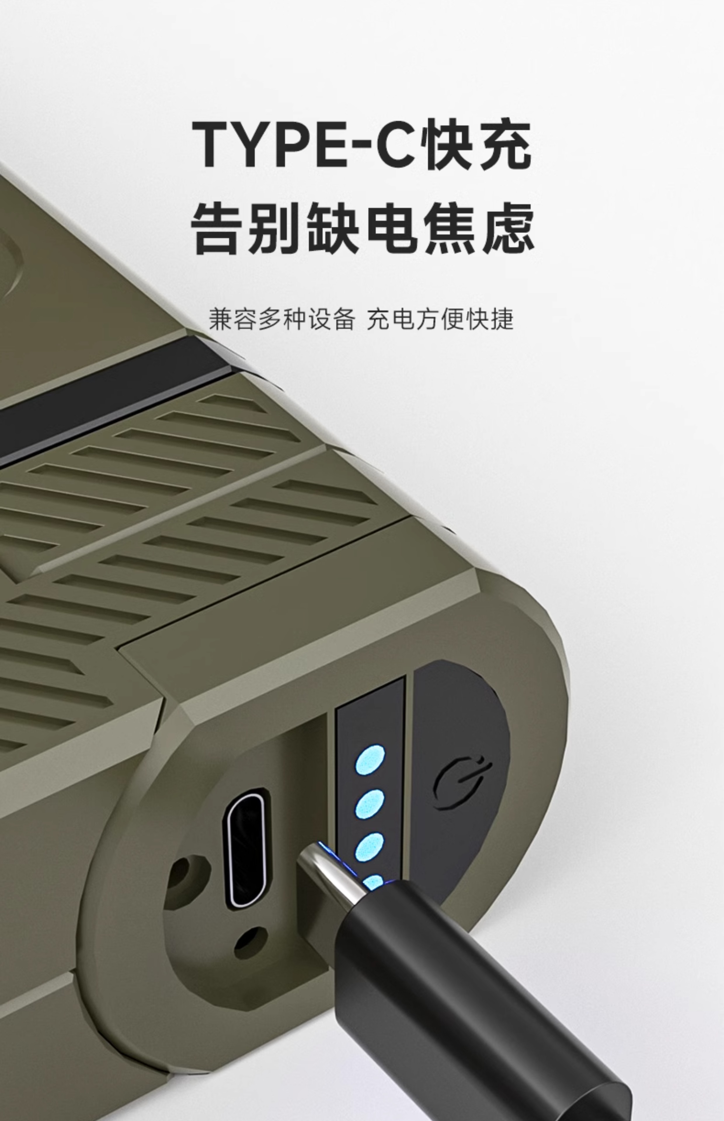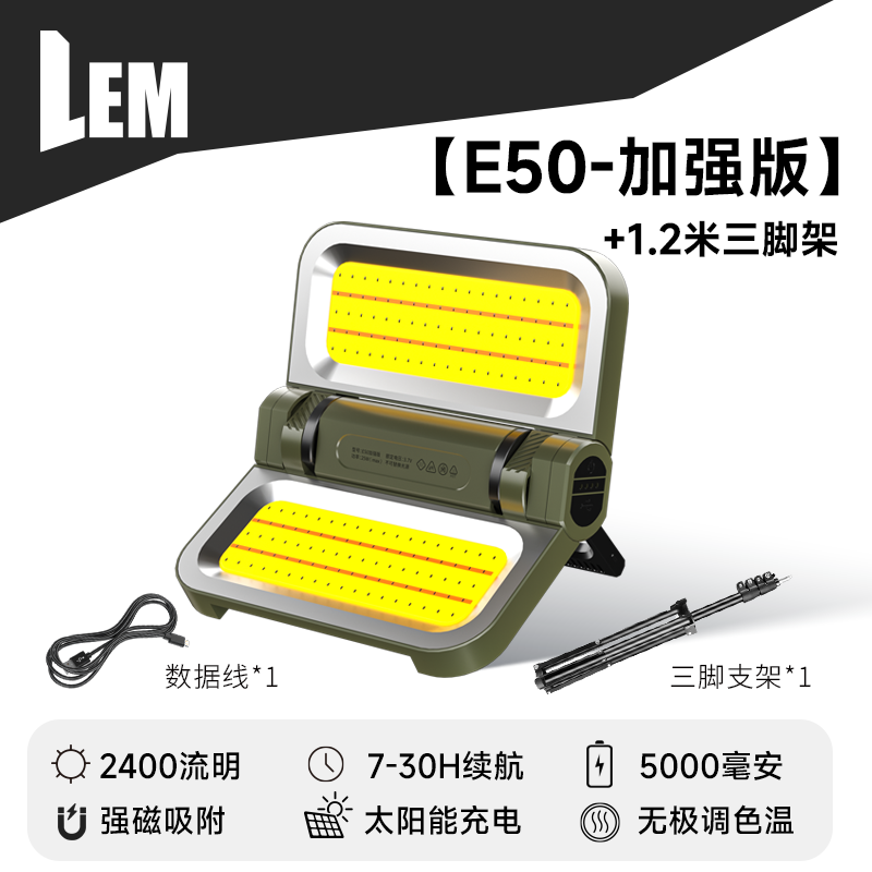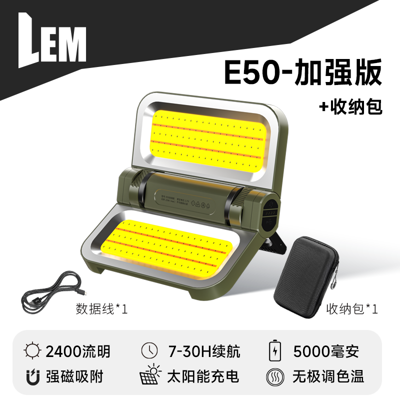 • [E50-밀리터리 그린 강화 버전] 5000MAH/7-30H 배터리 수명/2400LM/TYPE-C 고속 충전