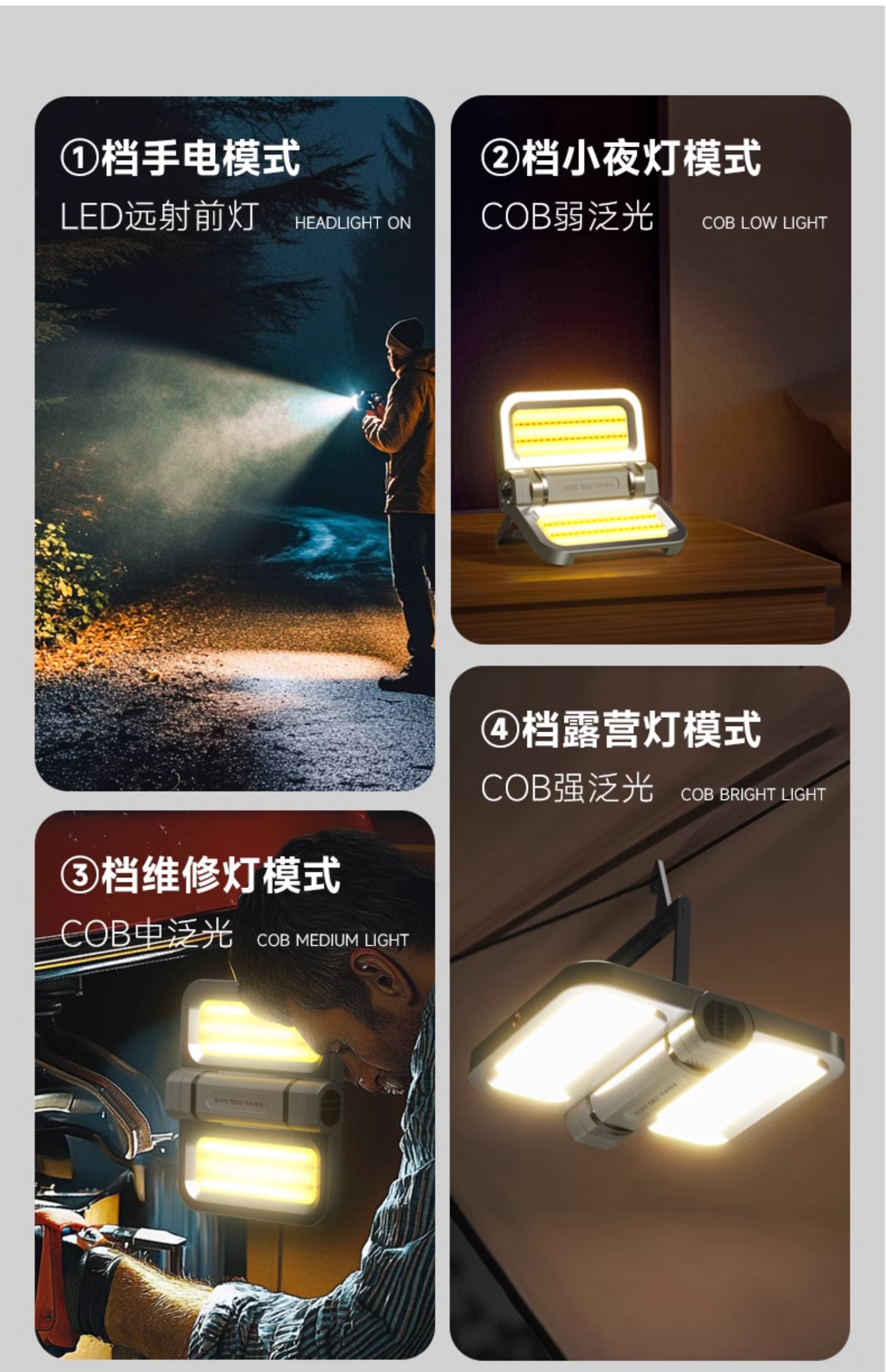 • [E50-다크 그레이 표준 버전] 3000MAH/5-24H 배터리 수명/1800LM/TYPE-C 고속 충전