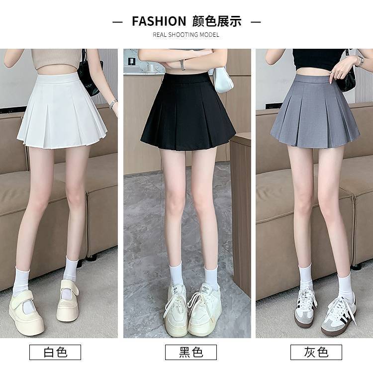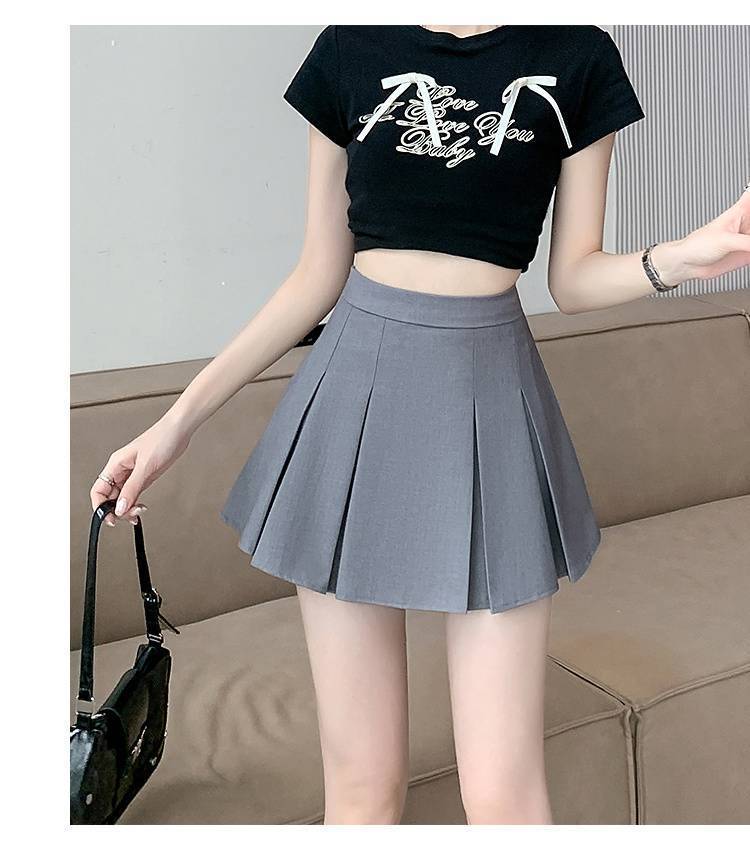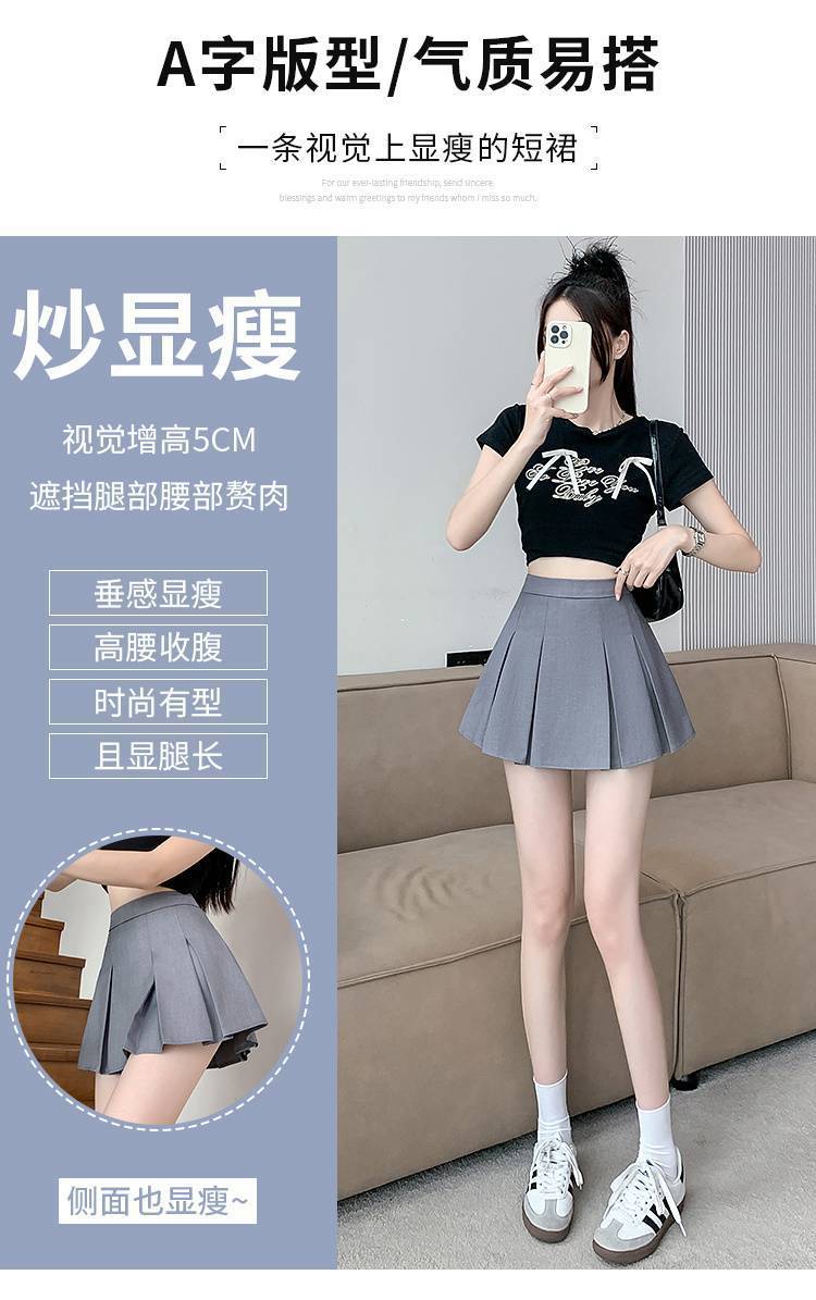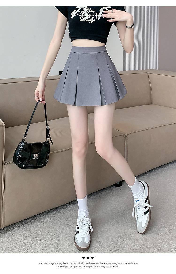 단색 주름 치마 여성 여름 2025 새로운 스타일 스파이스 소녀 짧은 치마 작은 높은 허리 A-라인 세트 치마스토어 가기