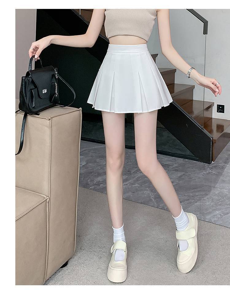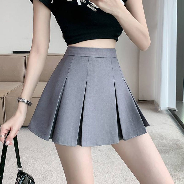 단색 주름 치마 여성 여름 2025 새로운 스타일 스파이스 소녀 짧은 치마 작은 높은 허리 A-라인 세트 치마
