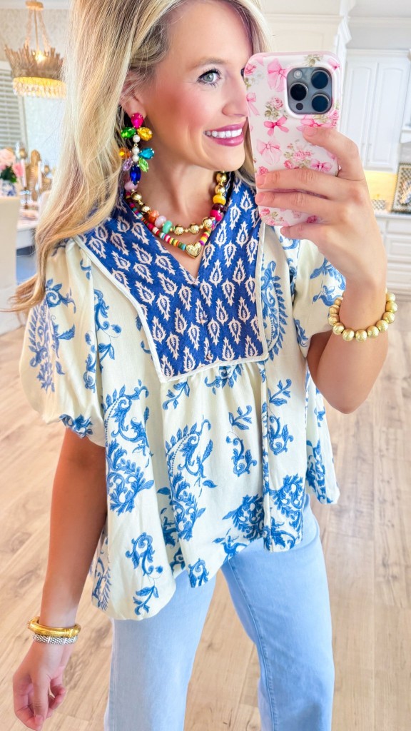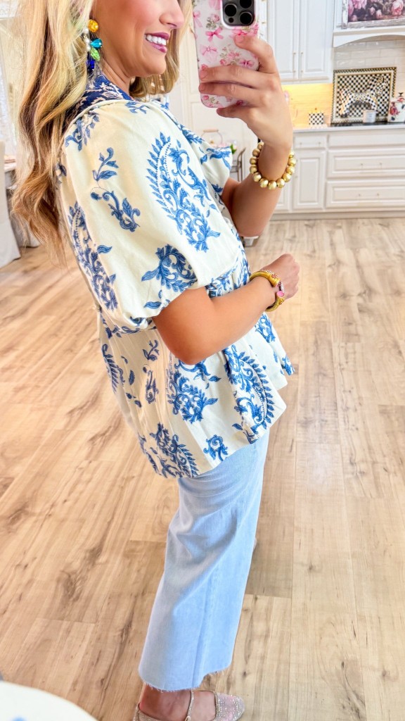 국경 간 유럽과 미국의 새로운 여름 프랑스 목가적 인 V-목 꽃 인쇄 간단한 패션 퍼프 소매 여성용 셔츠스토어 가기