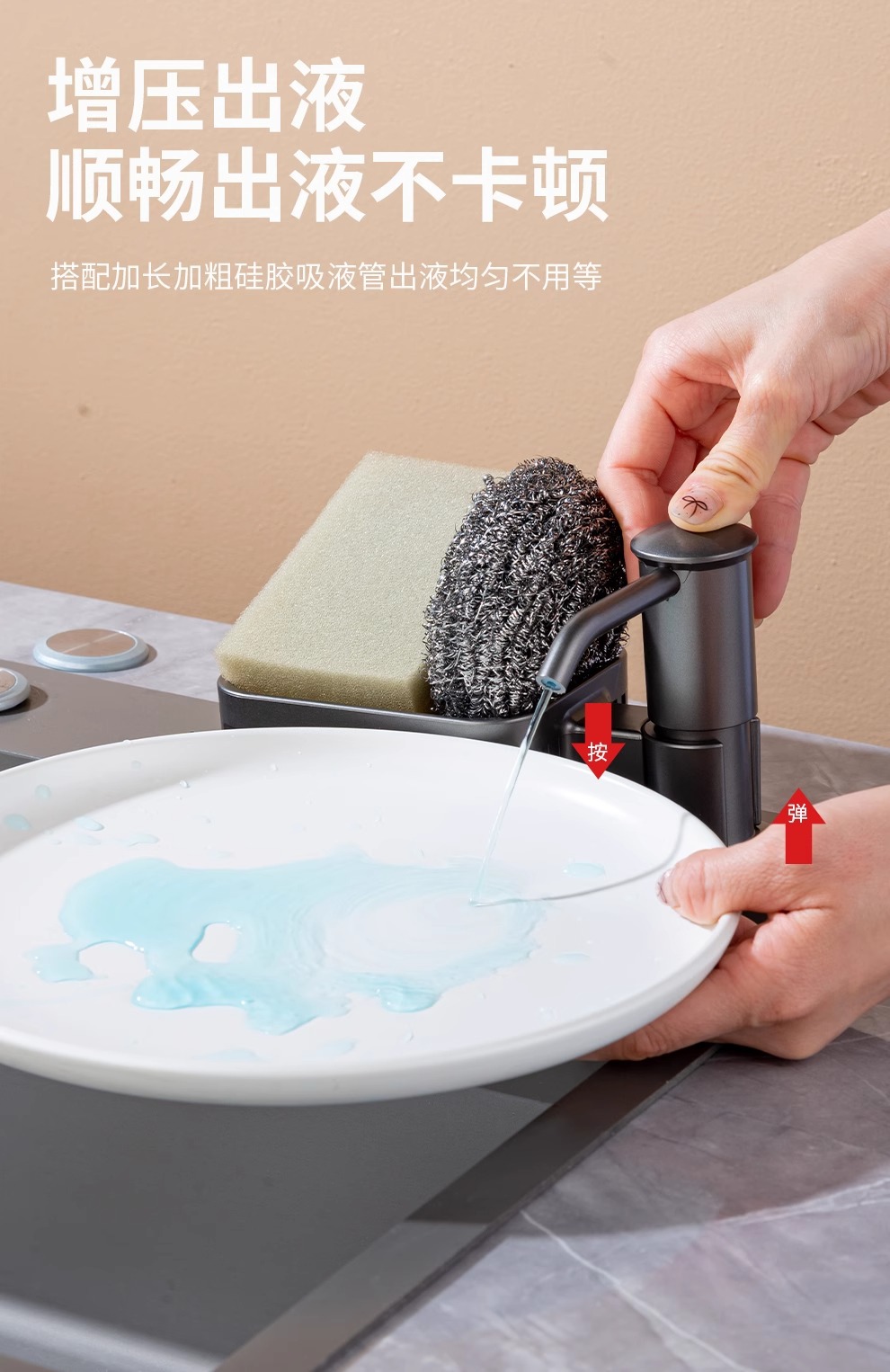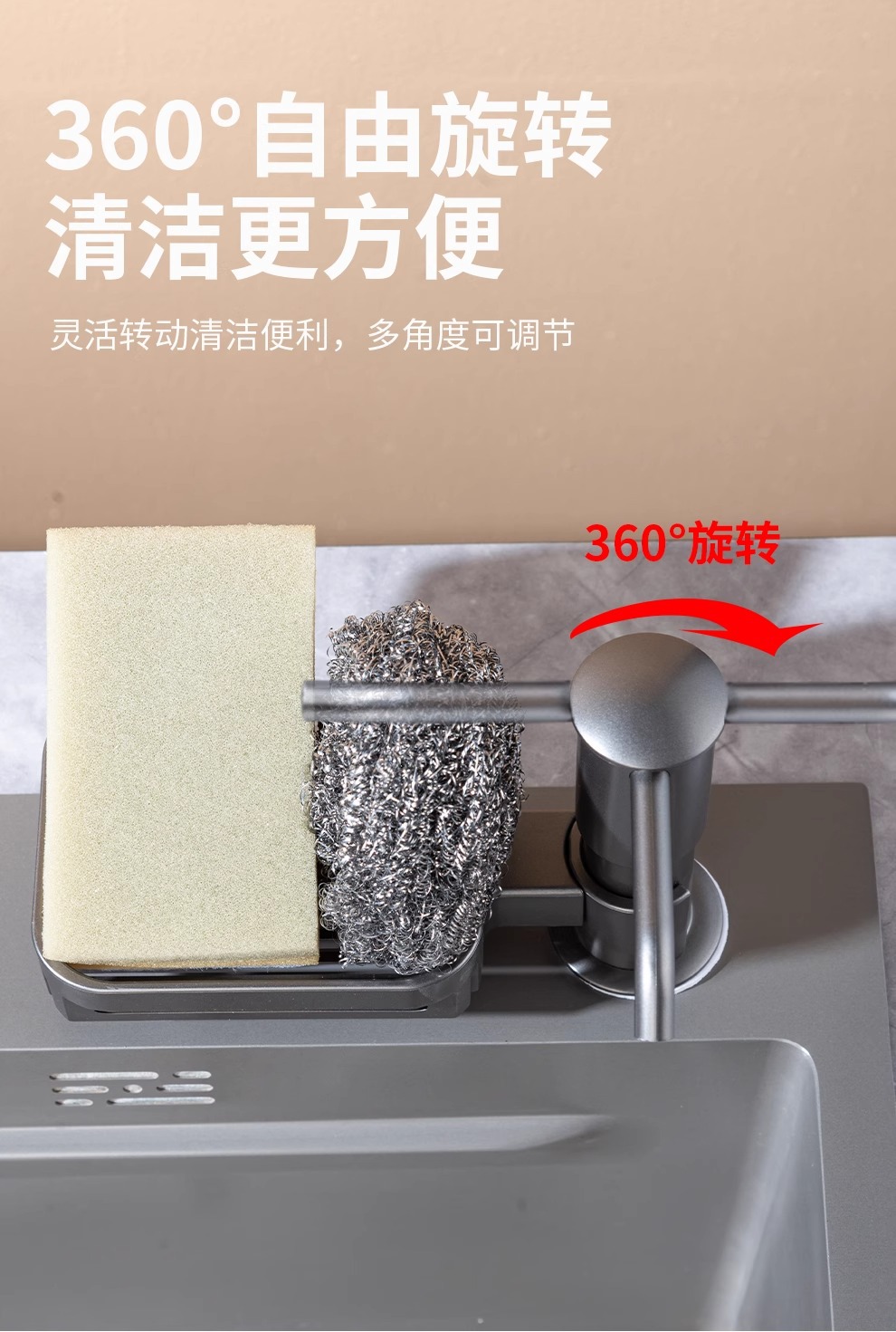 주방 싱크 비누 디스펜서 세제 다기능 스토리지 랙 프레서 풀 세제 확장 파이프 프레서