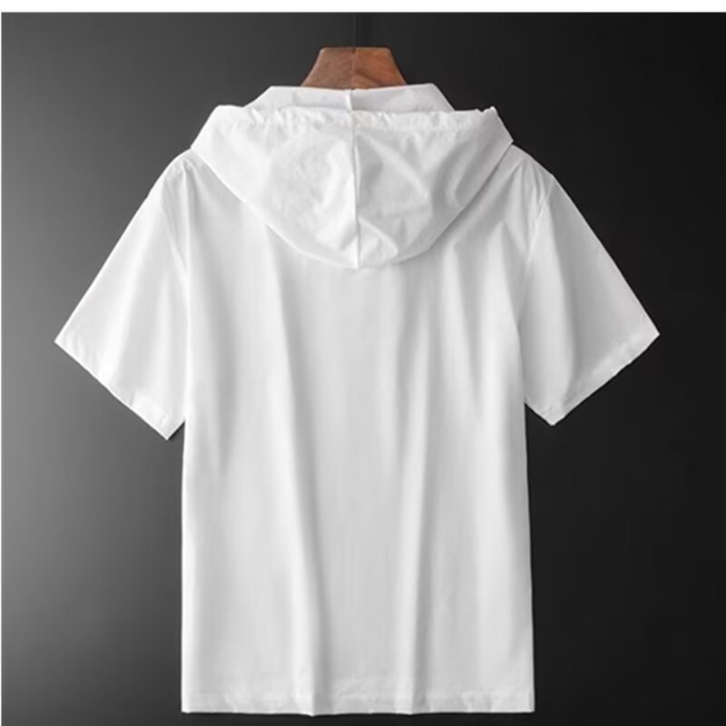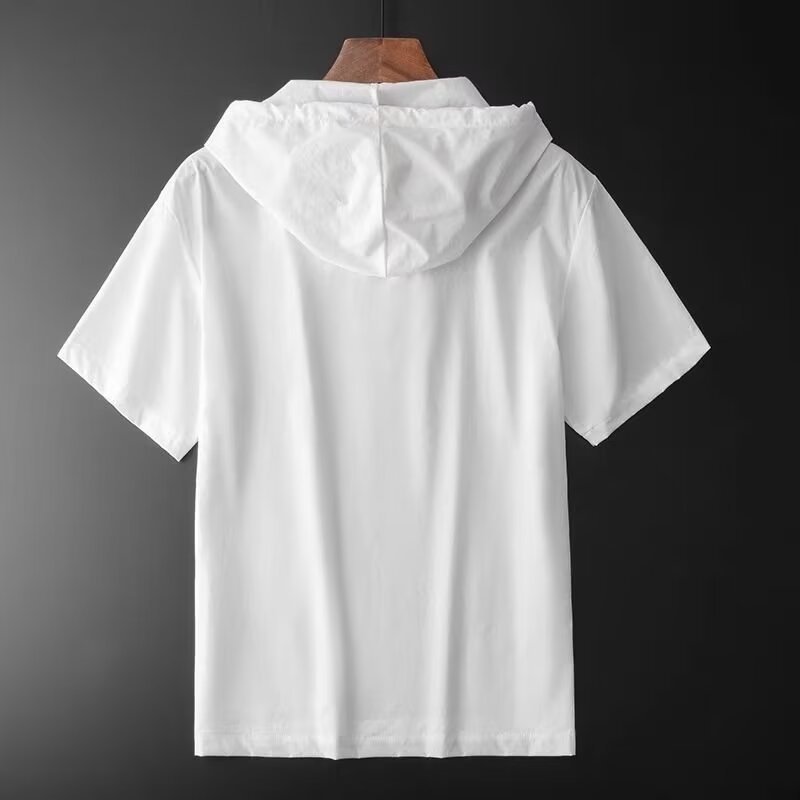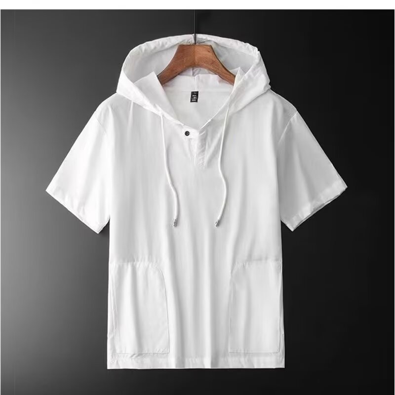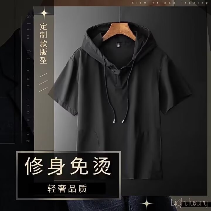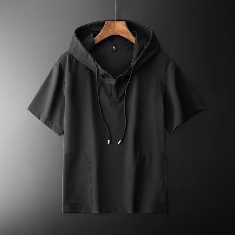 남성 여름 후드 반팔 남성 아이스 실크 7부 소매 셔츠 스웨트 셔츠 남성용 얇은 셔츠 청소년 트렌드스토어 가기