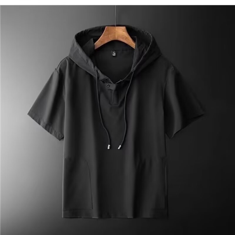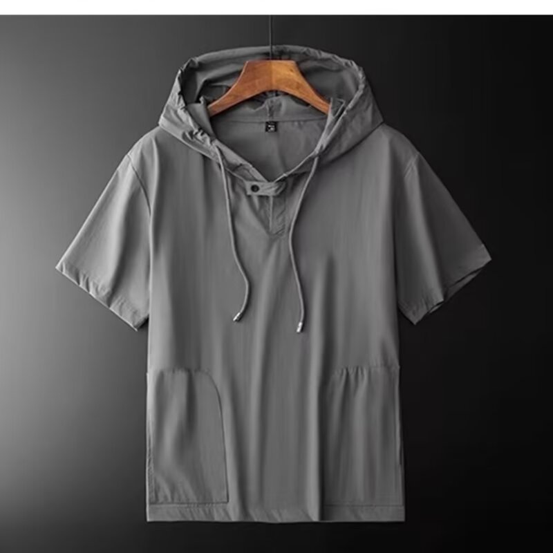 남성 여름 후드 반팔 남성 아이스 실크 7부 소매 셔츠 스웨트 셔츠 남성용 얇은 셔츠 청소년 트렌드