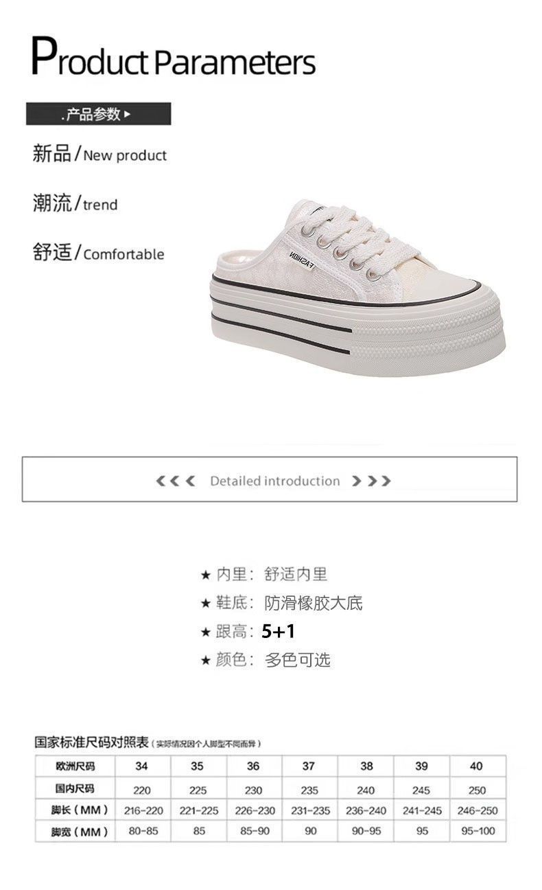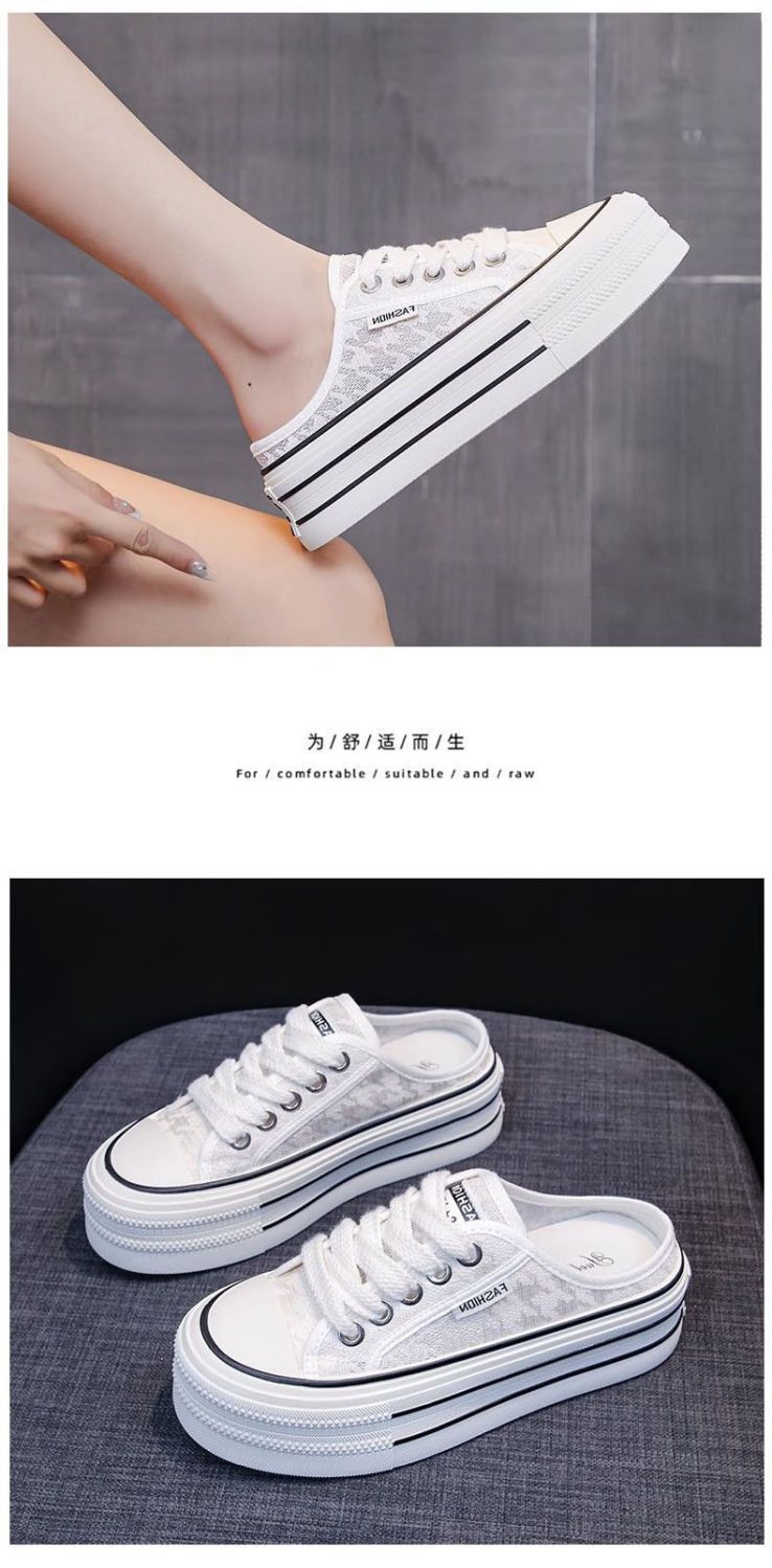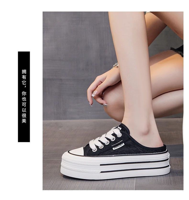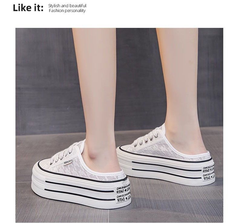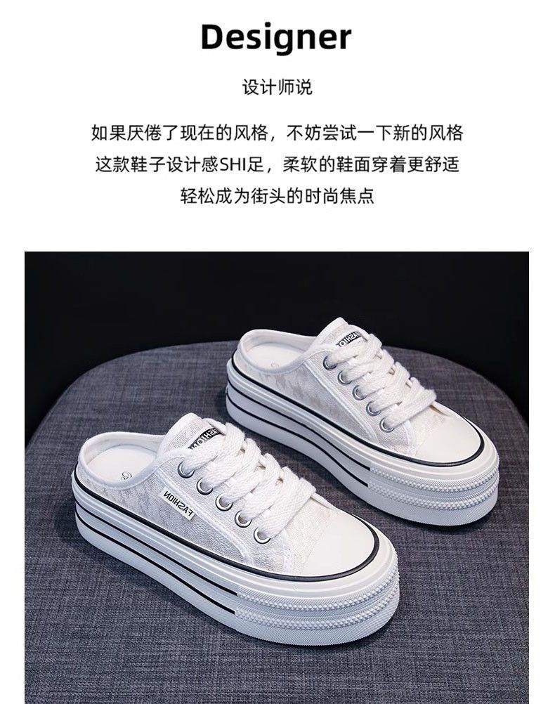 여성용 두꺼운 밑창 레이스 캔버스 슬리퍼 2025 여름 신작 슬립온 게으른 발가락 반 슬리퍼 흰색 신발스토어 가기