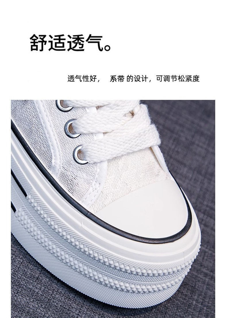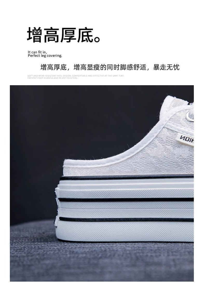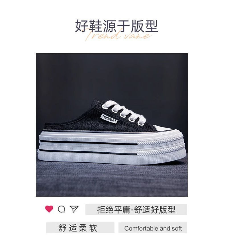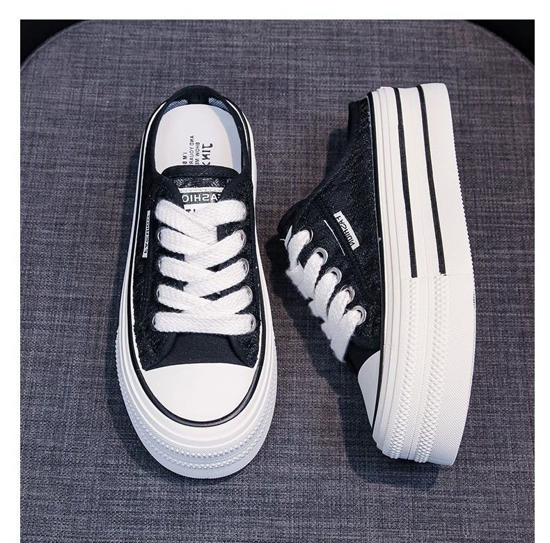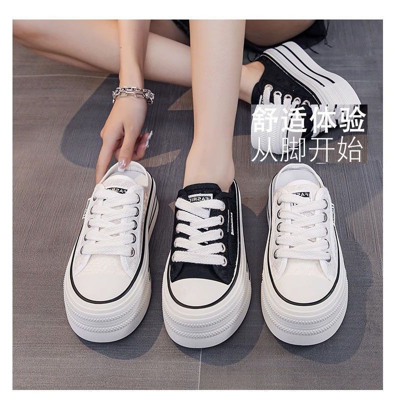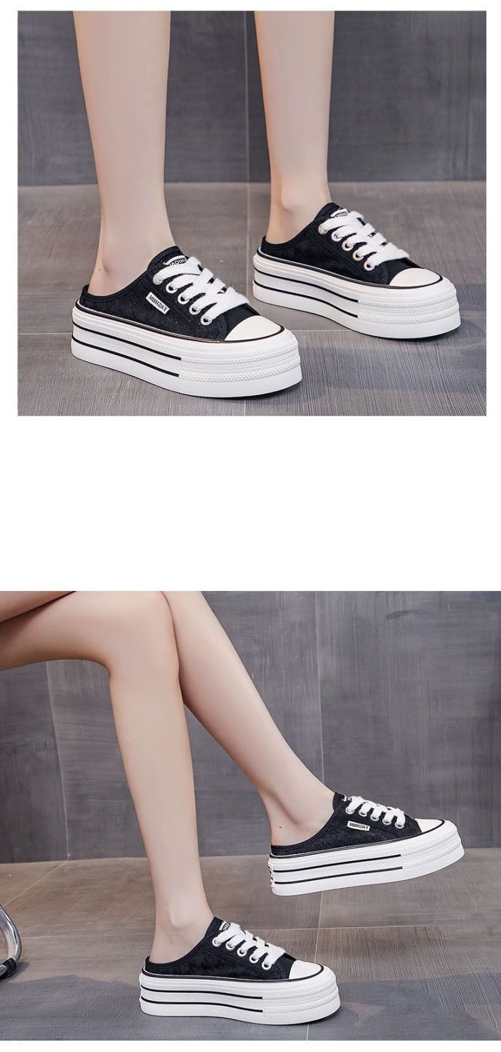 여성용 두꺼운 밑창 레이스 캔버스 슬리퍼 2025 여름 신작 슬립온 게으른 발가락 반 슬리퍼 흰색 신발스토어 가기