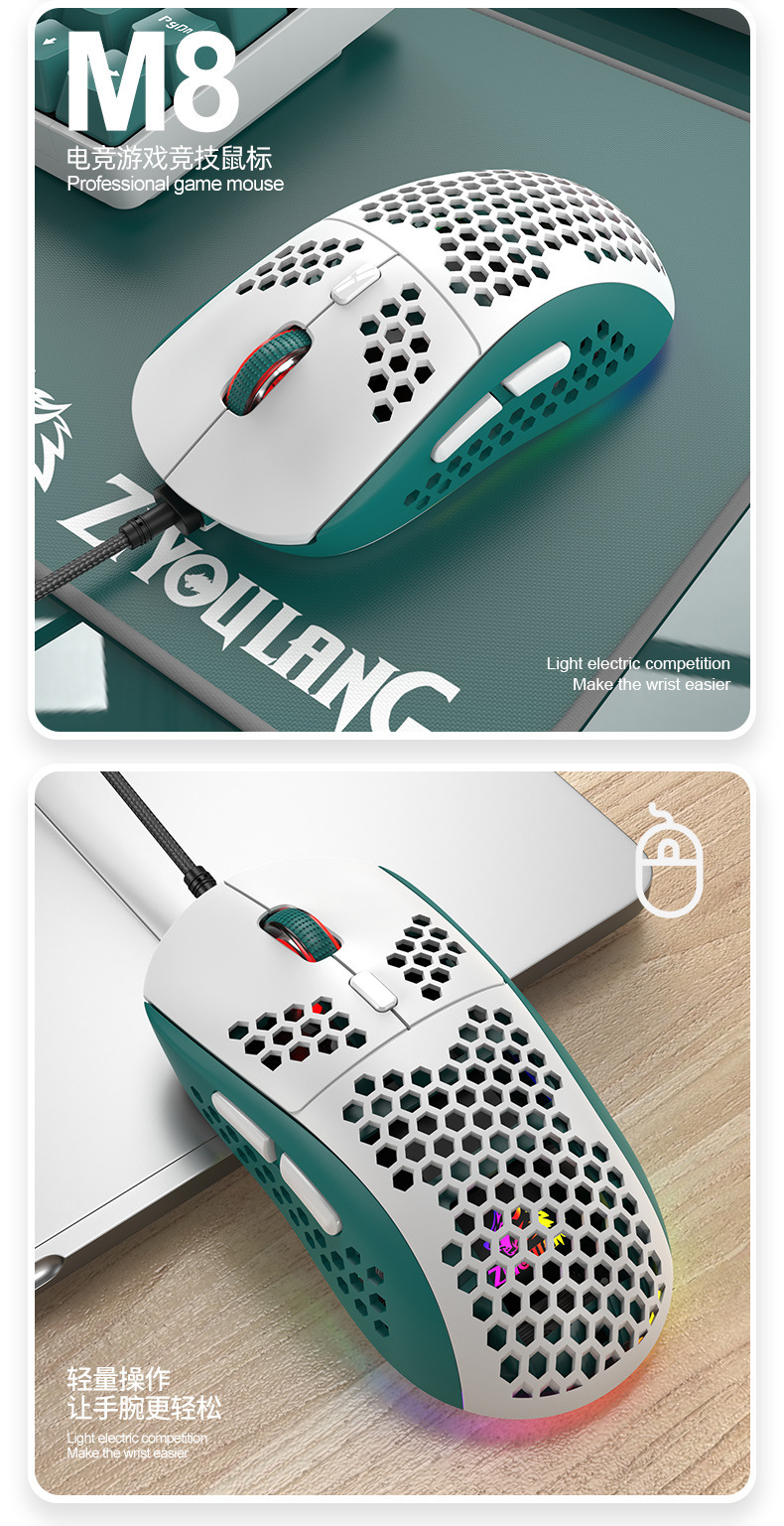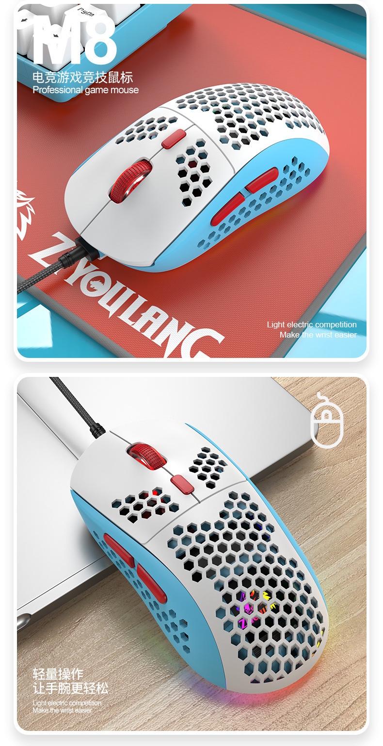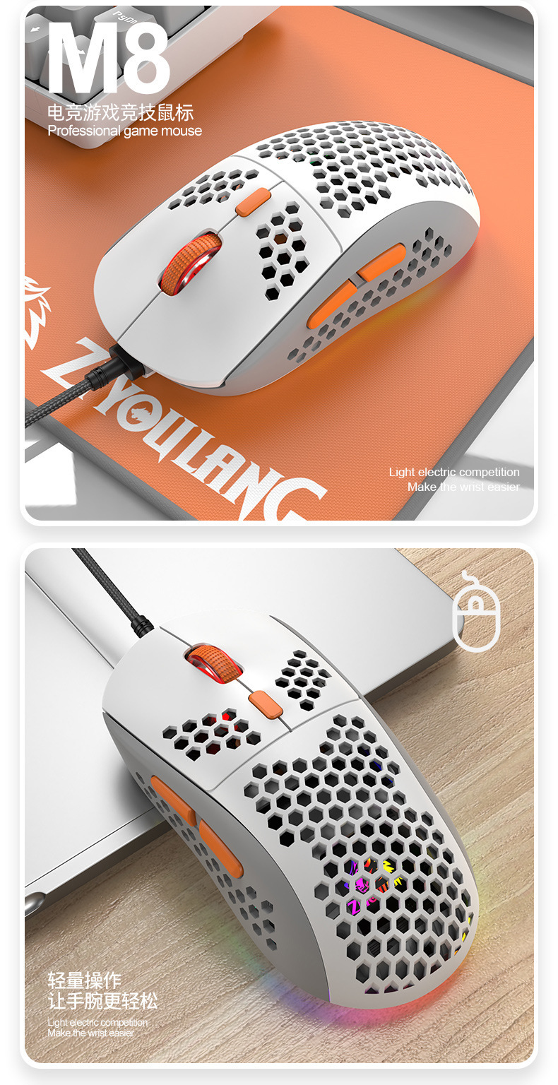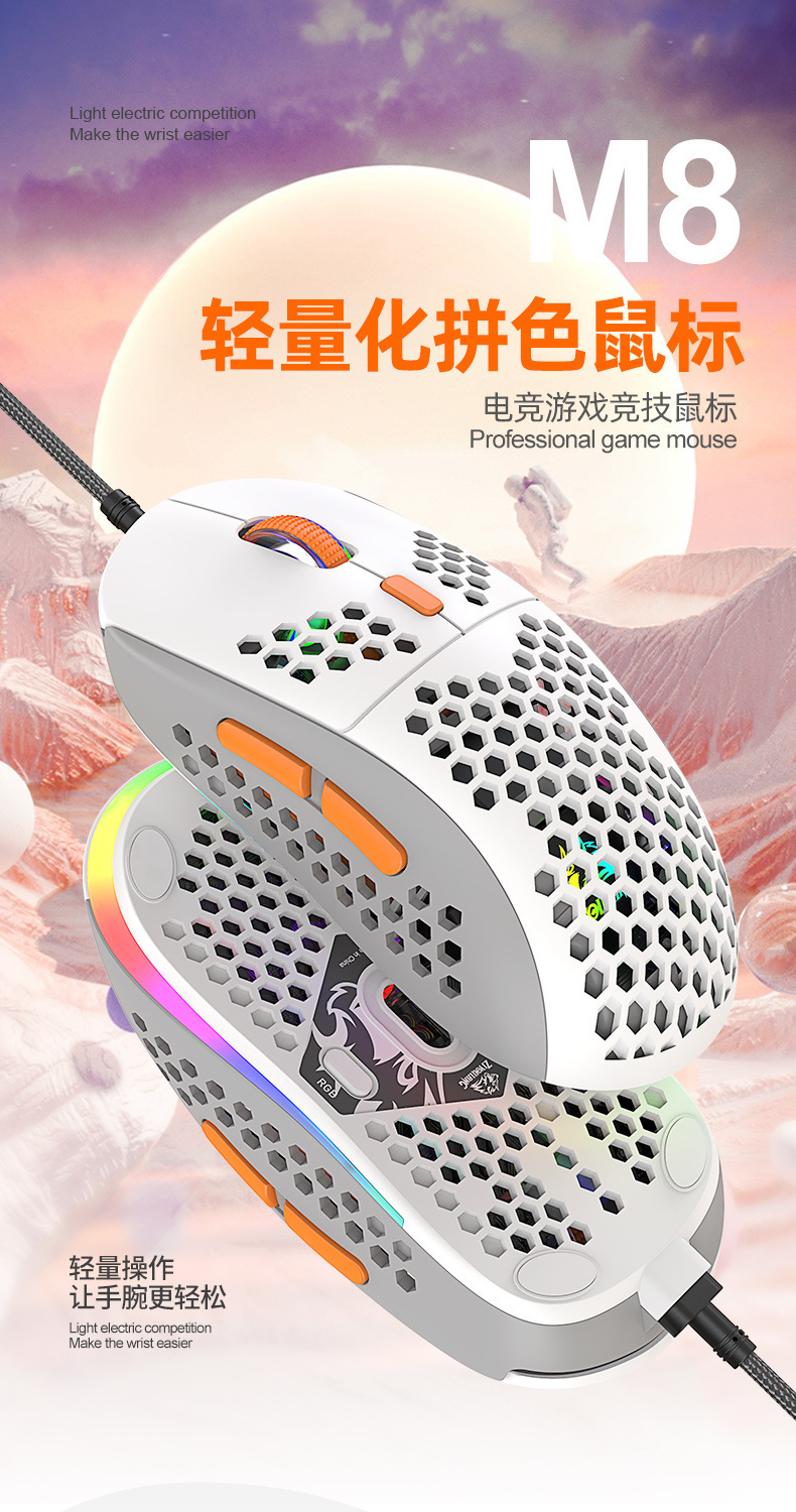Free Wolf M8 색상 매칭 RGB 게임용 마우스 맞춤형 컴퓨터 노트북 유선 매크로 정의 경량 마우스스토어 가기