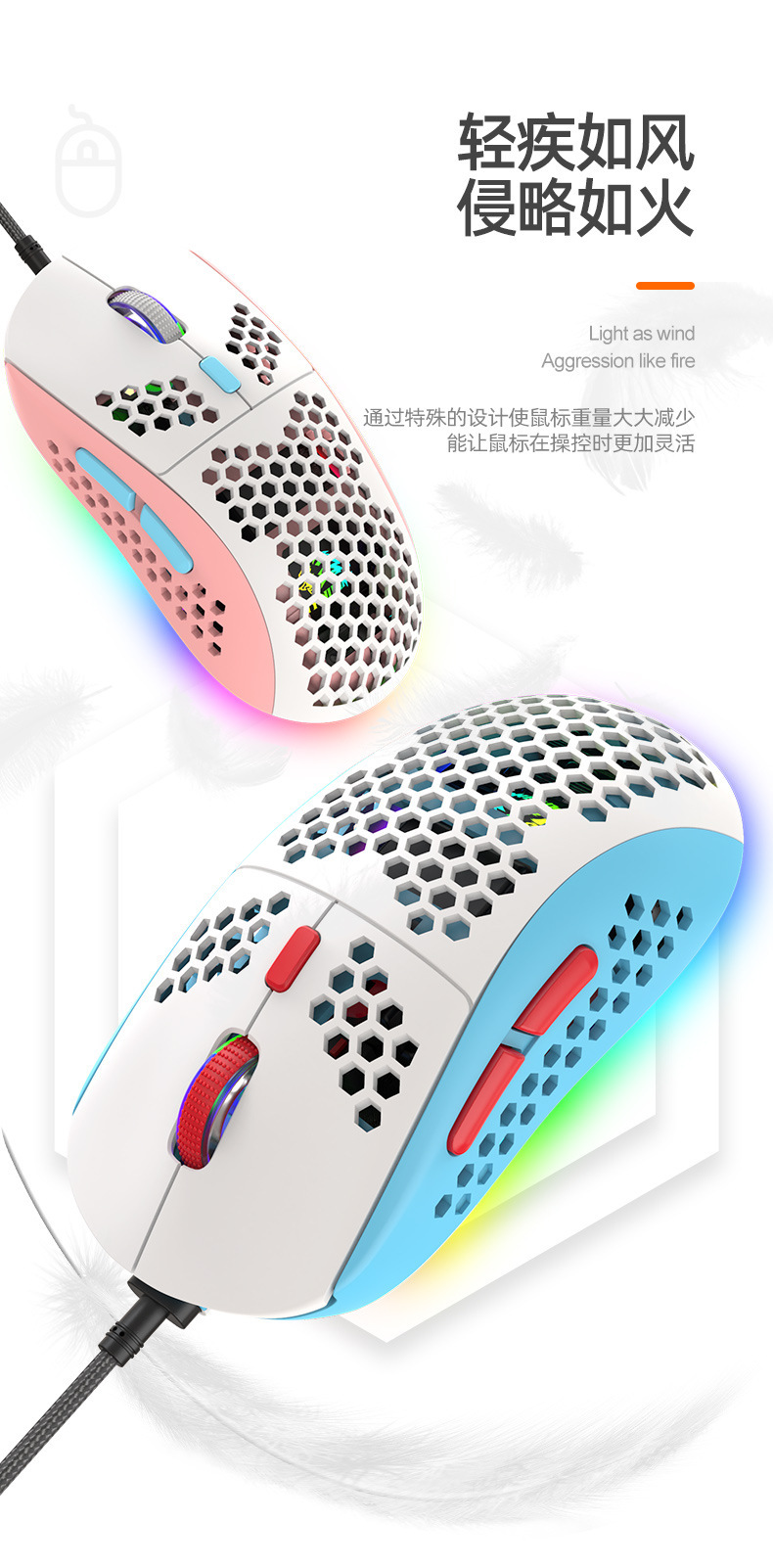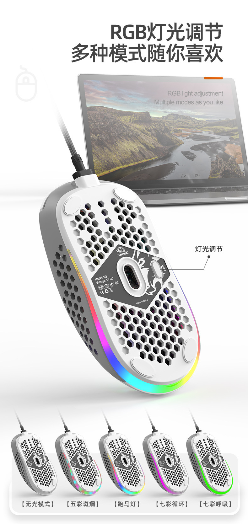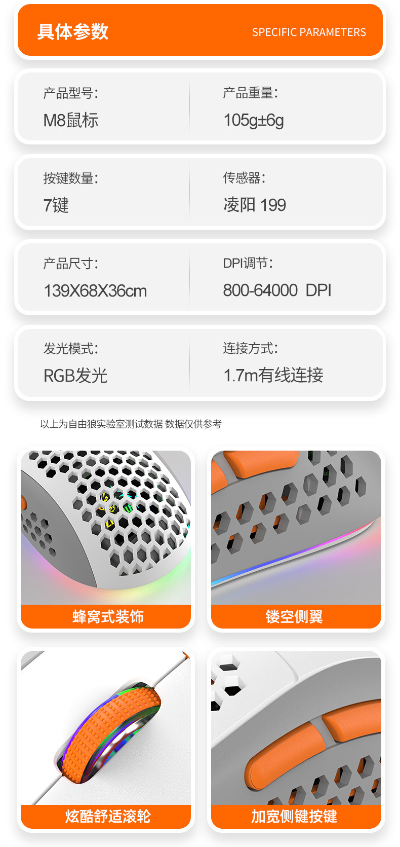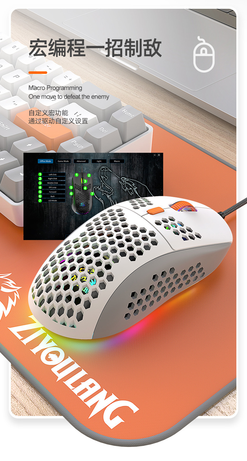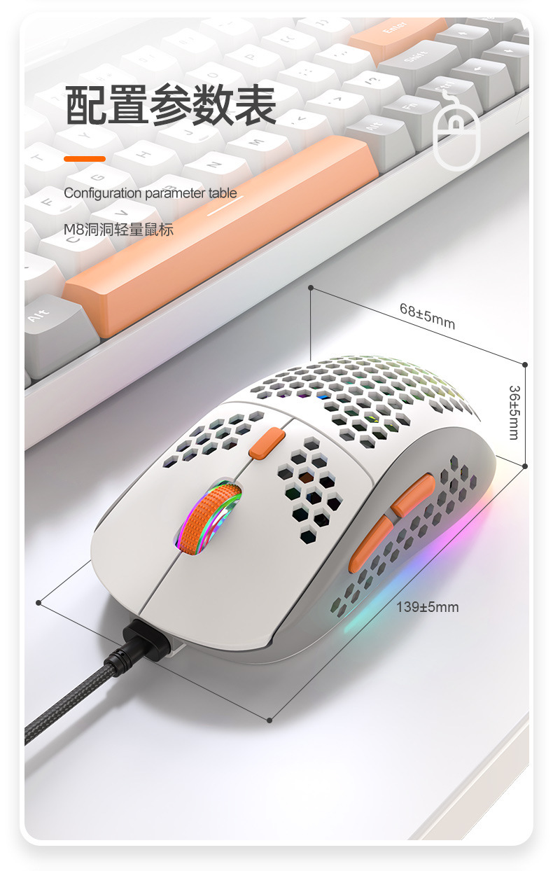 Free Wolf M8 색상 매칭 RGB 게임용 마우스 맞춤형 컴퓨터 노트북 유선 매크로 정의 경량 마우스스토어 가기