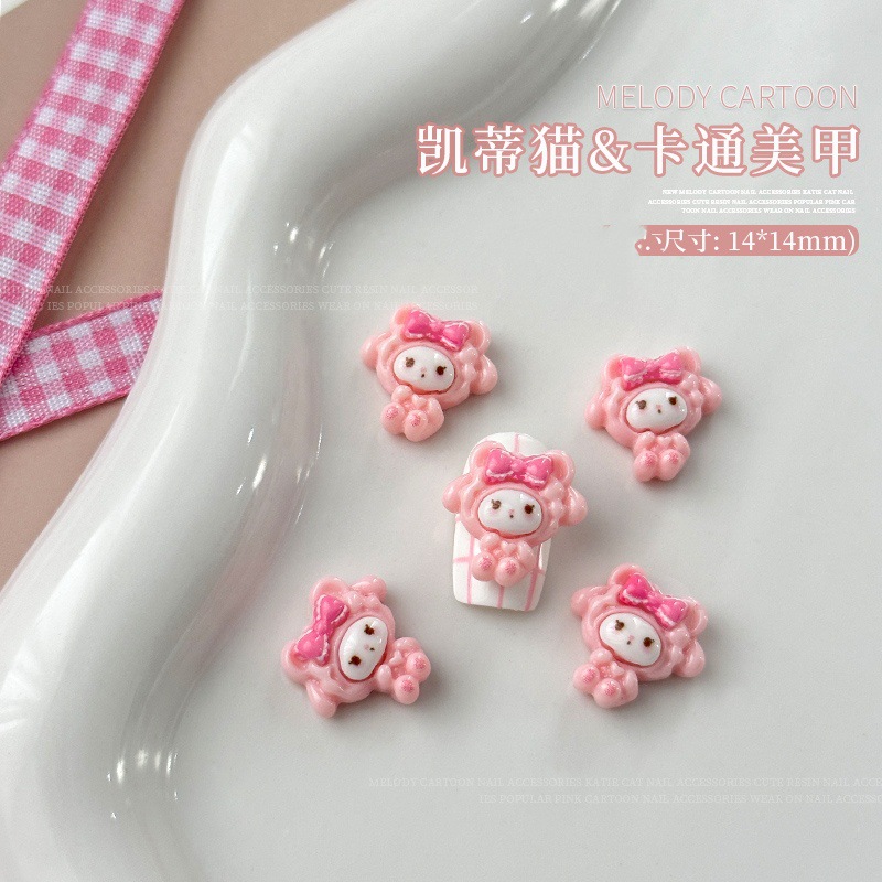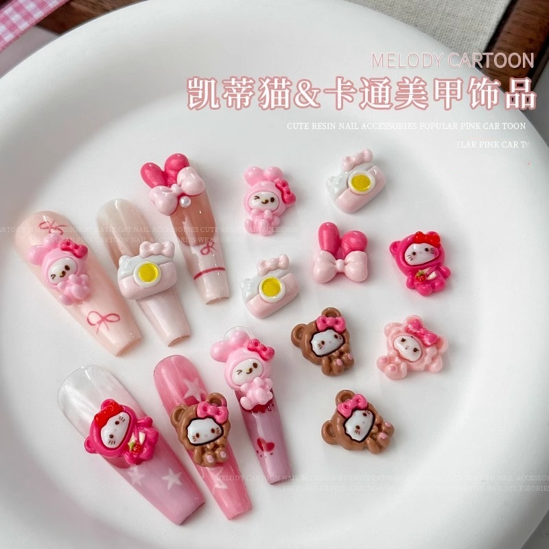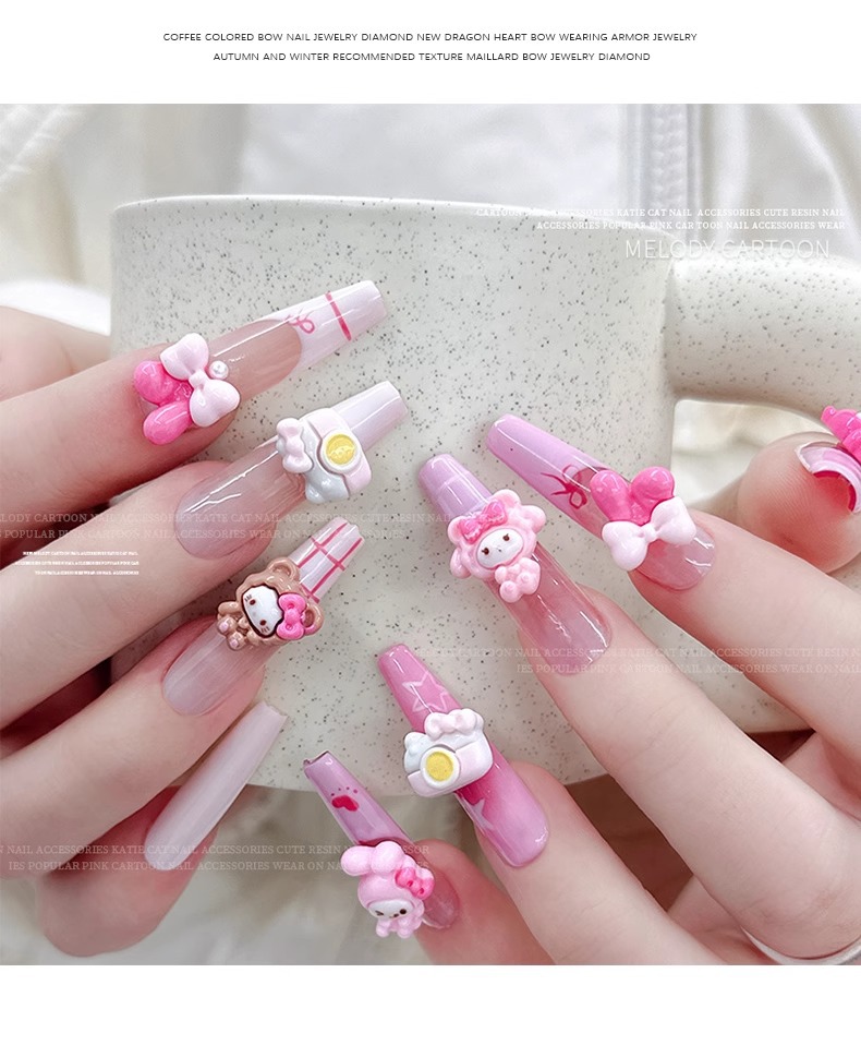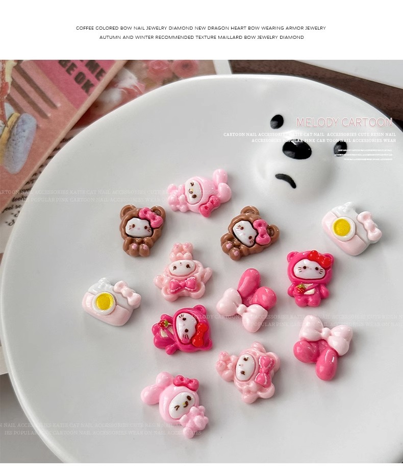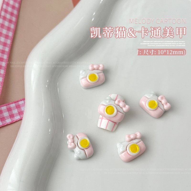 새로운 귀여운 만화 네일 아트 쥬얼리 케이디 고양이 토끼 활 카메라 네일 다이아몬드 웨어러블 네일 장식