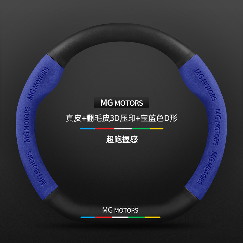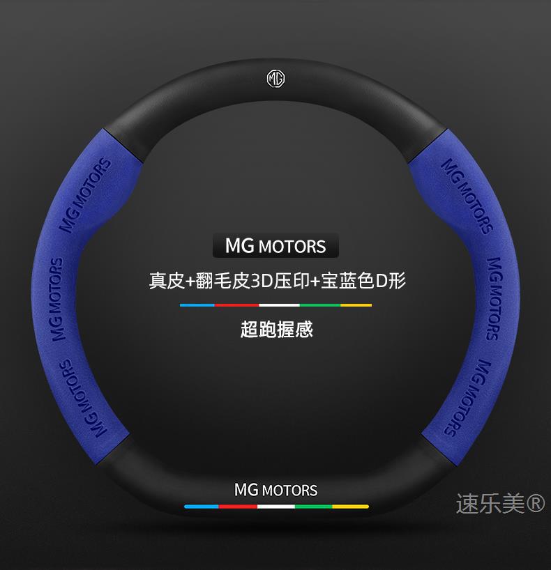 • 스웨이드 3D 양각 탄소 섬유 가죽 로얄 블루 D자형 MG 로고