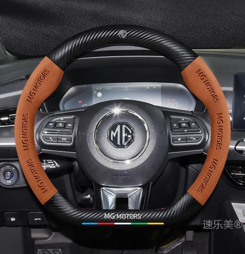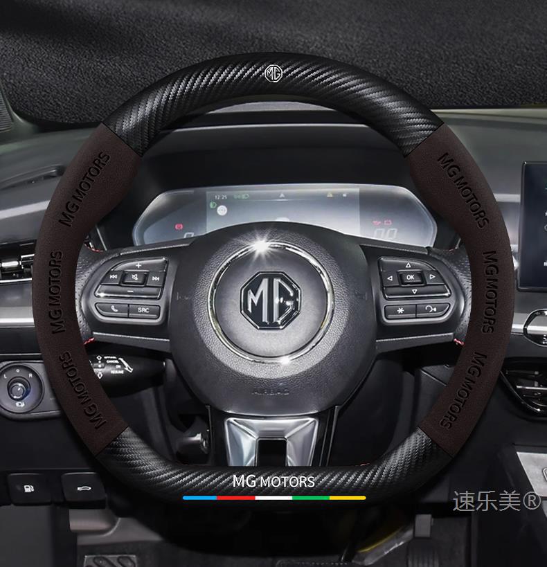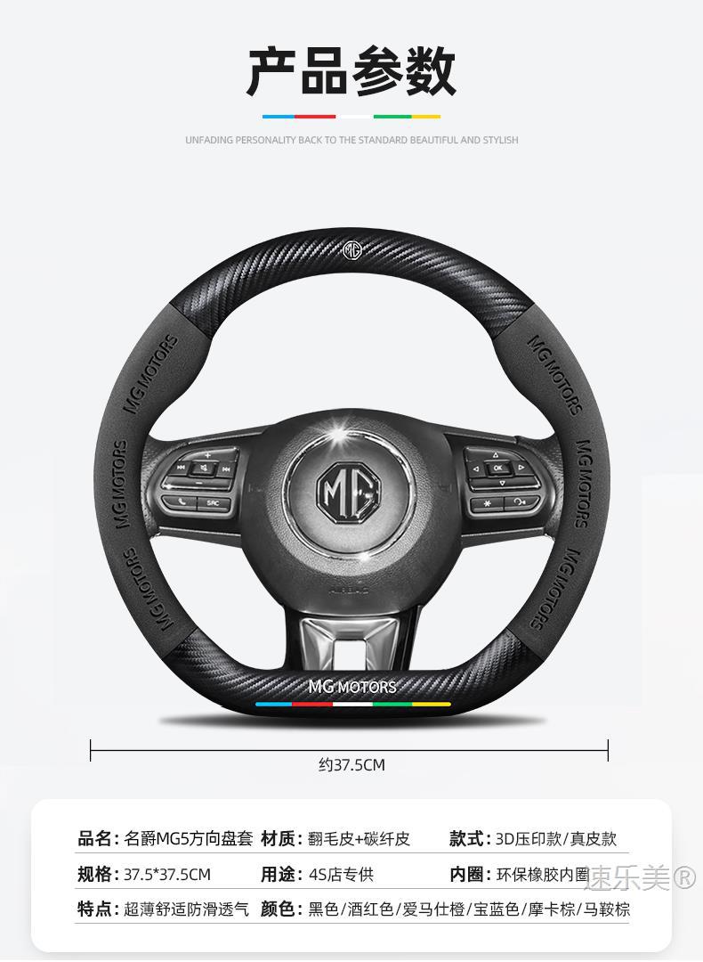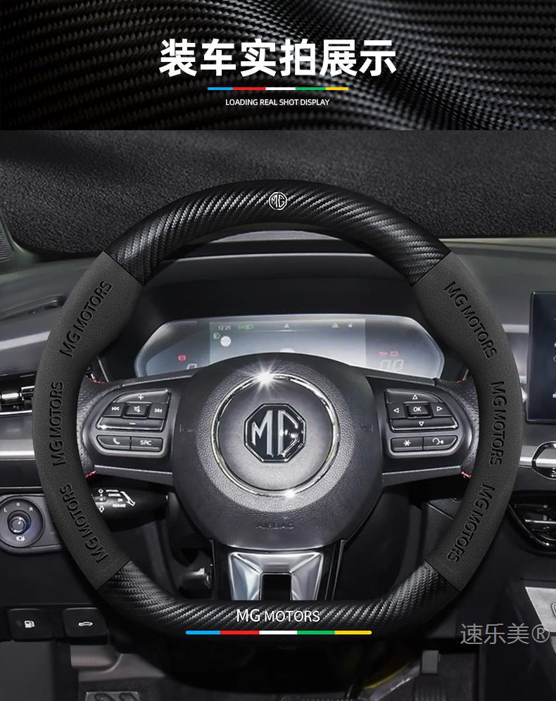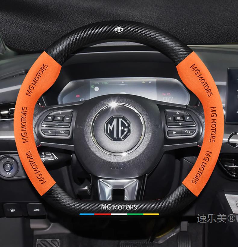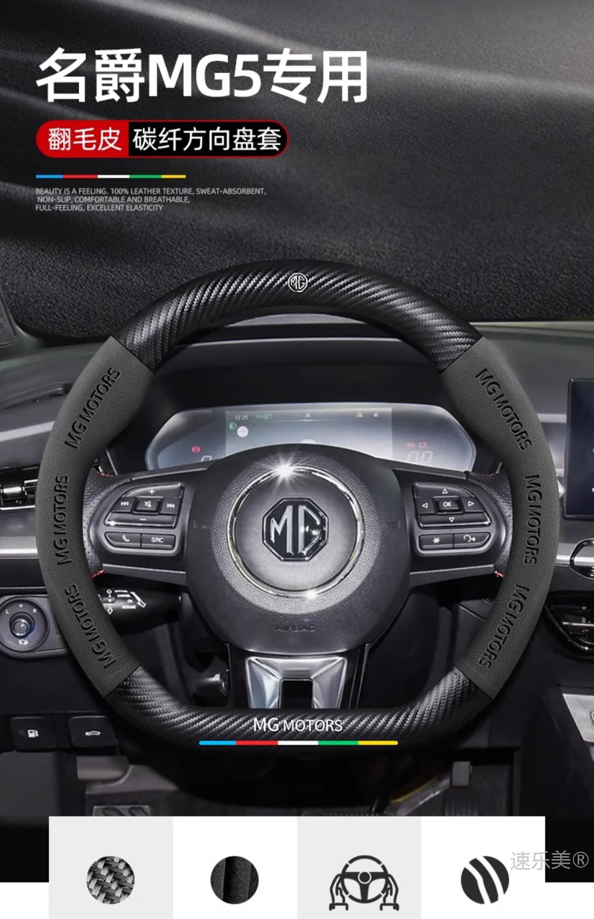 MG MG5 스티어링 휠 커버 12-25 초박형 가죽 스웨이드 탄소 섬유 4계절 범용 미끄럼 방지 땀 흡수 핸들 바 커버스토어 가기