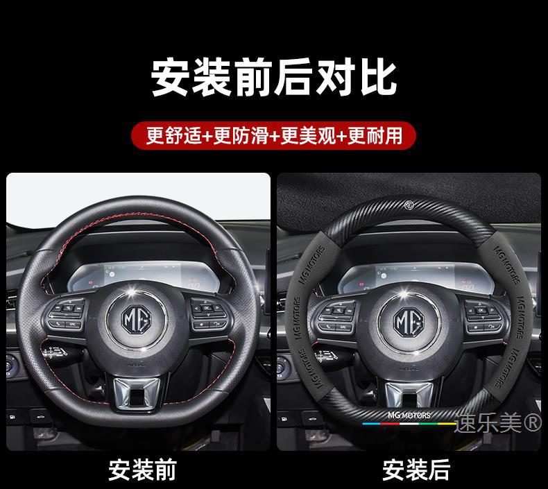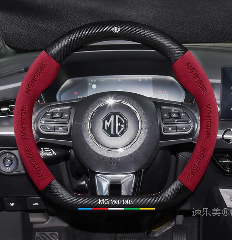 MG MG5 스티어링 휠 커버 12-25 초박형 가죽 스웨이드 탄소 섬유 4계절 범용 미끄럼 방지 땀 흡수 핸들 바 커버