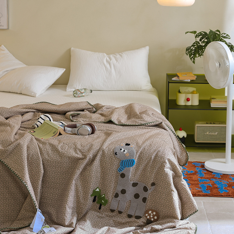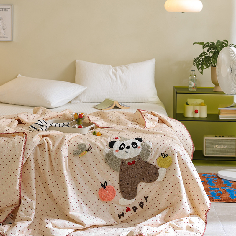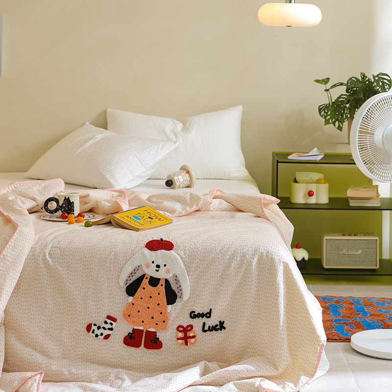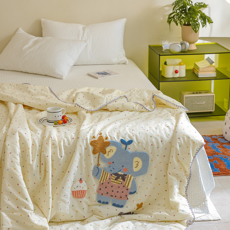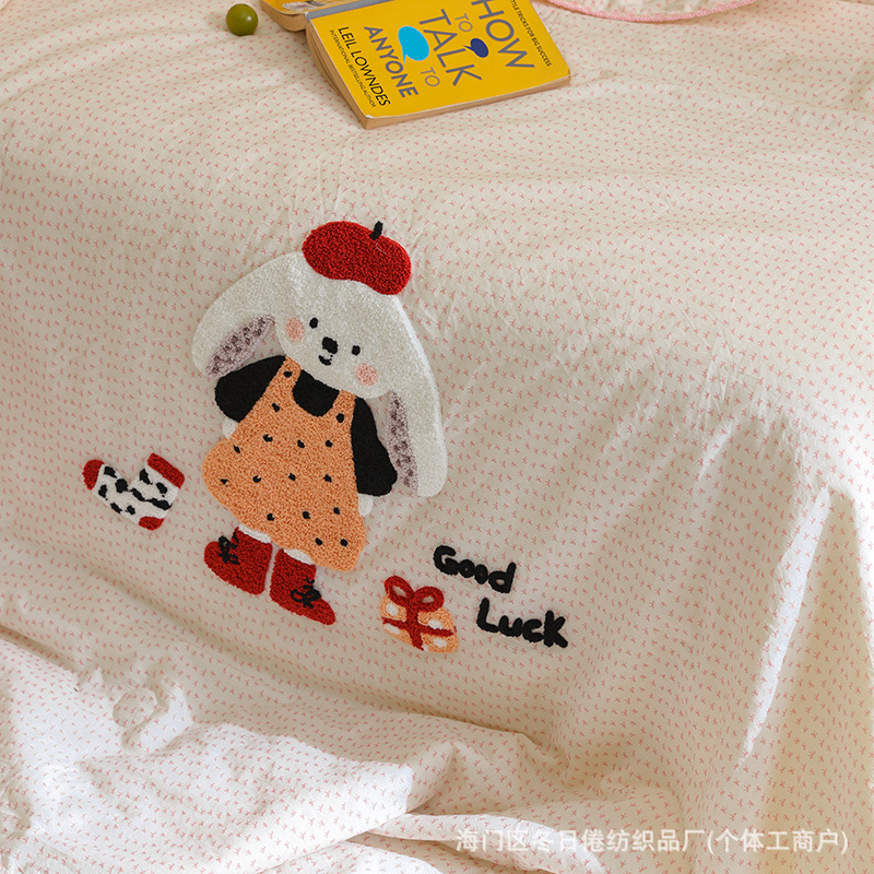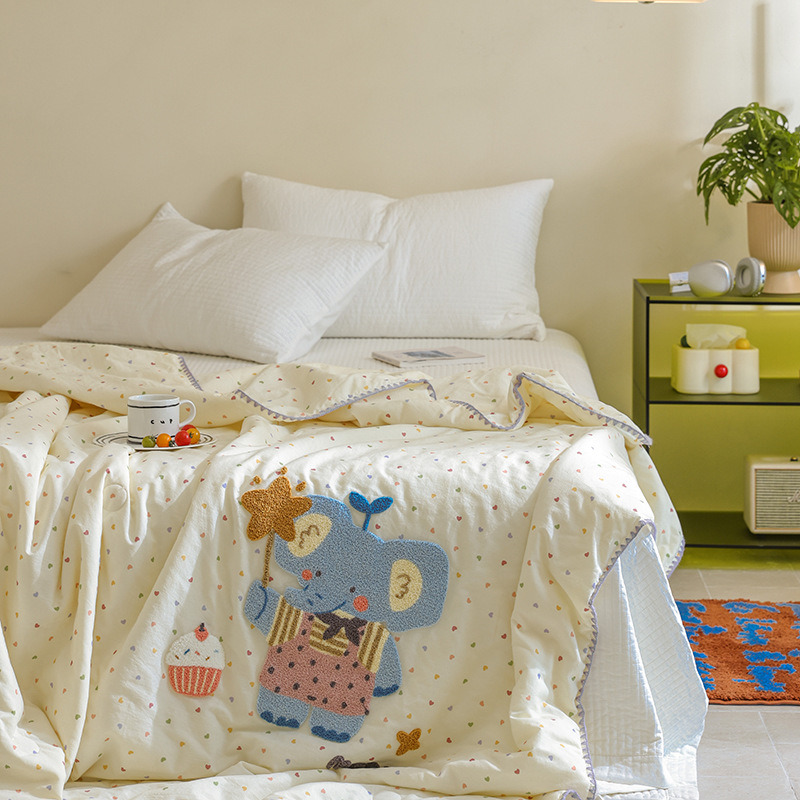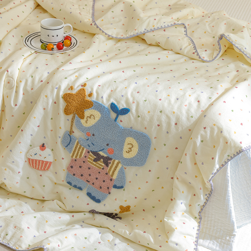 부드러운 사랑스러운 ~ 클래스 더블 레이어 원사 면화 여름 시원한 콩 이불 어린이 여름 싱글 더블 에어컨 이불 세척 가능