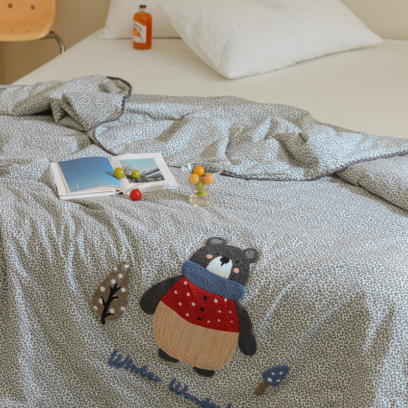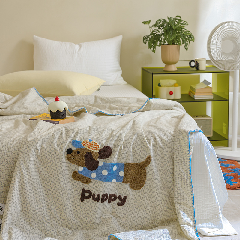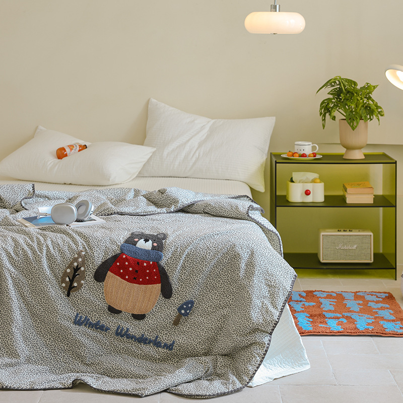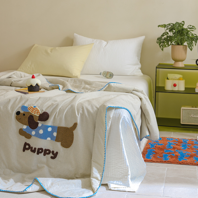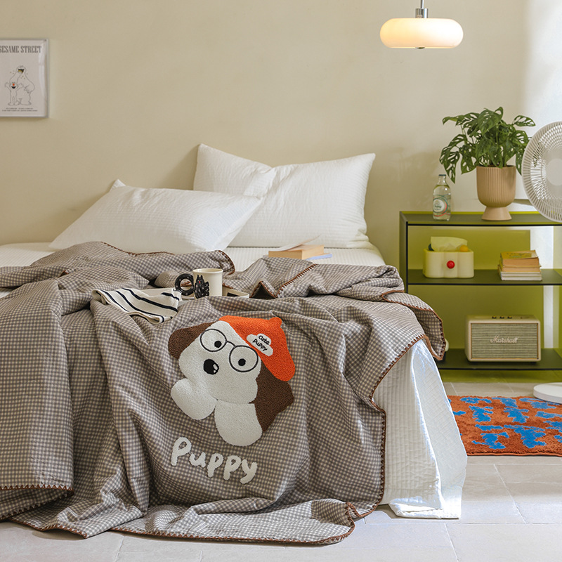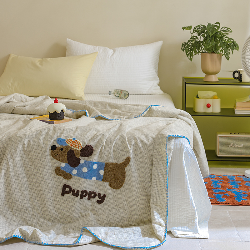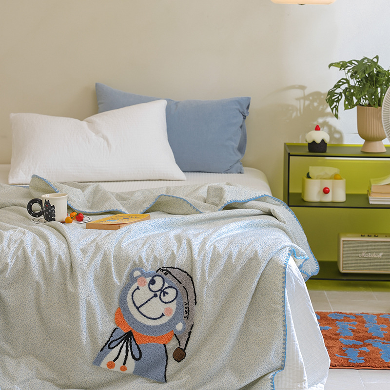 부드러운 사랑스러운 ~ 클래스 더블 레이어 원사 면화 여름 시원한 콩 이불 어린이 여름 싱글 더블 에어컨 이불 세척 가능