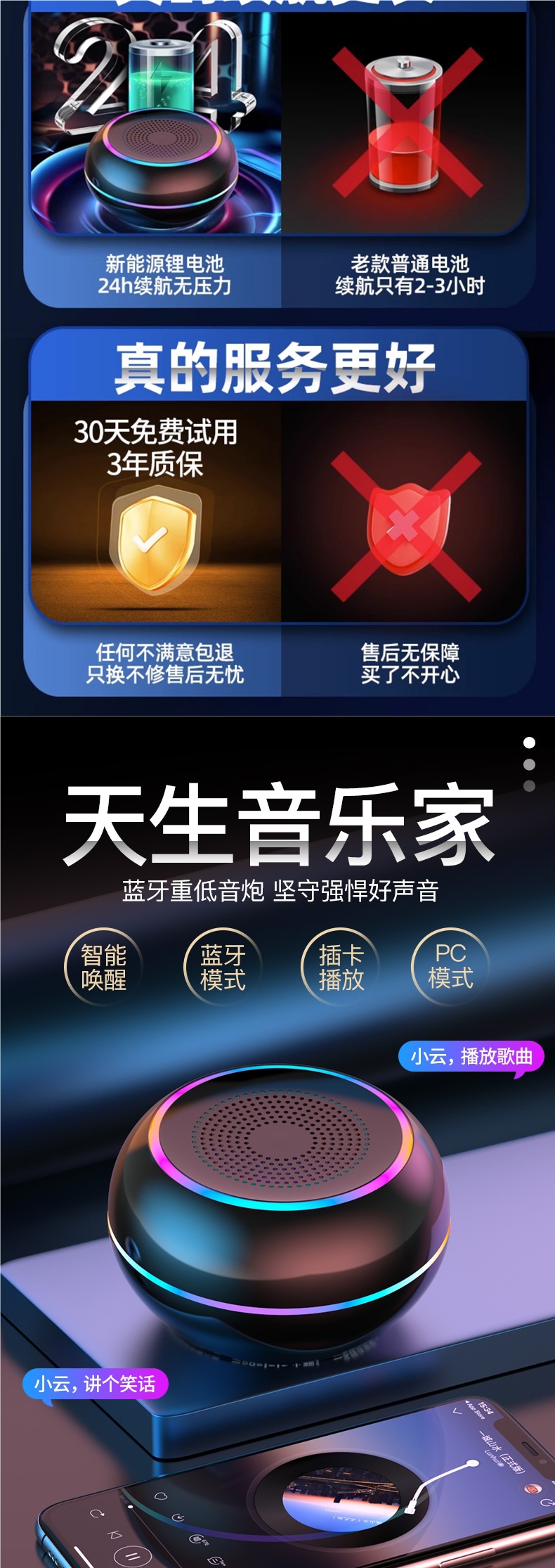 • 스마트 버전★블랙 [배터리 + AI 음성 노래 요청 + 충격적인 베이스 + 화려한 조명]