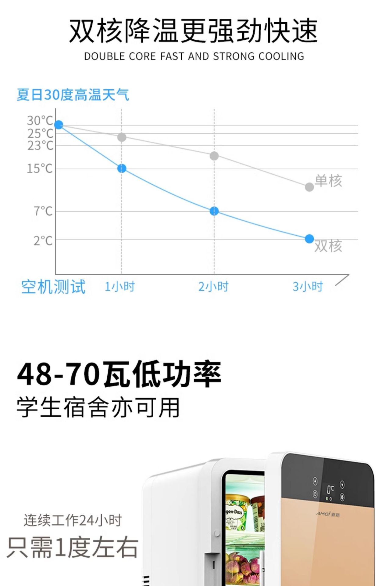 Amoi 미니 냉장고 냉동 냉장 자동차 홈 학생 기숙사 모유 사무실 소형 냉동고스토어 가기