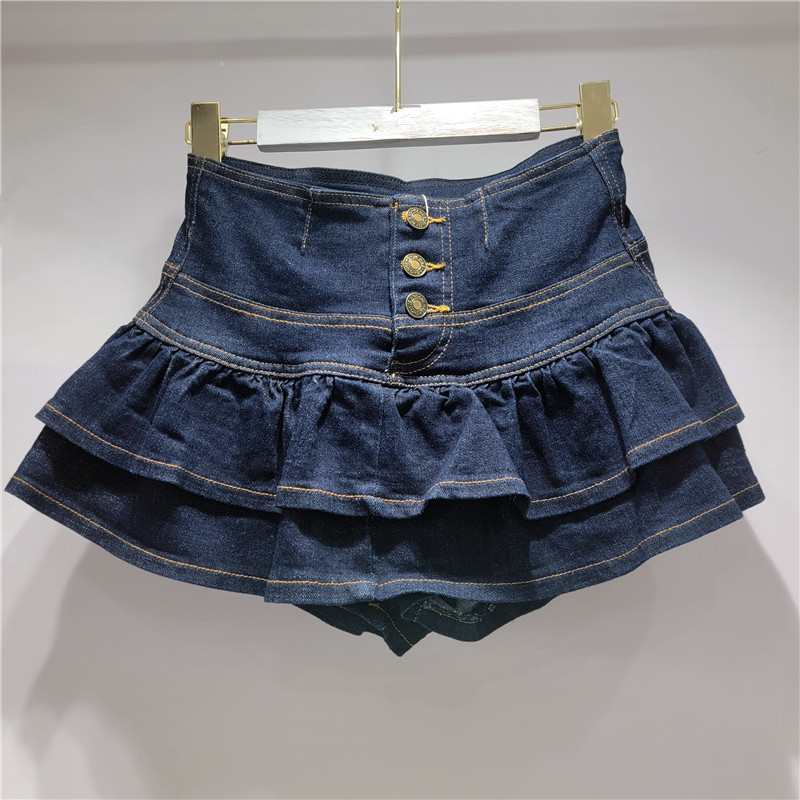 유럽 제품 2025 봄 여름 신작 러플 미니 스커트 여성 데님 스커트 섹시한 퍼프 팬츠 스커트 슬리밍 케이크 스커트