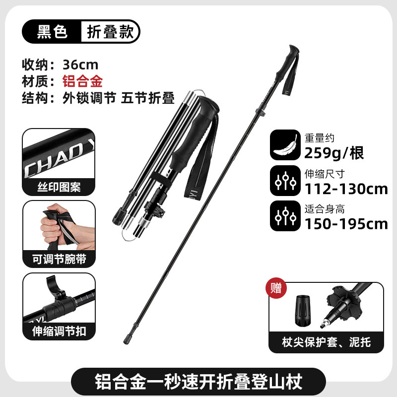 • 블랙 [알루미늄 합금] 외부 잠금 장치 조정, 5단 접이식, 1초 만에 빠르게 열림