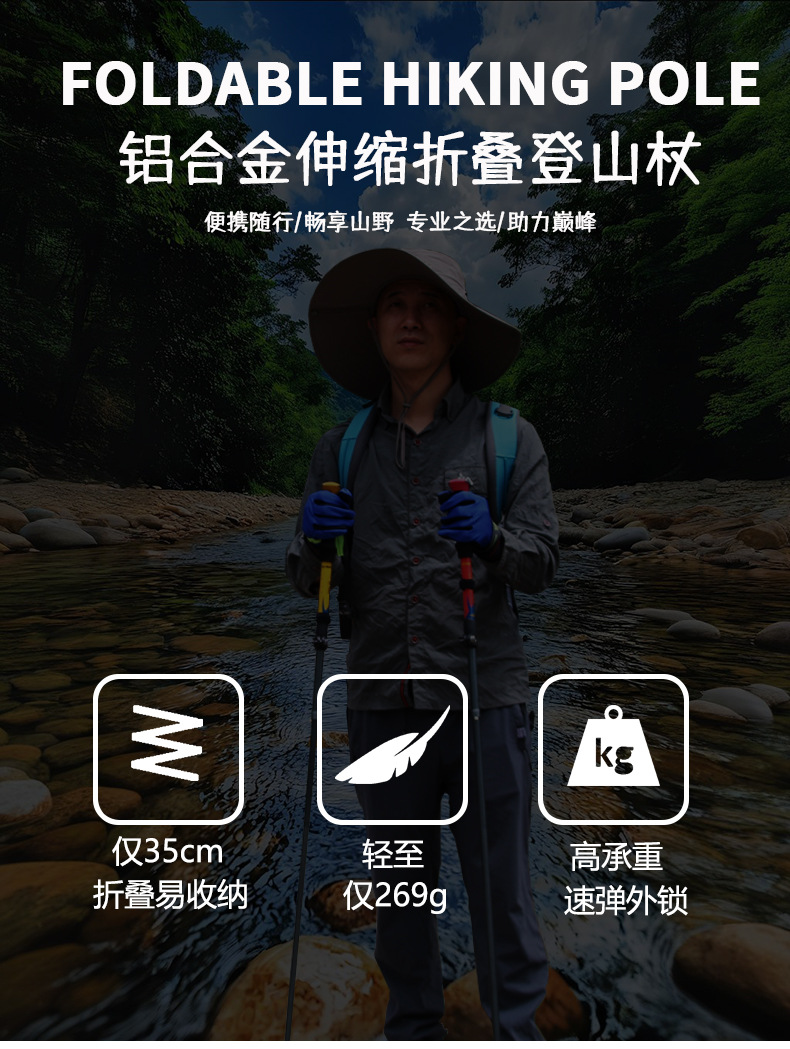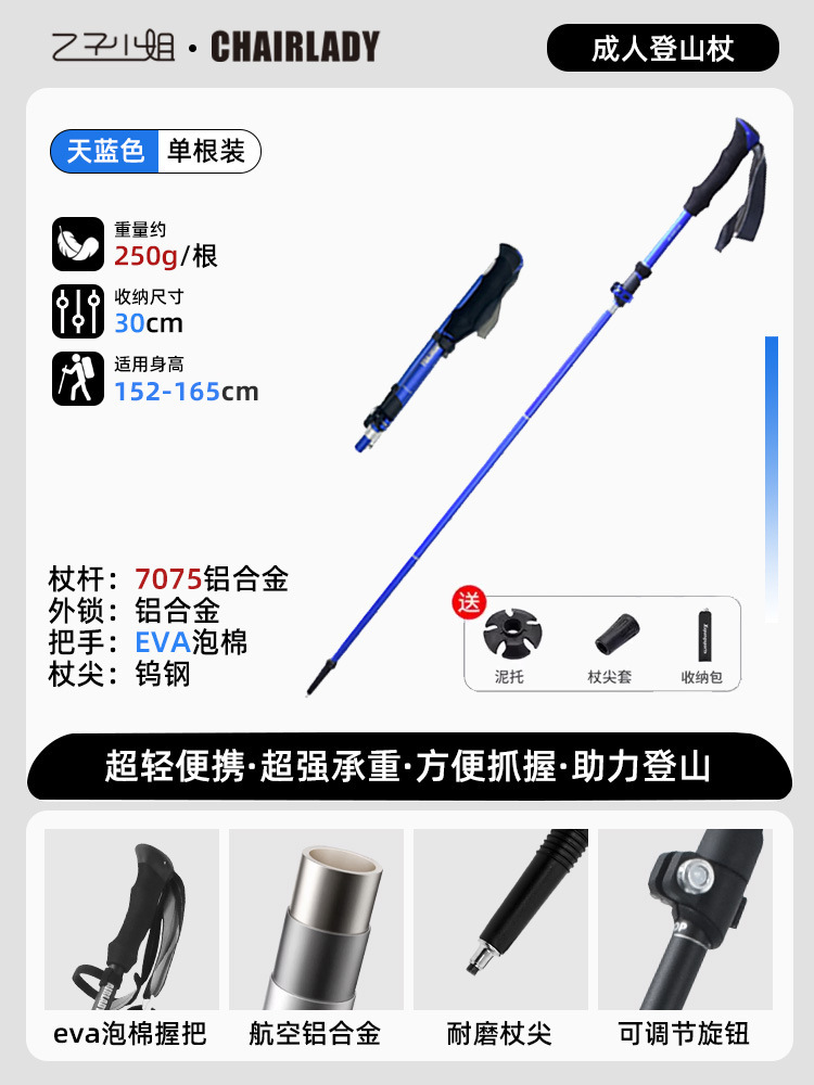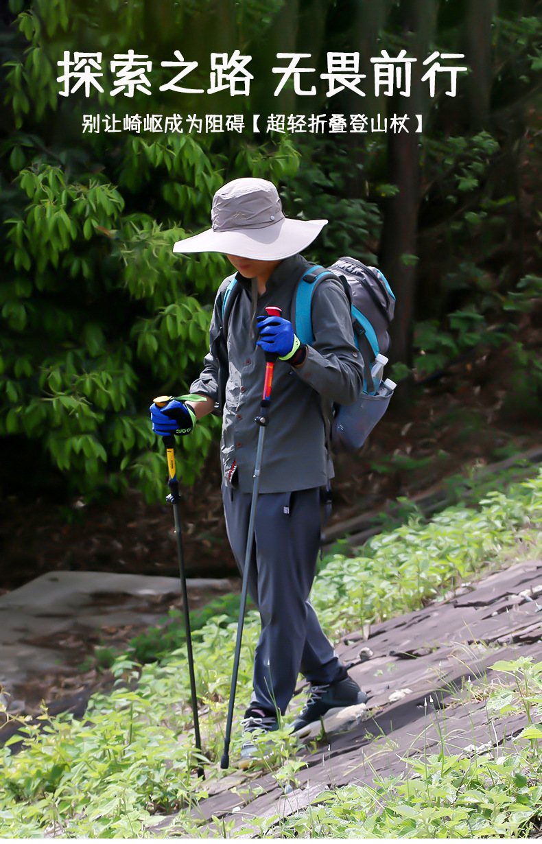 야외 트레킹 스틱 휴대용 7075 초경량 접이식 텔레스코픽 지팡이 전문 하이킹 장비 등산 스틱 지팡이