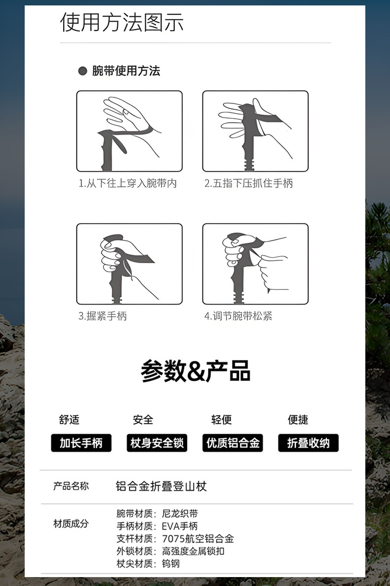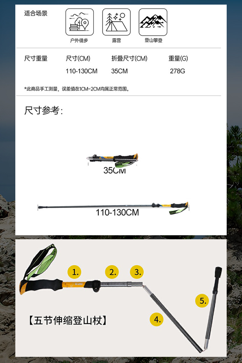 야외 트레킹 스틱 휴대용 7075 초경량 접이식 텔레스코픽 지팡이 전문 하이킹 장비 등산 스틱 지팡이스토어 가기