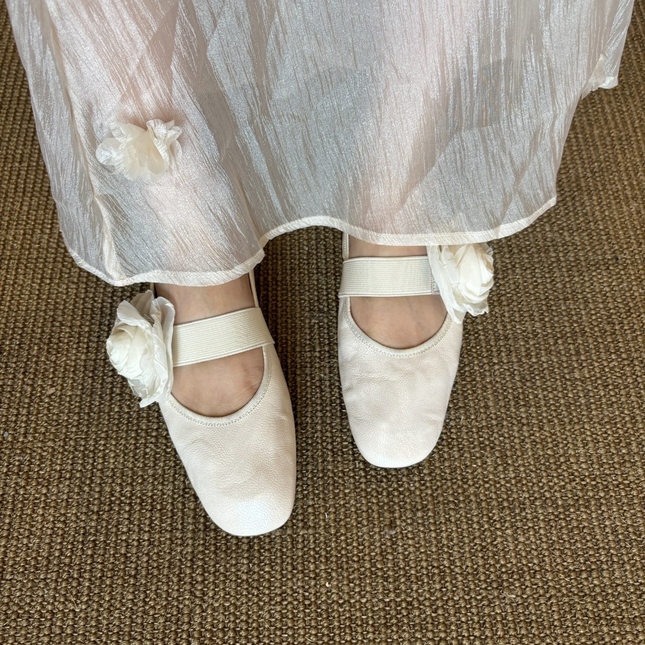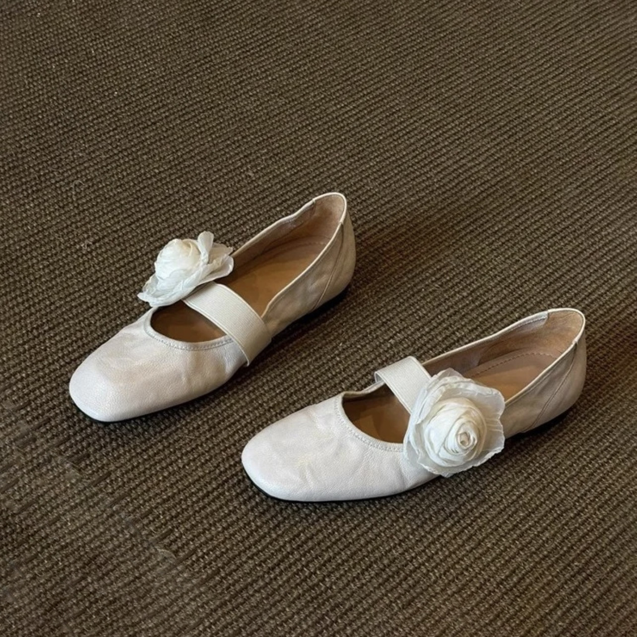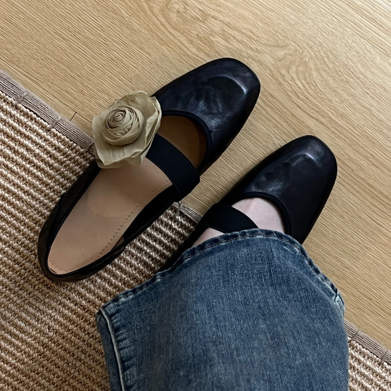 2025 새로운 레트로 스타일 여성용 플랫 발레 슈즈 (분리 가능한 꽃)스토어 가기